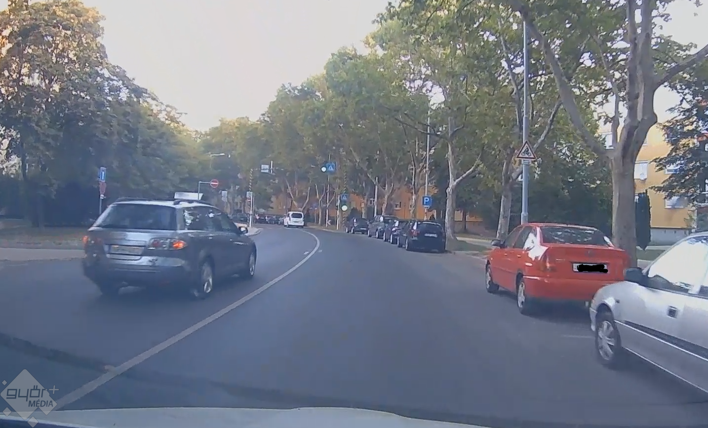 Látható, hogy a felvételt készítő olvasónk kikanyarodik az Ifjúság körútra, majd a lámpával is felszerelt gyalogátkelőhöz érkezik, itt már záróvonal is van felfestve. Itt, ezen a szakaszon előzi meg egy másik autós, és bár a zebrán épp nincs zöld a gyalogosoknak, a sebesség mindenképp 50 km/h-nál gyorsabbnak tűnik.