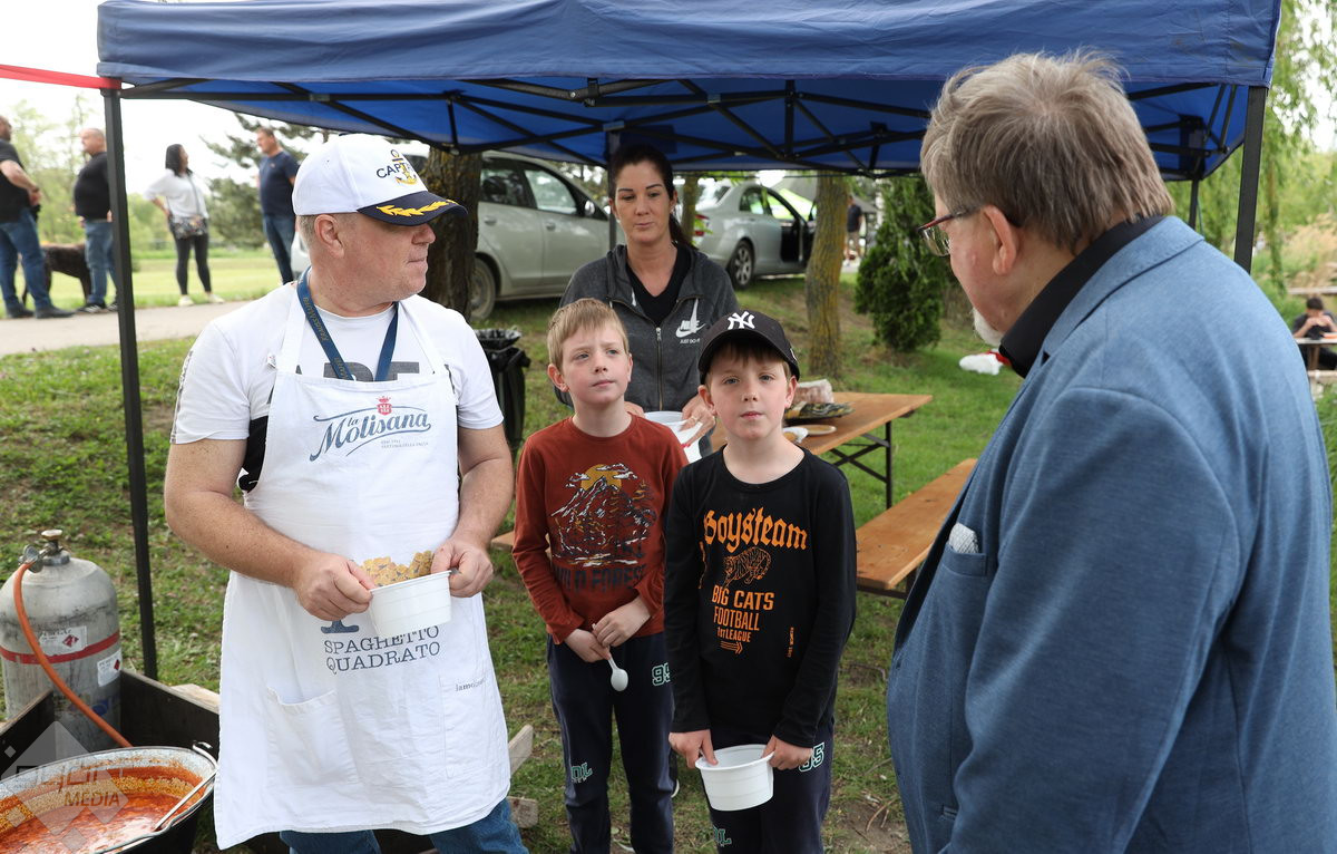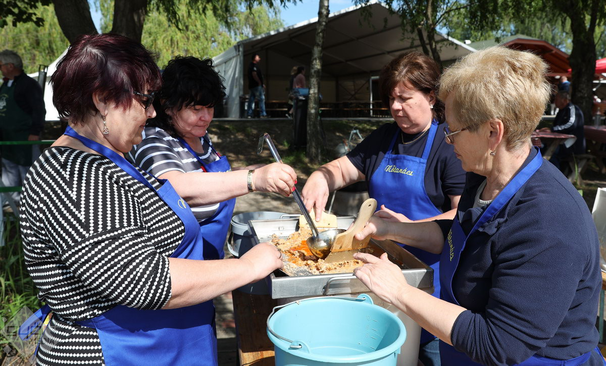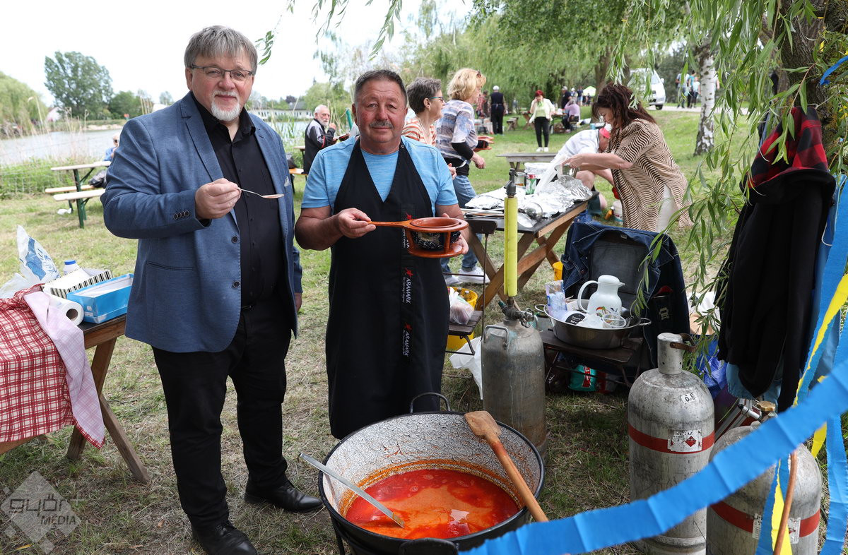 ”Az eddigiekhez hasonlóan most is nagy volt az érdeklődés, nemcsak a helyiek jöttek ki, hanem érkeznek Győrből és a szomszédos településekről. Huszonnégy csapat nevezett be a főzőversenybe, vannak közöttük baráti társaságok, munkahelyi kollektívák. Tizenegy órakor már minden kondérban rotyogott a halászlé. Az sem maradt éhen, aki nem szereti a halat, nekik lángos és virsli készült. A délelőtt a gyermekprogramoké volt, lovaskocsikázás, pónilovagoltatás, légvárak és körhinta várták az apróságokat. A felnőtteket először Kulcsár Béla köszöntötte harmonikaszóval, majd magyar nóta következett. Lukács Tímea, valamint Németh Rudolf és zenekara felkeresték a főzőcsapatokat és mindenkinek elhúzták a nótáját. Volt még citeramuzsika, majd a somlói borlovagok avatási ceremóniájára került sor. Három órától a Hoppáré zenekar adott koncertet, végül pedig retró zenékkel zártuk a napot.”