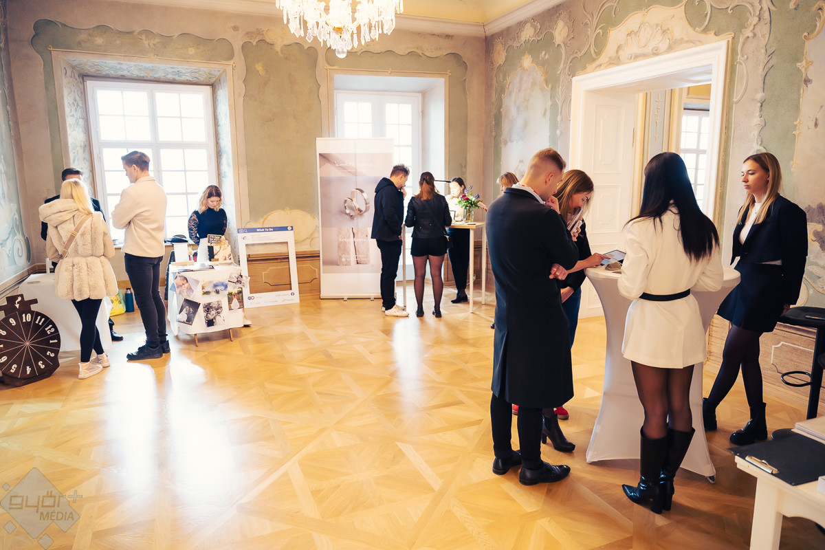 Szombaton rögtön nyitás után sorra érkeztek az érdeklődő párok, volt akiket valamelyik szülő is elkísért. A kiállításon nem csupán esküvői helyszínek, ruhaszalonok, fotósok, és ékszerészek ajánlatával ismerkedhetnek meg az érdeklődők, a pároknak remek alkalom ez a Zichy-palota házasságkötő termeinek megtekintésére is. A helyszínen lehetőség nyílik személyesen megismerkedni szolgáltatókkal, inspirációt meríteni, időpontokat foglalni, illetve a jubileumi alkalom miatt kihagyhatatlan kedvezményekre lehet szert tenni bizonyos esküvői szolgáltatások árából.