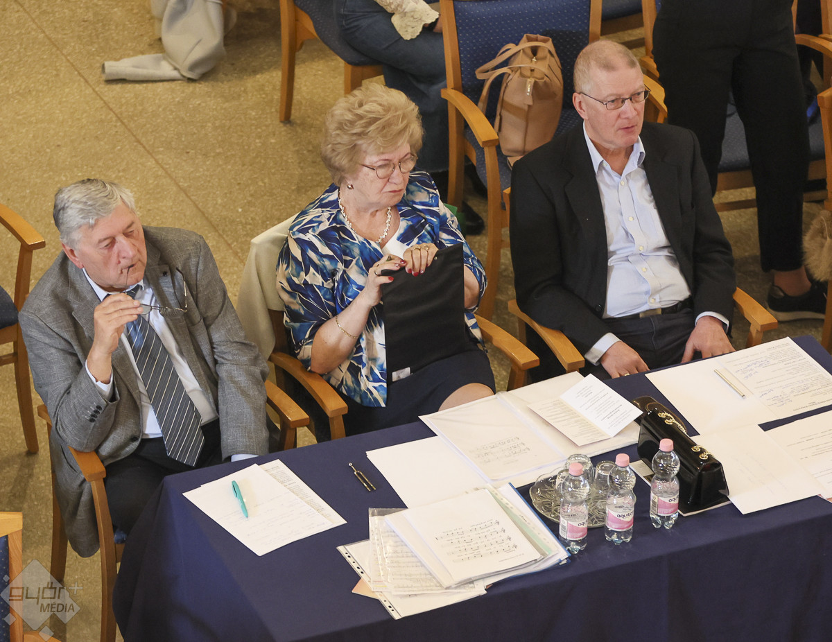 Az általános és középiskolás kórusok minősítését szakmai zsűri végezte, melynek tagjai Sipos Tamásné KÓTA-díjas zenetanár, Katona Tibor KÓTA-díjas karnagy voltak. A bíráló bizottság elnöke, dr. Erdős Ákos karnagy, az ELTE Zenei Intézetének oktatója portálunknak elmondta: „Megtisztelő számomra, hogy több mint egy évtizede visszajáró tagja lehetek a zsűrinek. Sokfelé járok az országban, de Győrben egészen egyedi a helyzet, hiszen a hosszú évek során végig lehet hallgatni, hogyan fejlődik az itteni zene-, illetve kóruskultúra. Szép fejlődést, nagyon magas színvonalat lehet tapasztalni. A ma fellépő tizenöt kórusban hatszáznál is többen énekelnek, s ez elképesztően nagy szám országos viszonylatban is. Külön öröm, hogy új kórus, új arcok és több fiatal jelenik meg itt, s ez azt jelenti, hogy van folytatás.”