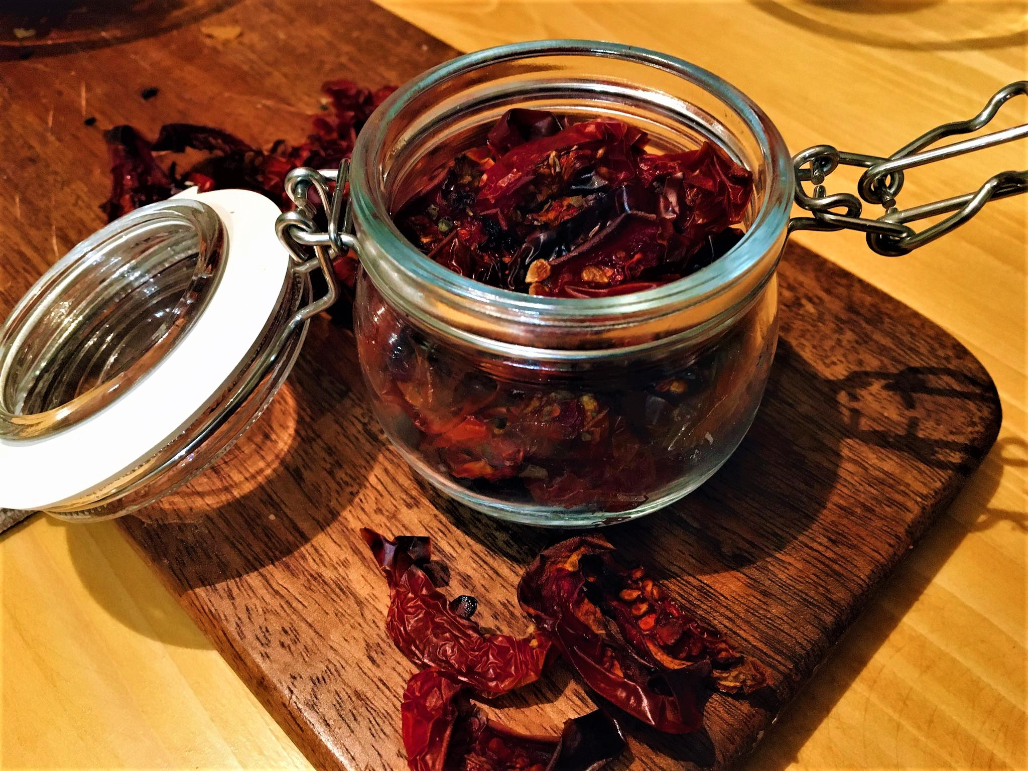 Az aszalt paradicsomhoz szinte bármilyen formájú, állagú, színű paradicsom megfelel. Cikkekre vághatom vagy csupán félbe, teljesen mindegy. Összesül, aszalódik és nagyon sokáig eláll. Az aszalás egy tökéletes tartósító módszer már nagyon régóta, amihez nem kell tartósítószer. A nedvességet szárítjuk ki belőle, majd olajba tesszük el. Ízesíteni szoktam bazsalikommal, néha kakukkfűvel és sóval-friss borssal. Az üvegbe zárt aszalt paradicsom pedig az egyik legintenzívebb fűszerünk lehet a kamrában, hiszen sajtos szószokhoz, kenyérbe, kencének, önmagában és húsokhoz is olyan hivalkodó, hogy minden ételt feldob egy szelet belőle. Érdemes 4-5 tepsivel sütni, ami ugyan kissé időigényes, de egy házimunka alatt szépen elvégzi a dolgát.