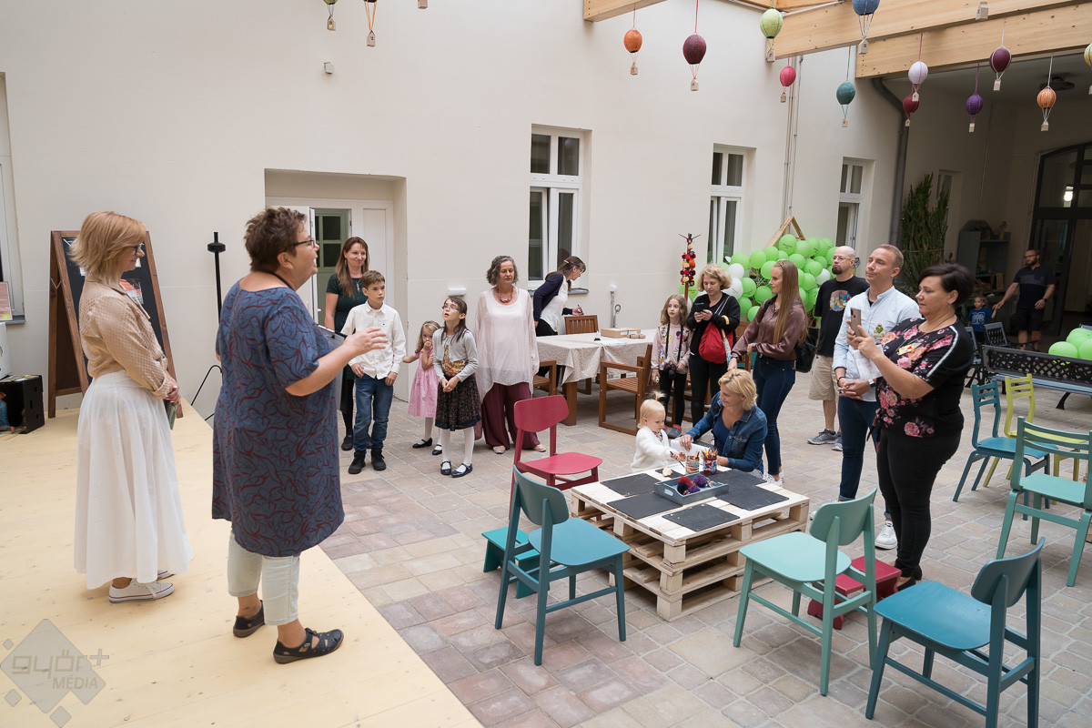 Kokas Éva a ház igazgatója a rendezvényen hangsúlyozta: „Az épület felújítása és az ingyenesen látogatható háznyitogató a Generációk zöld belvárosa projekt keretében valósulhatott meg. 45 féle programmal készültünk, tele van a ház szakemberekkel, kézművesekkel. A nap folyamán olyan hobbikat, szakköröket mutatunk be, amelyeket elindítunk az intézményben. Jelenleg éppen teltházzal zajlik az ikonfestés bemutató, a kerámiafoglalkozás, és az iskola-előkészítő program. Érdemes eljönni, bepillantani, megismerni, hogy milyen lehetőségeket kínálunk, este hatig várjuk az érdeklődőket!”