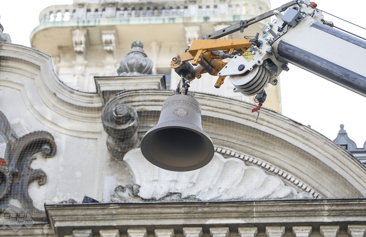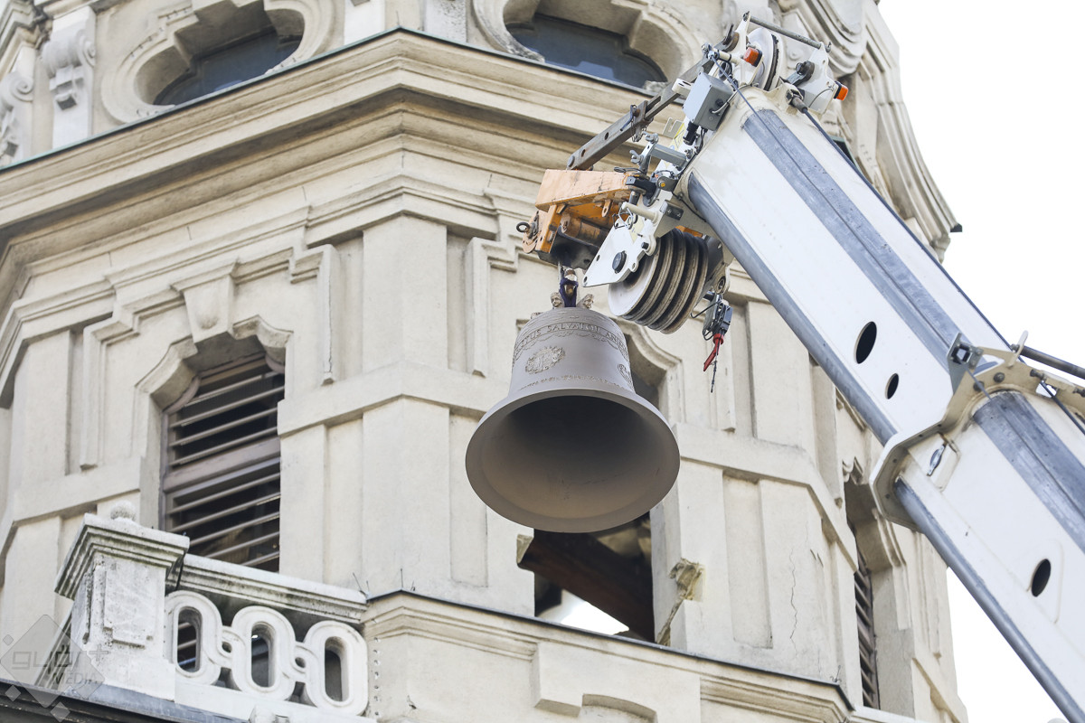 Az egyedülálló harangjátékot biztosító kisharangok után helyére került a Városháza Tűzharangja is. Erről a polgármester számolt be a Győr+-nak, aki természetesen személyesen felügyelte a harang beemelését.