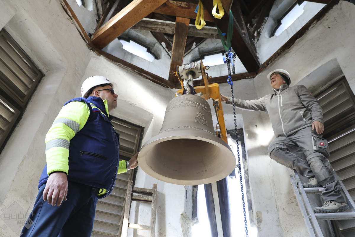 „Biztos vagyok benne, hogy az egyedülálló harangjáték és az új Tűzharang is komoly vonzerő lesz a hozzánk érkező turisták számára, és a győriek is biztosan szeretni fogják, hiszen nekik, értük készült mindkettő” – hangsúlyozta dr. Dézsi Csaba András. A 80 centiméter magas és 350 kilogramm súlyú harangot óriásdaru segítségével, centiméterről-centiméterre emelték be a Városháza nyugati tornyába, a nem mindennapi műveletet pedig már közben sokat fotózták vagy videózták.