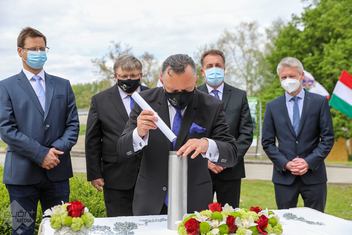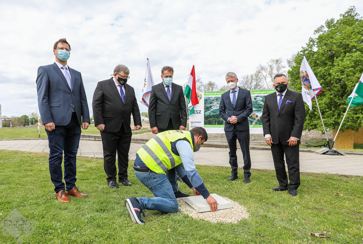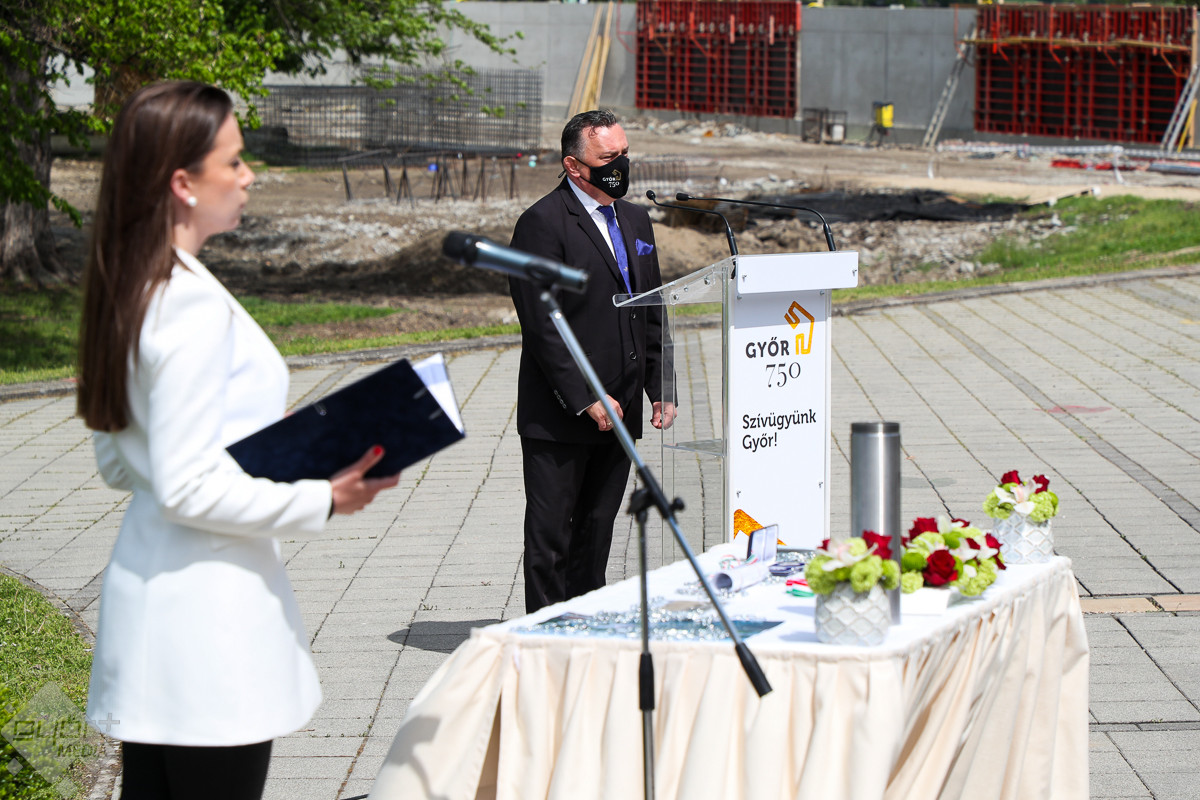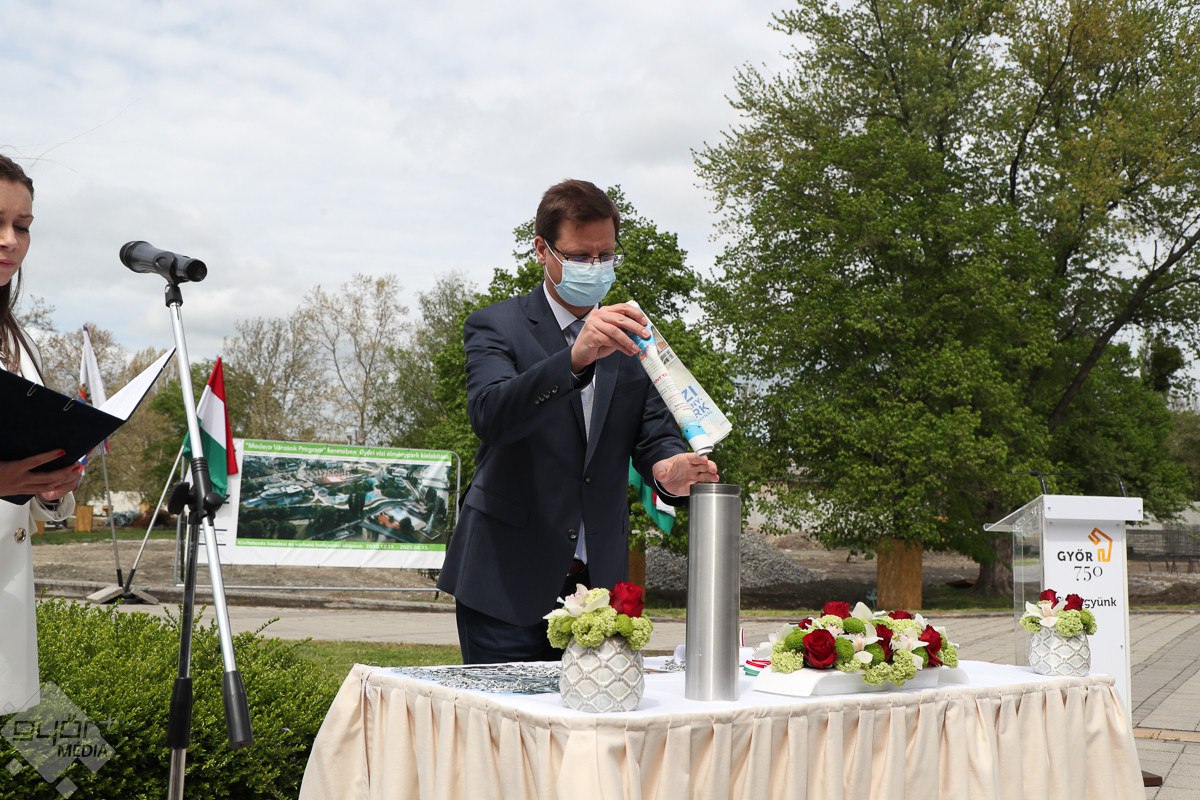 Az időkapszulát és a létesítmény alapkövét Dr. Gulyás Gergely miniszterelnökséget vezető miniszter, Dr. Dézsi Csaba András polgármester, Simon Róbert Balázs és Kara Ákos Győr országgyűlési képviselői, valamint Szeles Szabolcs alpolgármester, a terület önkormányzati képviselője helyezte el.