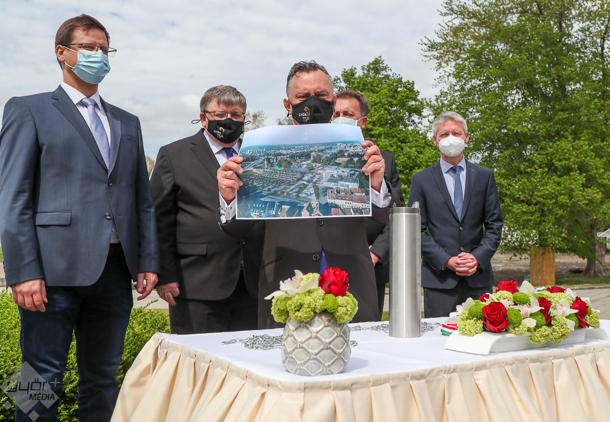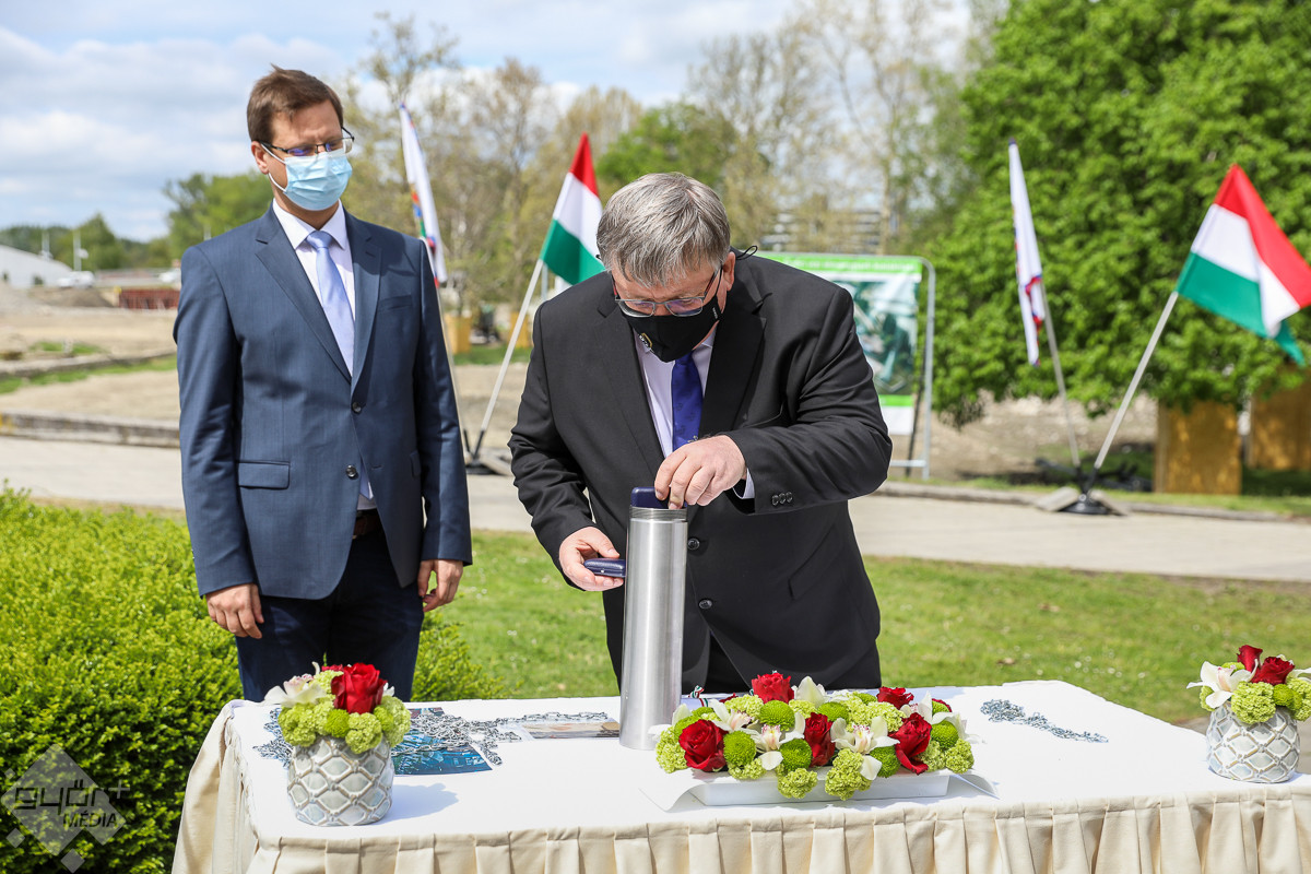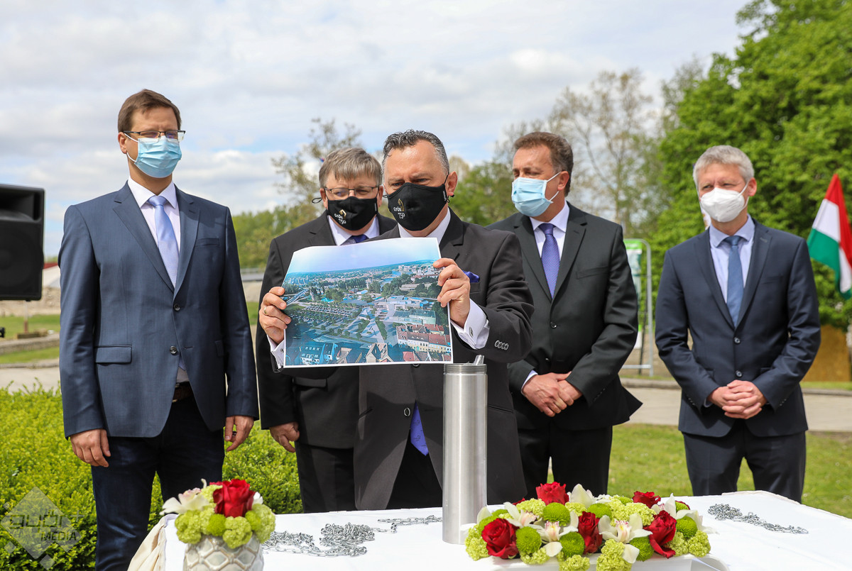 Az időkapszulát és a létesítmény alapkövét Dr. Gulyás Gergely miniszterelnökséget vezető miniszter, Dr. Dézsi Csaba András polgármester, Simon Róbert Balázs és Kara Ákos Győr országgyűlési képviselői, valamint Szeles Szabolcs alpolgármester, a terület önkormányzati képviselője helyezte el.