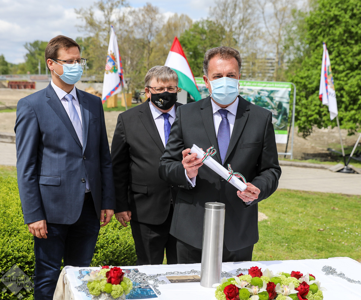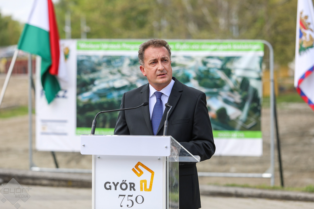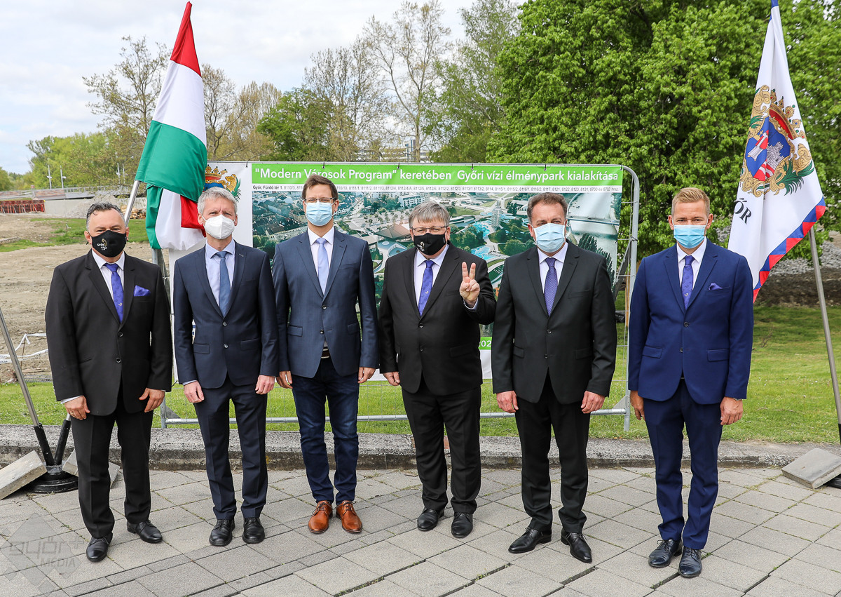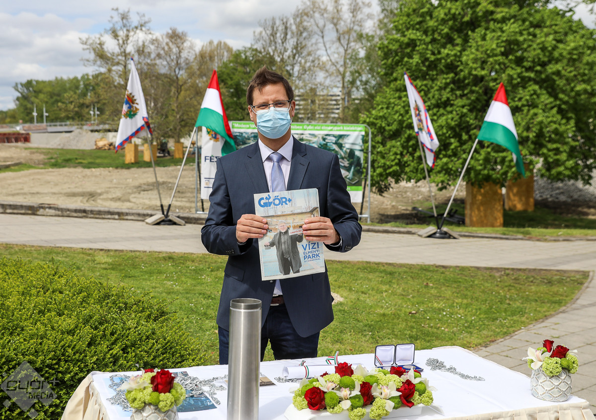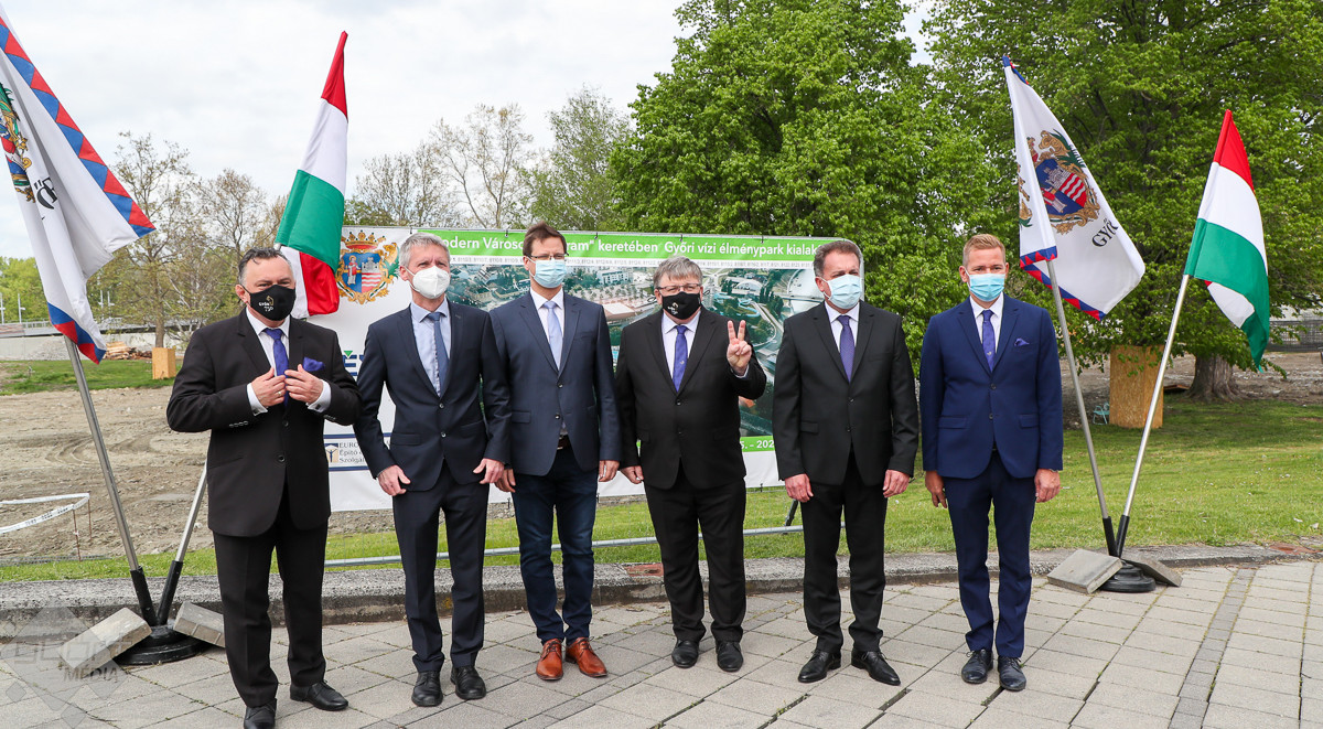 Dr. Dézsi Csaba András köszönetet mondott a miniszternek, és rajta keresztül Orbán Viktor miniszterelnöknek a kormányzat támogatásáért, valamint a város országgyűlési képviselőinek, és mindazoknak, akik megteremtették a fejlesztés lehetőségét. A polgármester a munkaterületen látható „fallal” kapcsolatban elmondta, nem csak egy vízi élménypark épül, hanem egy olyan gátrendszer, ami megvédi a fürdőt. Emlékeztetett arra, hogy a korábbi strandot az árvíz időről időre elöntötte, ami jelentősen hozzájárult az állapota leromlásához, ezért ez felelős gondolkodást jelez. Kiemelte, fontos, hogy az új fürdőt is magukénak érezzék a győriek és, hogy meg is tehessék, hogy látogatják majd az élményparkot. A polgármester sok sikert kívánt a beruházáshoz, az időkapszulába pedig a városháza ezüst emlékérmét, valamint a 750-es évforduló városi emlékérmét helyezte.