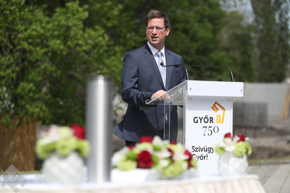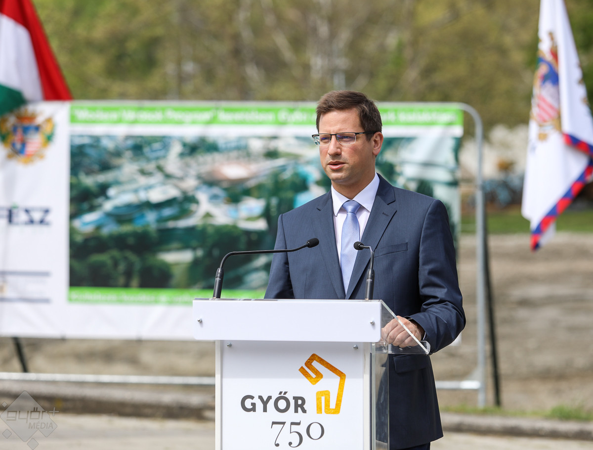 „Valóban ünnep a mai nap, mert ezzel a beruházással két éven belül olyan strandfürdő nyílhat Győrben, amelynek a térségben nincs párja, és az országban is nagyon kevés.” – fogalmazott a miniszter az avatáson, aki kiemelte, ez a beruházás csak egy a folyamatban lévő fejlesztések közül, az országgyűlési képviselők, és a város polgármestere is több olyan tervet ismertetett, amelyek a jövőt szolgálják, gondoljunk akár a kulturális negyedre, vagy az infrastrukturális fejlesztési tervekre. Ezek a fejlesztések tovább erősíthetik Győrt, és a térségi, regionális központi szerepét. „Ennek az országnak a jövője éppúgy van vidéken, mint a fővárosban, éppúgy a megyei jogú városokban, mint a falvakban.” Hozzátette, a járvány magunk mögött hagyása után a cél, hogy ahhoz a gazdasági növekedéshez térjünk vissza, ami az elmúlt években jellemezte Magyarországot. A miniszter végezetül elmondta, a kormány ezután is támogatja a jövőbe mutató fejlesztéseket. Gulyás Gergely az időkapszulába a Győr+ hetilapot helyezte el.