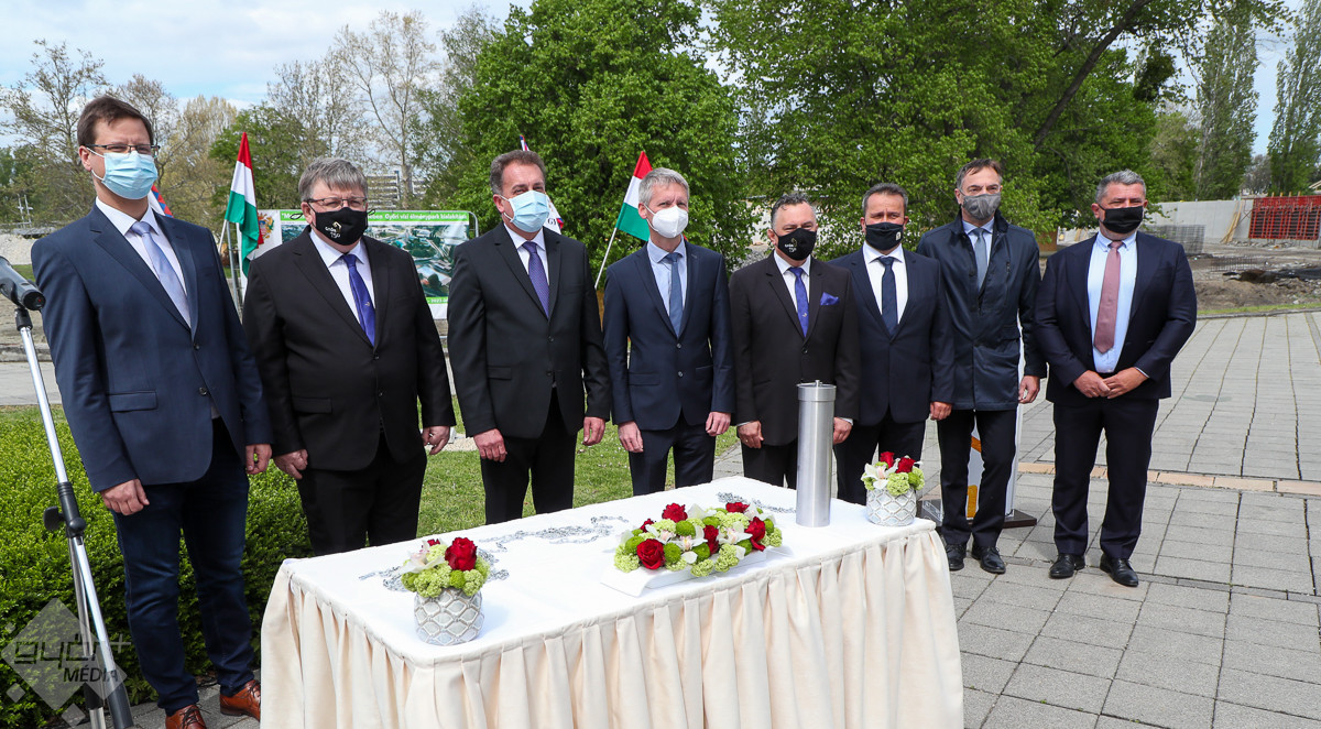 A győri strandfürdő területén már javában zajlik a munka, csütörtökön pedig az ünnepélyes alapkő-letételre is sor került. Az eseményen részt vett Dr. Gulyás Gergely miniszterelnökséget vezető miniszter is.