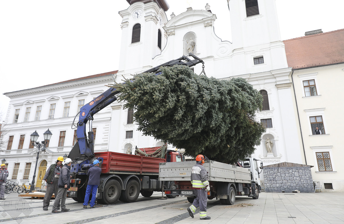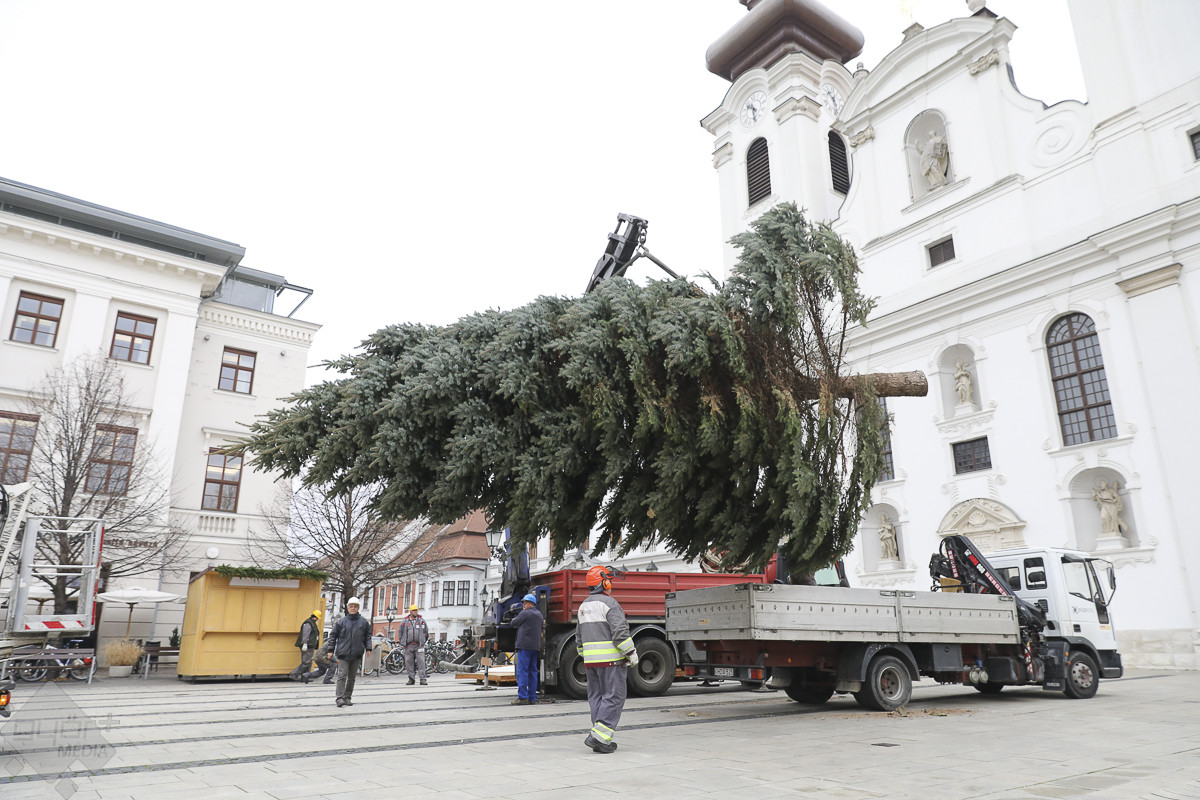Az adventi készülődés egyik fontos pillanata, hogy a Széchenyi térre megérkezik a város fenyőfája. Idén egy 11 méter magas, 25 éves ezüstfenyő lett Győr karácsonyfája, amely egy ménfőcsanaki kertből származik.
