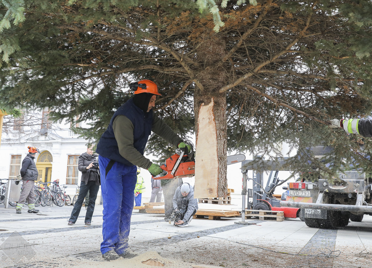 „A Győr-Szol Zrt. feladata a fa kiválasztása, kiemelése, helyszínre szállítása és a Széchenyi téren a helyére állítása. Minden évben, így most is a Győr környéken élők ajánlják fel a mindenki karácsonyfájának alkalmas örökzöldeket, és kollégáim választják ki a legszebbet.” – nyilatkozta a helyszínen Ozsvárt Tamás a Győr Szol Zrt. ügyfélszolgálati és kommunikációs csoportvezető
