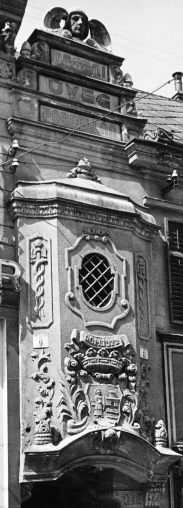 A kapuszerű építmény furcsa alakjával 30 évig uralta a Lépcső köz bejáratát, amely ma lepusztulva néz a Király utcára. Az építmény stílusok egymásra hatásából született, a barokk, a neo rokokó, a felső szakaszon pedig a szecesszió nyomai láthatók. Sokan gondolhatják, hogy hiszen ez giccses, egy oda nem illő építmény, nem kár, hogy elbontották.