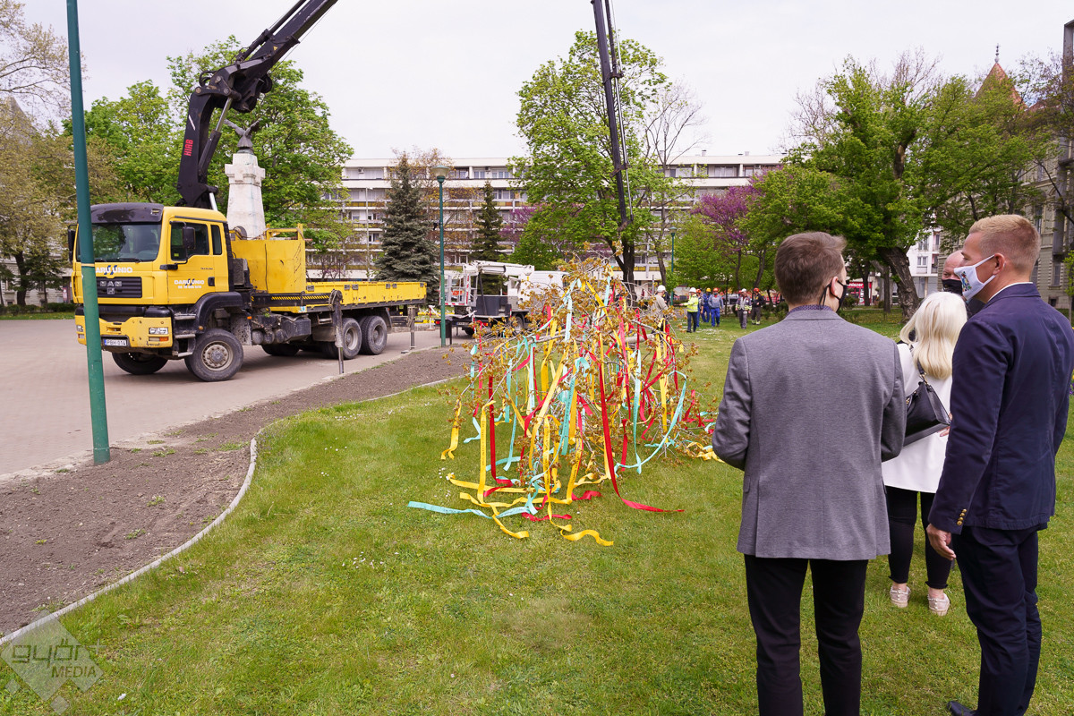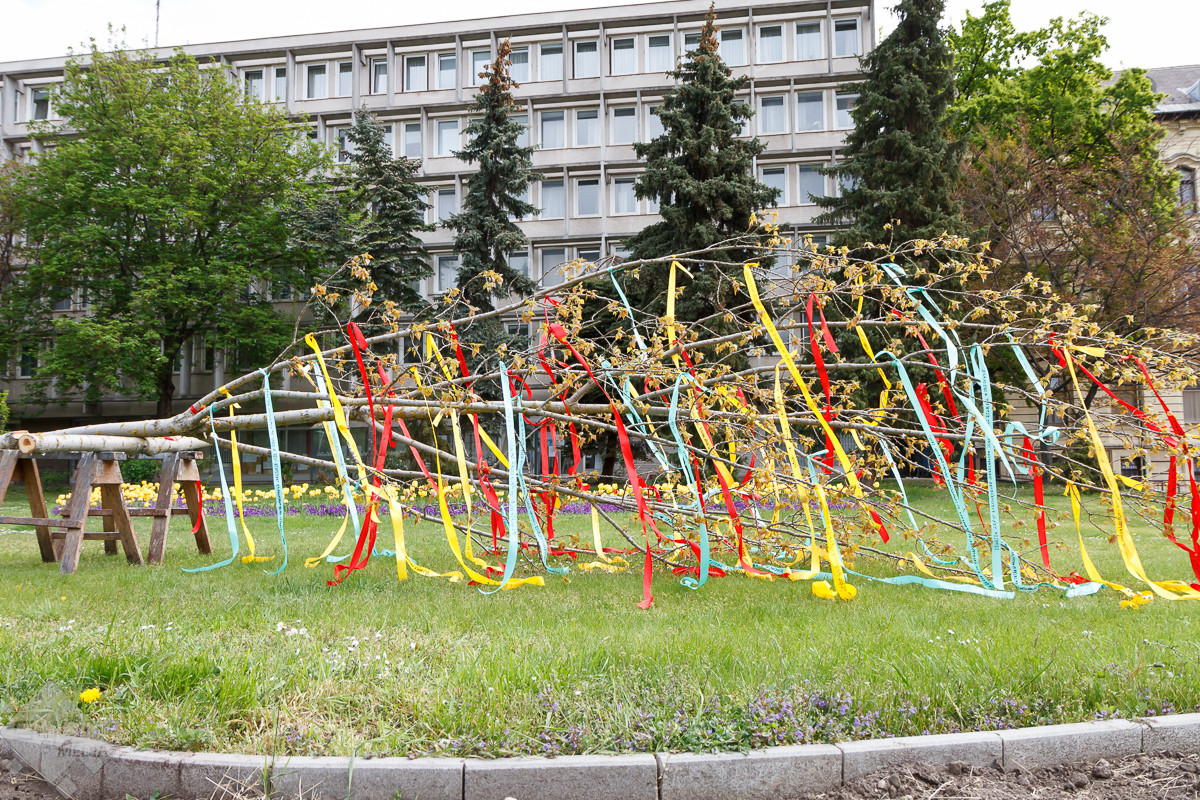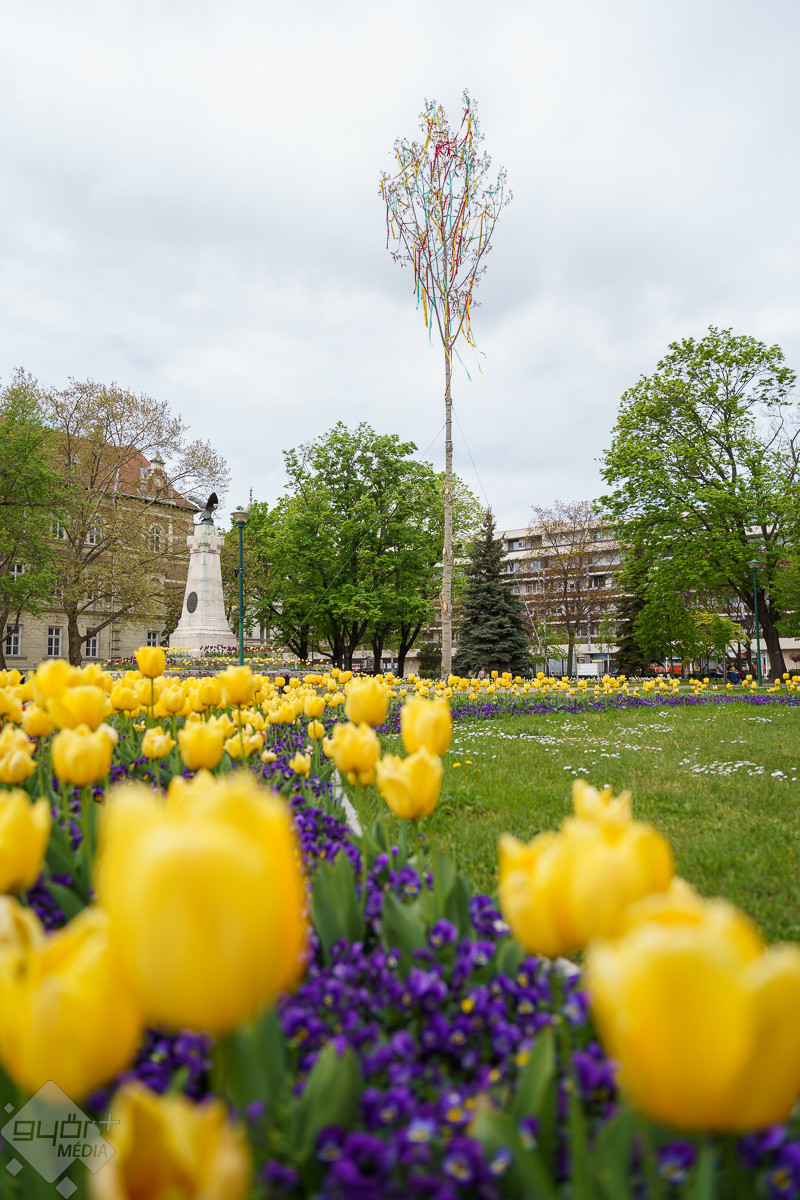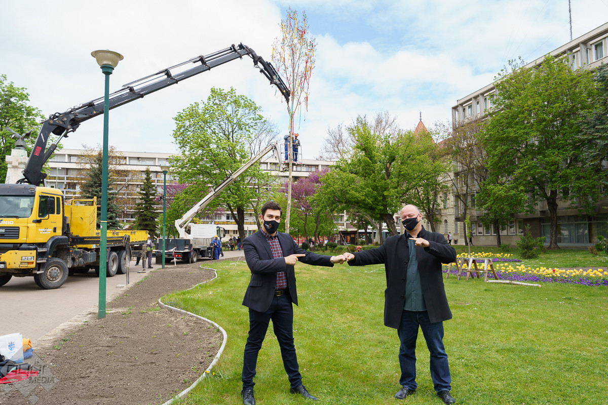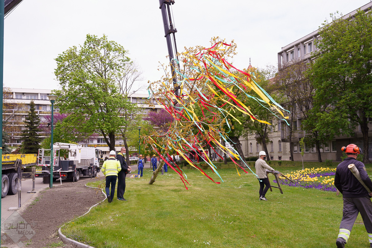 A májusfaállításon részt vett Radnóti Ákos alpolgármester is, aki a város nevében kötött fel színes szalagot a májusfára. Az alpolgármester elmondta, Magyarországon, főleg vidéken, komoly hagyományai vannak a májusfaállításnak, mostantól Győrben is tradíció lehet ebből a szokásból.