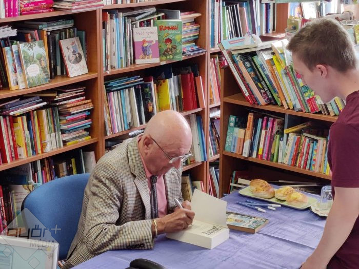 Lőrinc L. Lászlóval a Tótágas Könyvesboltban beszélgettünk, ahol új könyvének kiadása kapcsán dedikált. A körülbelül egy órás program alatt néha még az utcán is sorban kellett állni, ennek ellenére a rajongótábor kitartóan és jókedvűen várakozott. A szerző többeket is visszatérő ismerősként üdvözölt és sokszor csalt mosolyt a jelenlévők arcára egy-egy derűs megjegyzéssel.