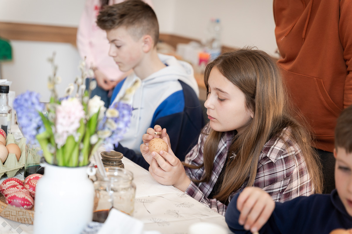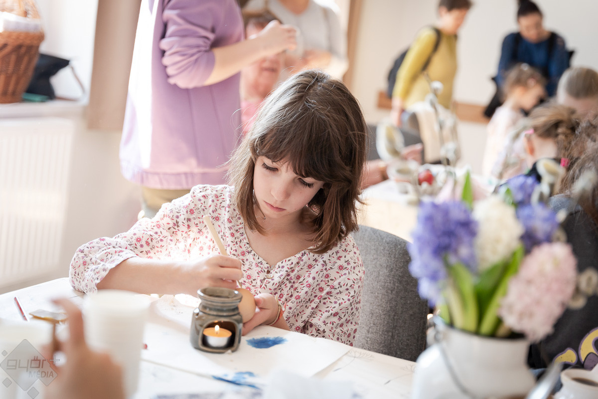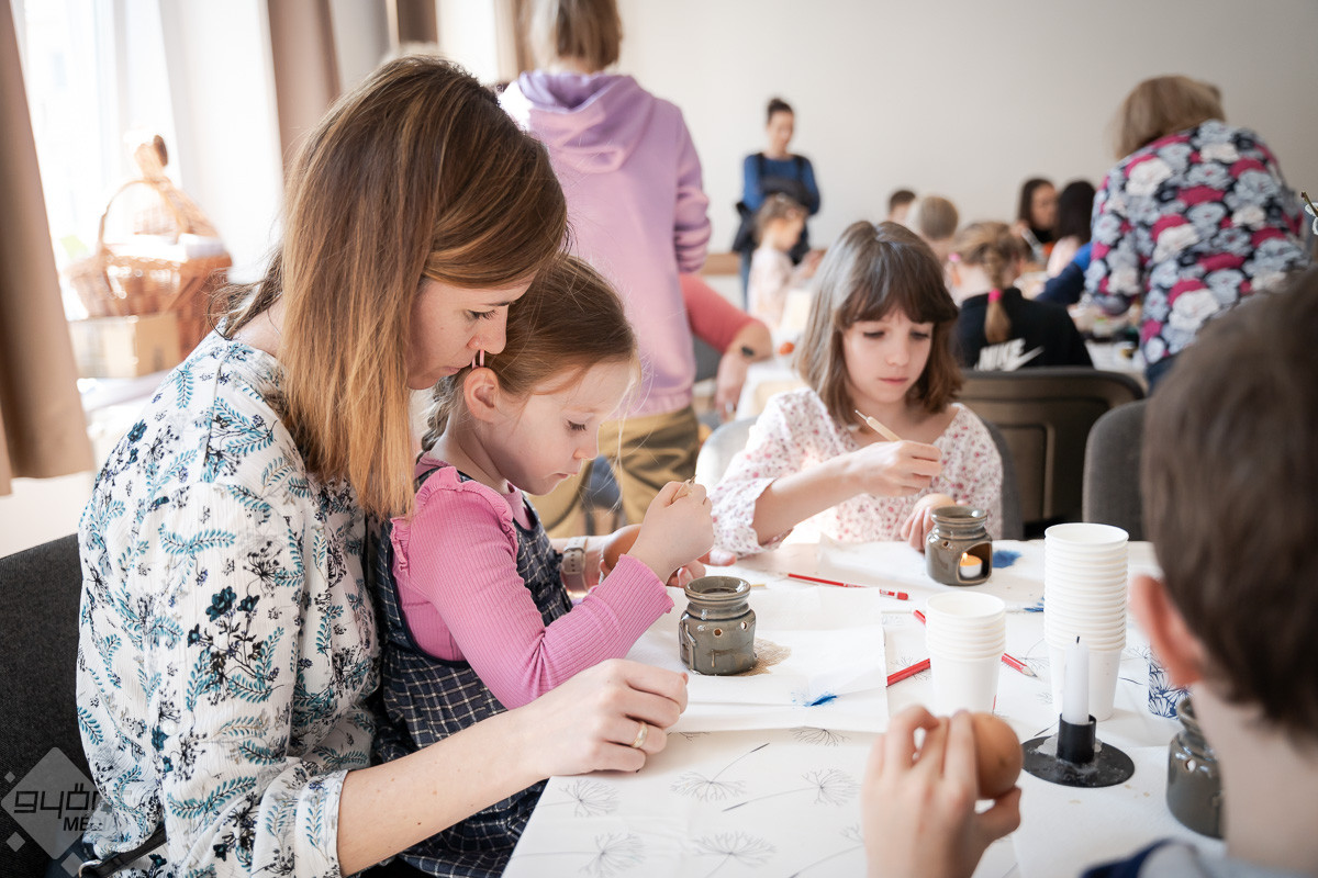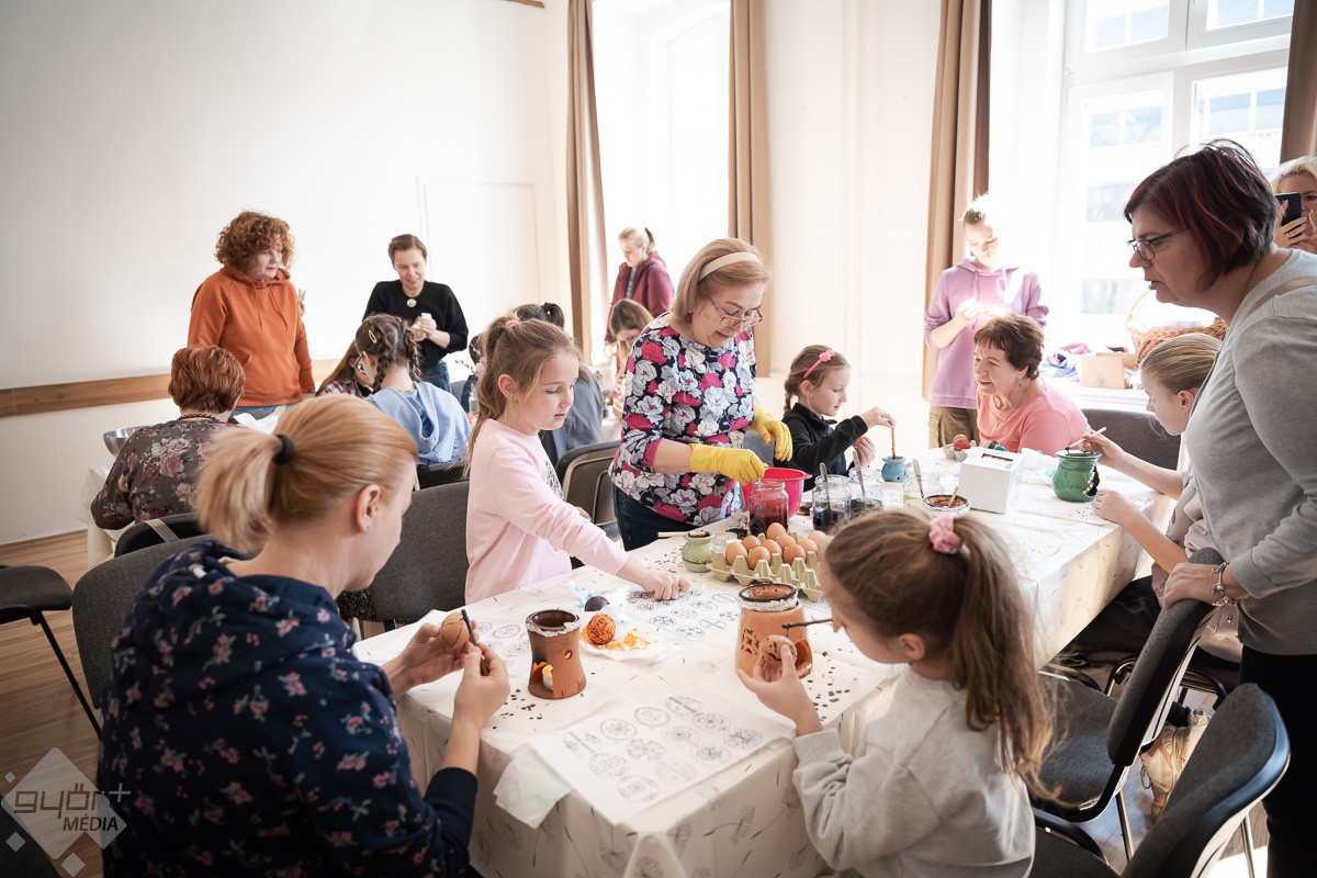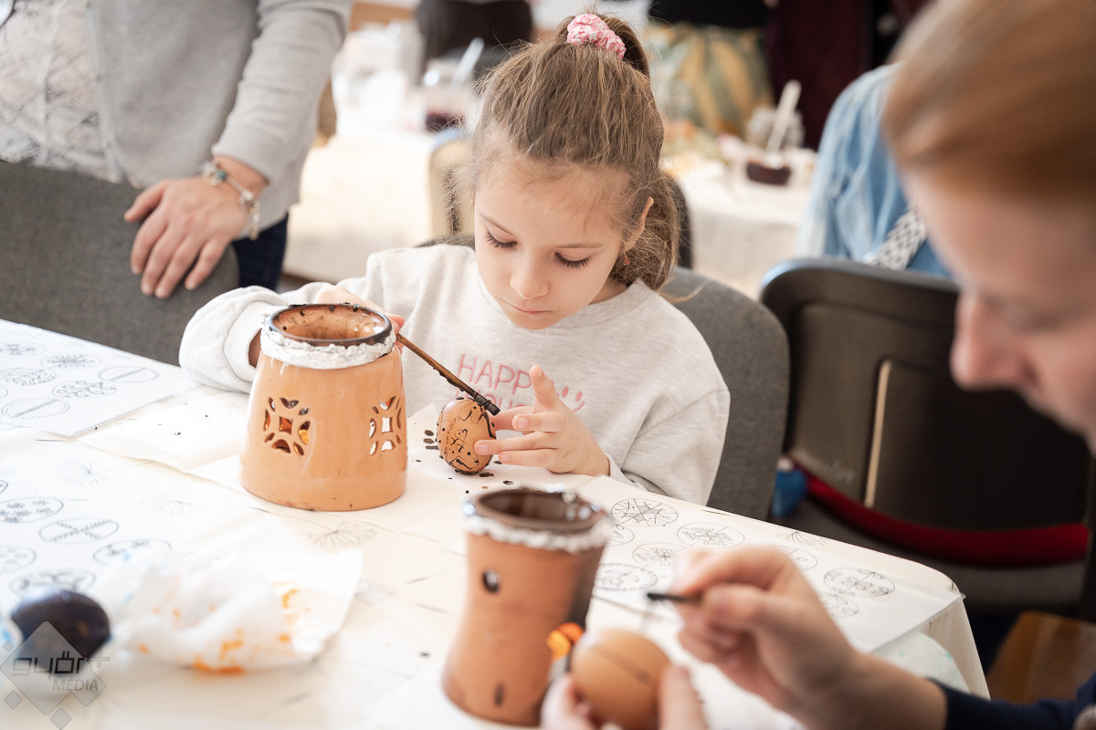 Már délelőtt elkezdődött a kirakodóvásár a kézművesek portékáiból. Nem csak díszes-míves tojásokat, hanem rengeteg húsvéti ihletésű lakásdekorációt, díszt lehetett vásárolni. Akinek kedve volt, maga is felcsaphatott kézművesnek, a gyerekek között népszerű volt a kreatív program, hiszen kedves kisbárányok, ötletes egyéb figurák elkészítéséhez kaptak szakértő segítséget.