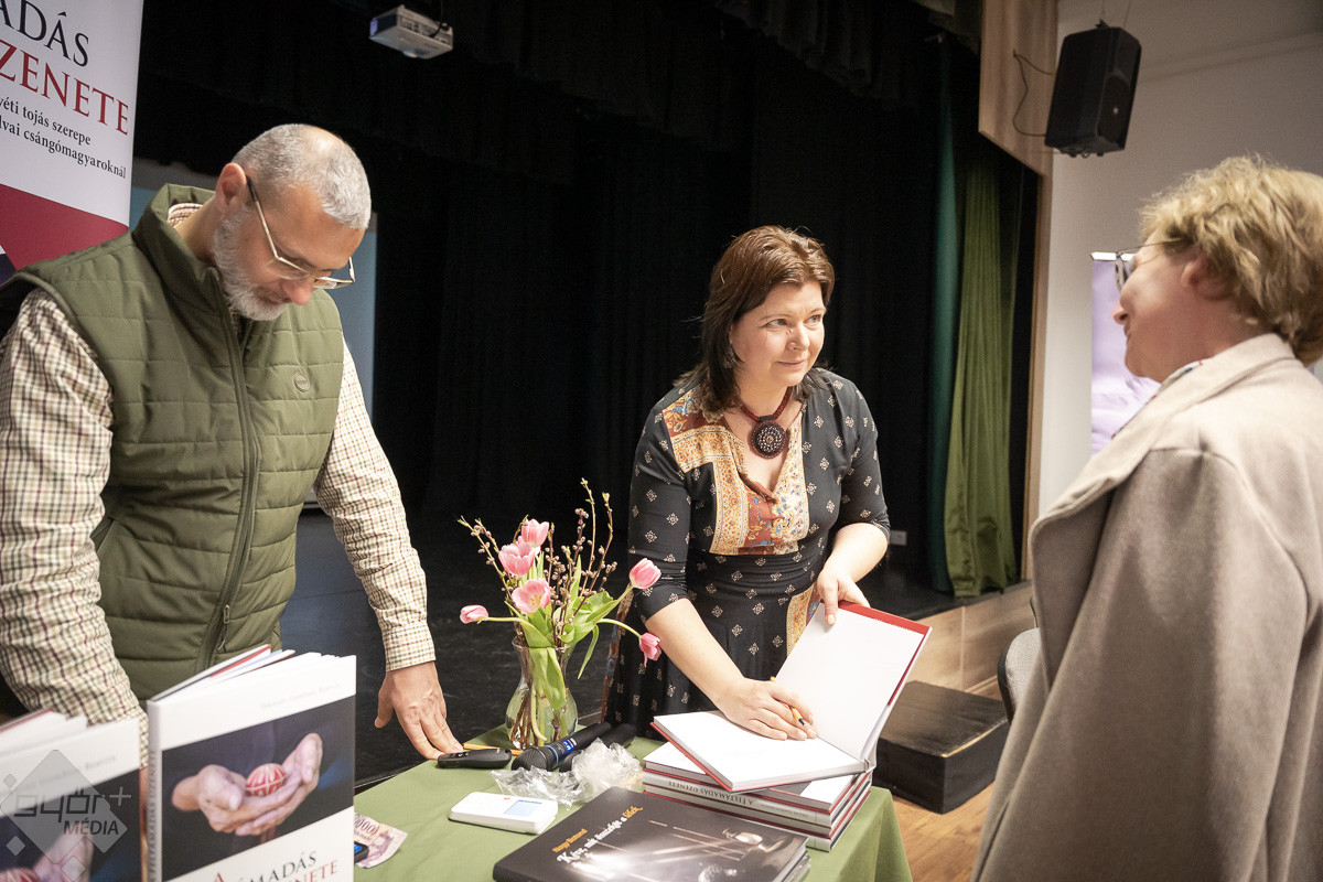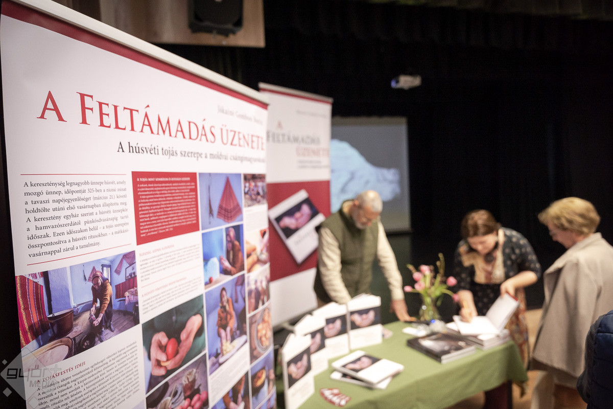Jókainé Gombos Beatrix szerző könyvbemutatója a feltámadás üzenetét közvetítette az érdeklődőknek. A kötetet a moldvai csángómagyarok húsvéti tojásfestési szokásain keresztül láttatta a tojás szimbolikus jelentőségét. A kötetetet Medgyesy-Schmikli Norbert művelődéstörténész, a PPKE BTK egyetemi docense mutatta be.