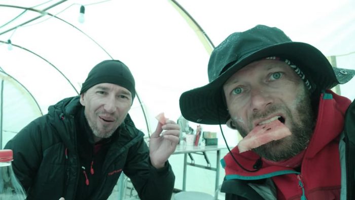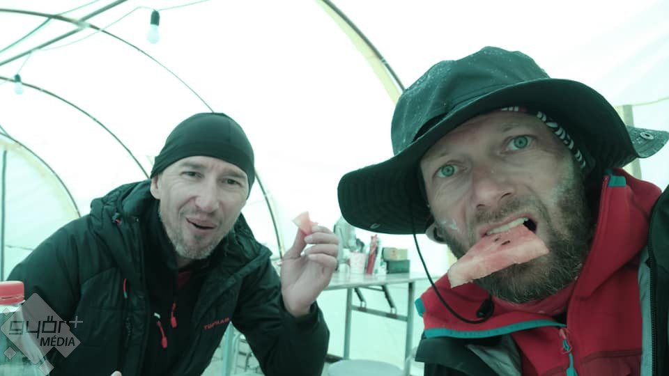 „Öltözünk-vetkőzünk, öltözünk-vetkőzünk. Próbálkozunk egy nap többször is alkalmazkodni, de a meleg és a hideg is ugyanolyan kimerítő” – mesélte nevetve Albert, majd ugyanilyen jókedvűen mesélt tovább az alvásról is, ami leginkább Péternek megy, amíg ő őrt áll a hóesésben. Szükség is van az éberségre, hiszen ha hótakaró lepi el a sátor szellőző-nyílásait, annak tragédia is lehet a vége: ha nem figyelnek, gyakorlatilag megfulladhatnak álmukban.