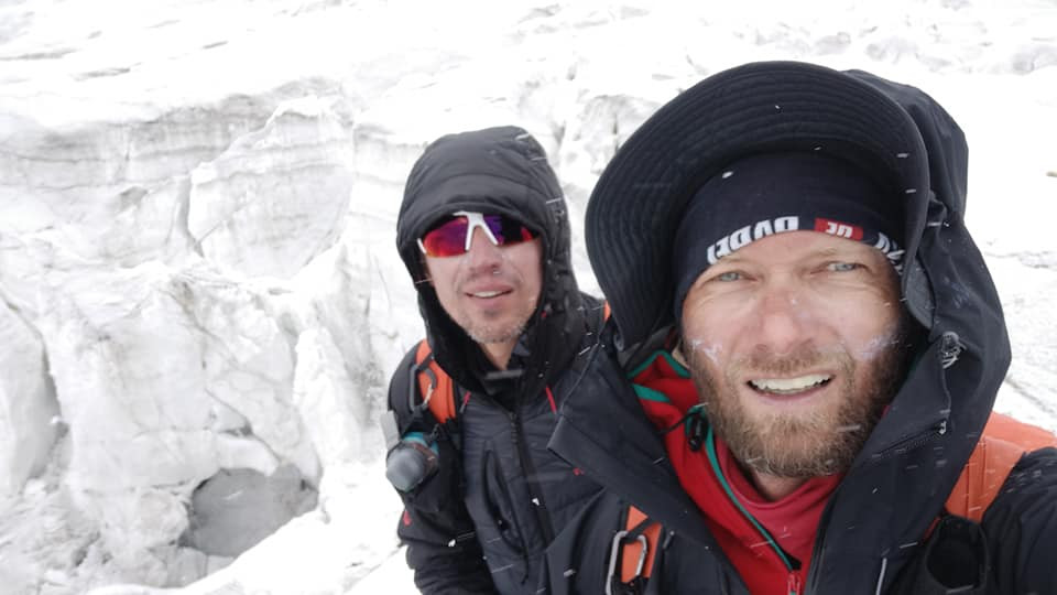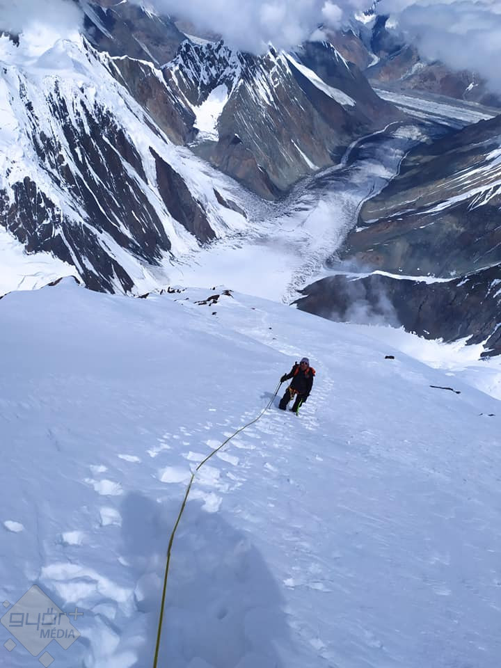 „Nagyon képben kell lenni! Mindkettőnknek van okosórája, azokba folyamatosan mentjük a pontokat. A lefele utunk úgy történt, hogy elindultunk 6000 méteren, ahol gyönyörű napsütés volt, mindent láttunk. Aztán beleereszkedtünk egy felhőzetbe – ami nagyjából egy 500 méteres szinttartományt jelentett – és máris óriási ködben haladtunk tovább lefele. Majd megint jött egy kis napsütés, majd megint hóesés, úgyhogy a 2000 méteres süllyedés alatt mindent megtapasztaltunk a nyártól a télig, a hóeséstől a napsütésig, na meg a ködfátyolt is. Előfordul, hogy elindulsz -20 fokban, s mire leereszkedsz, ott már +35 fok fogad. Szóval ez elég kemény.”