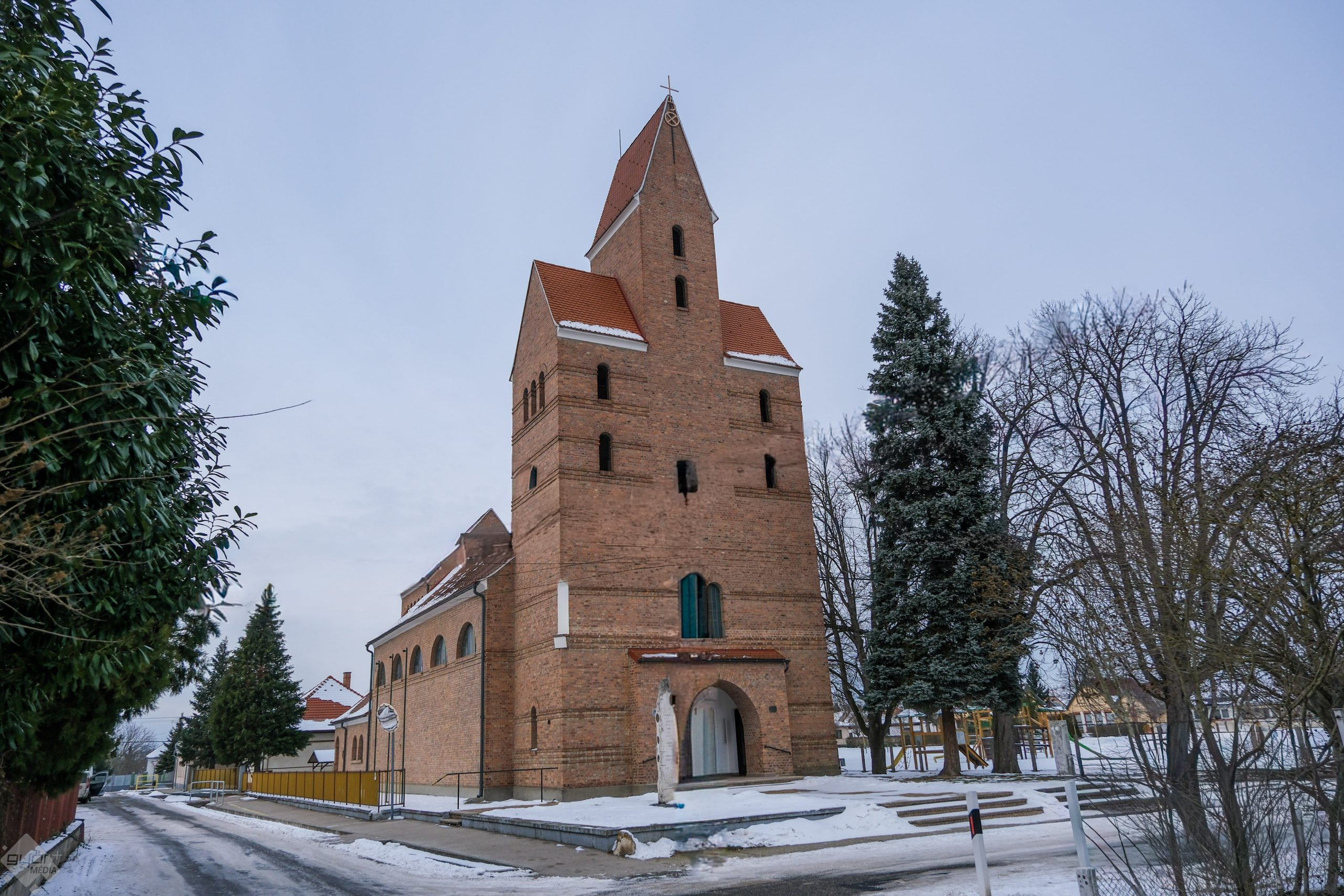 A Szent István templom tornya messziről két összetett kezet szimbolizál. A tervező a győri Borsa Antal, a kor elismert belsőépítésze, restaurátora, képzőművésze volt. Ugyancsak ő készítette első apostoli királyunkat és a magyar szenteket ábrázoló oltárképet.