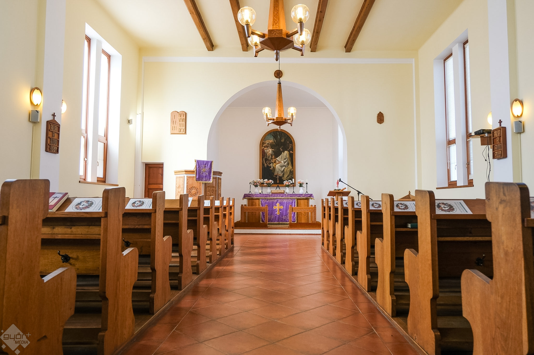 „Az oltárkép jól mutatja gyülekezetünk jelenét” – mondja Pongrácz Máté. A fiatal lelkész öt éve érkezett és családjával együtt gyorsan otthonra talált a településen.