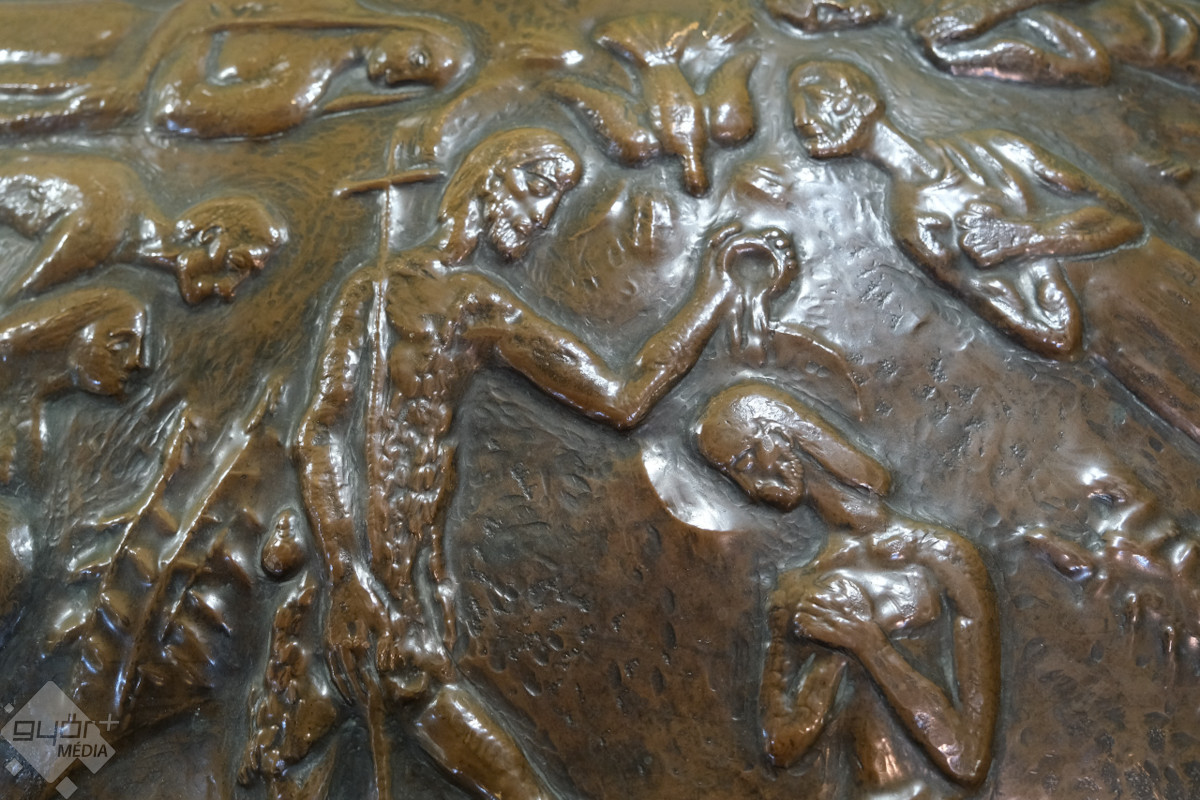 A szakrális tárgyak közül említésre méltó a feszület. Schima Bandi, a neves iparművész egyetlen 20 kilós vastömbből formálta meg Krisztus testét, forrasztás és reszelés nélkül, csupán a legegyszerűbb kovácseszközöket használva.