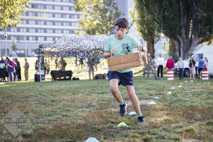 A csapatokra osztott gyerekeket így várta egy izgalmas kúszófolyósó, lőszeres láda cipelése szlalomban, gumi kézigránáttal való dobás, painball-airsoft- és lézerpuska lövészet és egy teszt kitöltése is, amely a magyar haditörténelemből tette próbába a tudásukat.