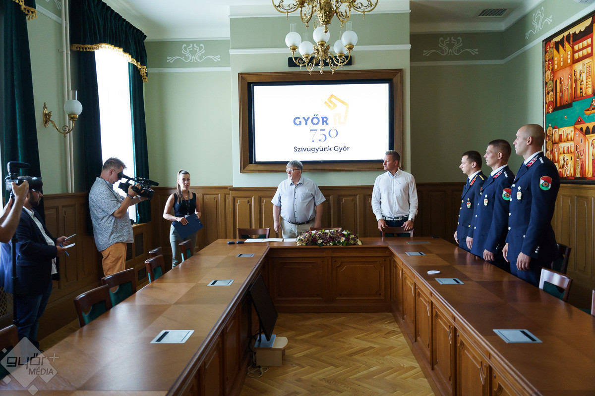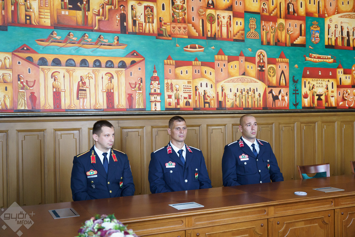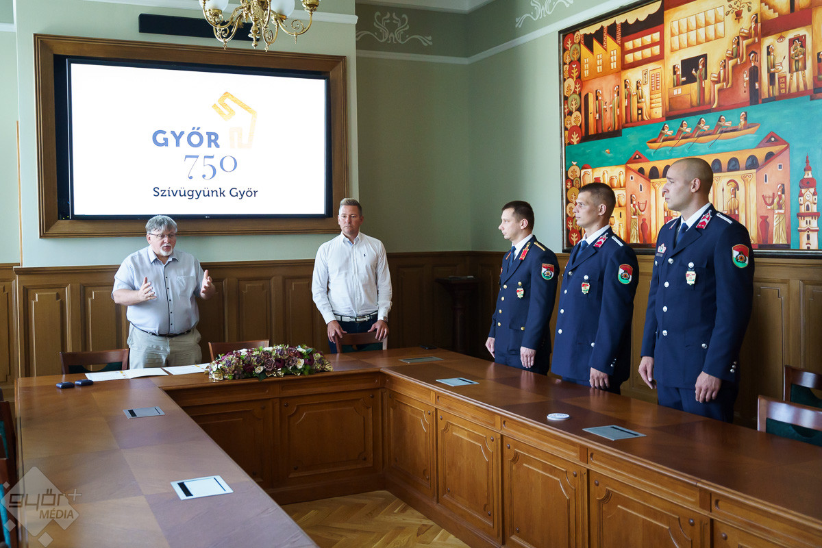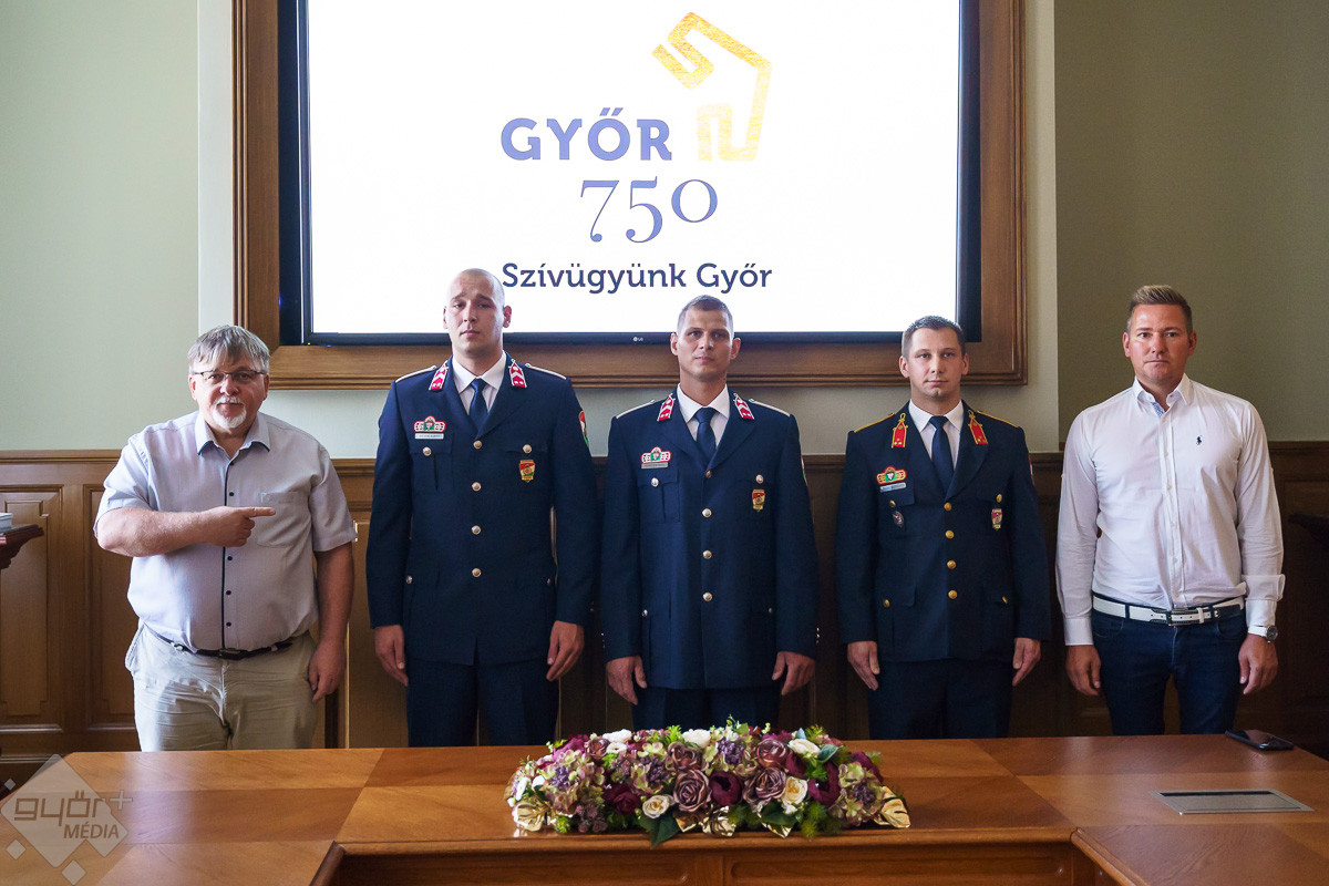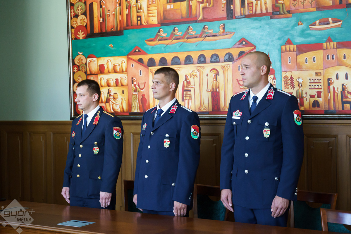 Két hős tűzoltót kedden, a Városházán köszöntött Győr polgármestere.