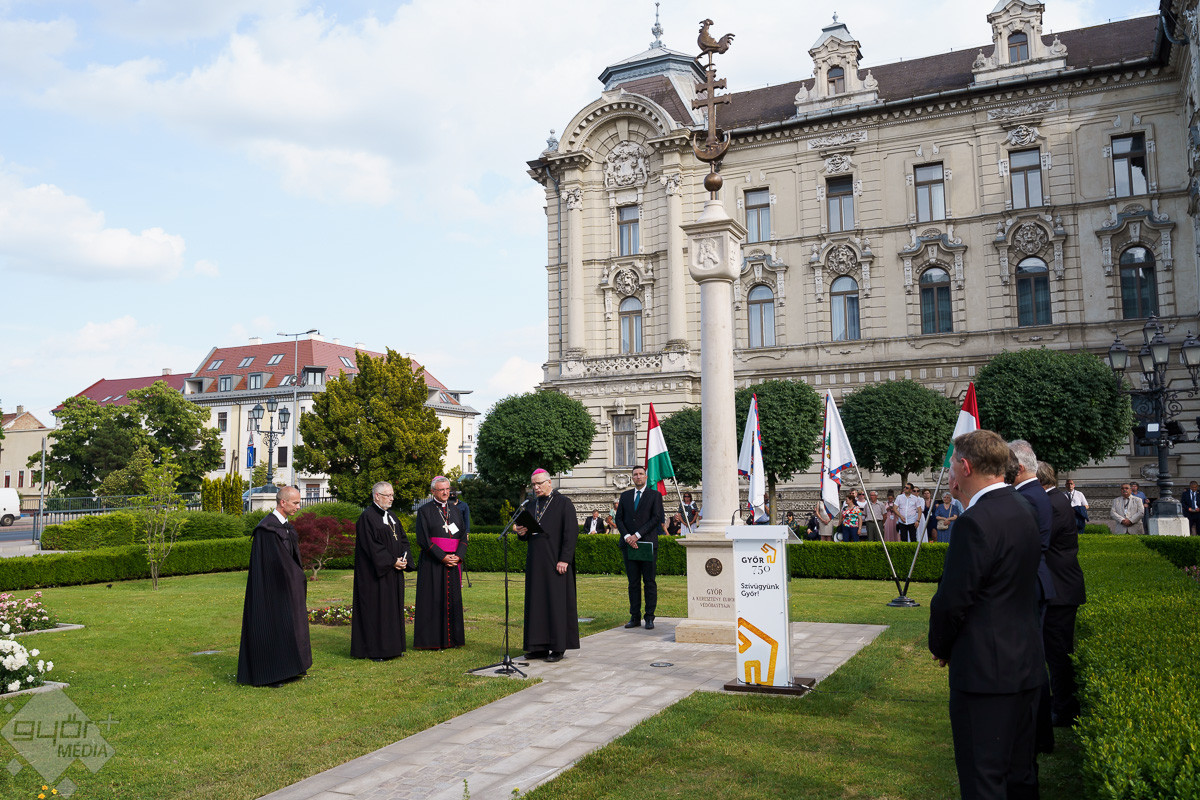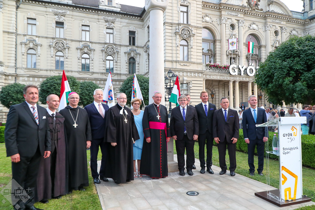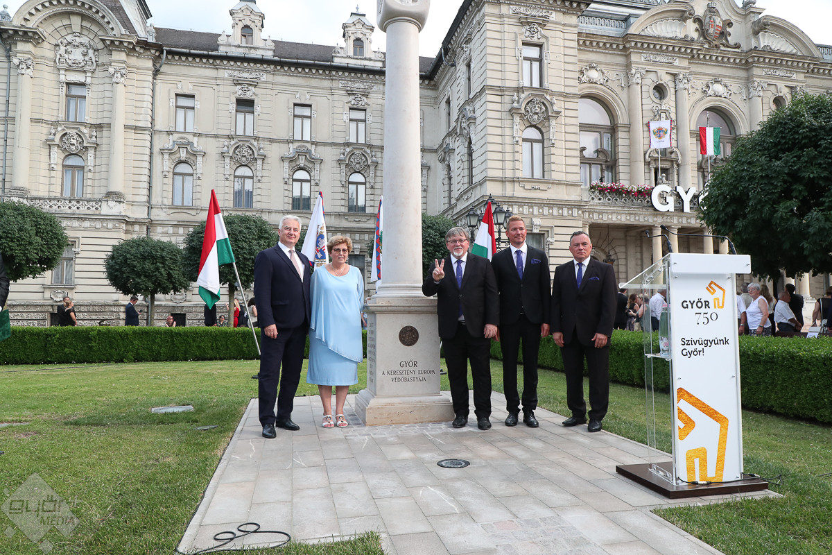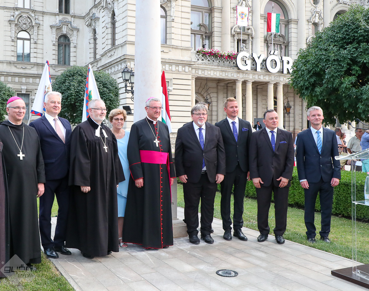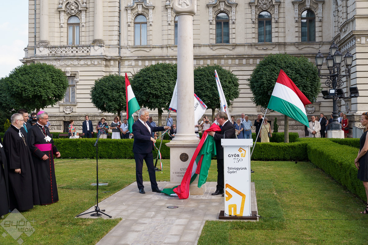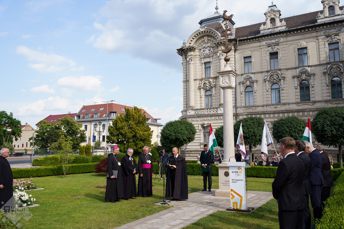 A Városháza tornyából felharsanó fanfárokkal kezdődött az avató ünnepség, majd Bede Fazekas Csaba Kossuth-díjas operaénekes és színművész énekelte el a Himnuszt. A rendezvény vendége volt dr. Semjén Zsolt miniszterelnök-helyettes, Széles Sándor kormánymegbízott, városunk országgyűlési képviselői és a szobrot felszentelő egyházak elöljárói. Eljött az eseményre Schwarzenberg herceg, a győri várat visszafoglaló egyik hadvezér leszármazottja is.