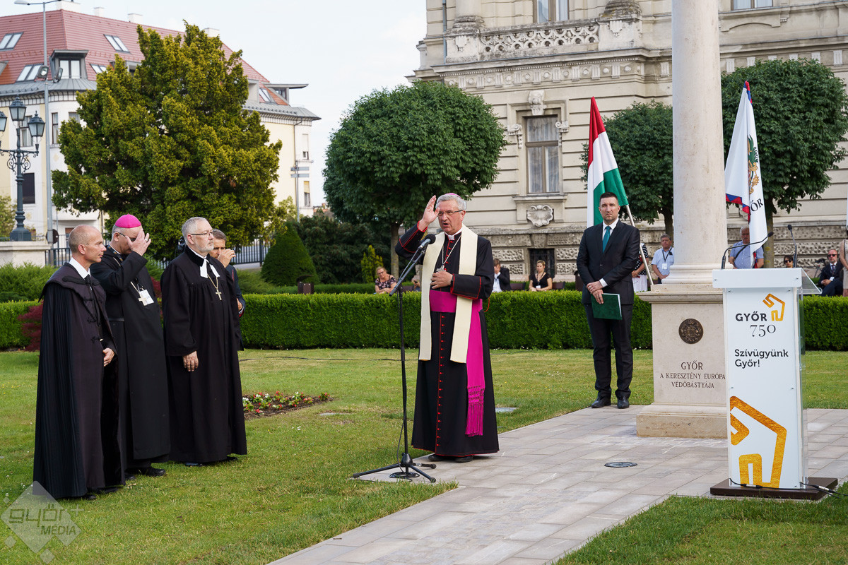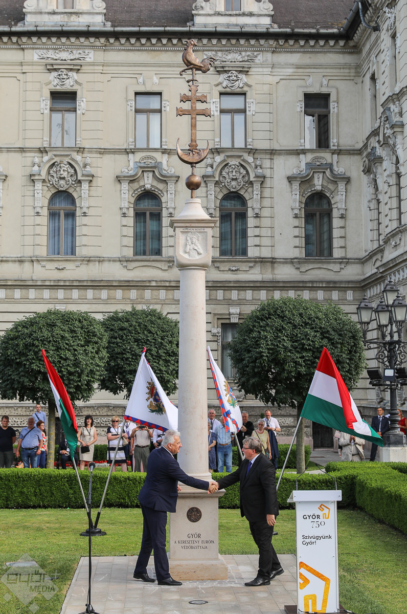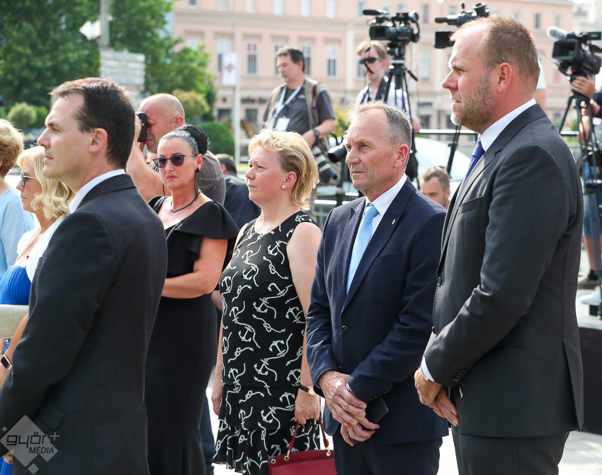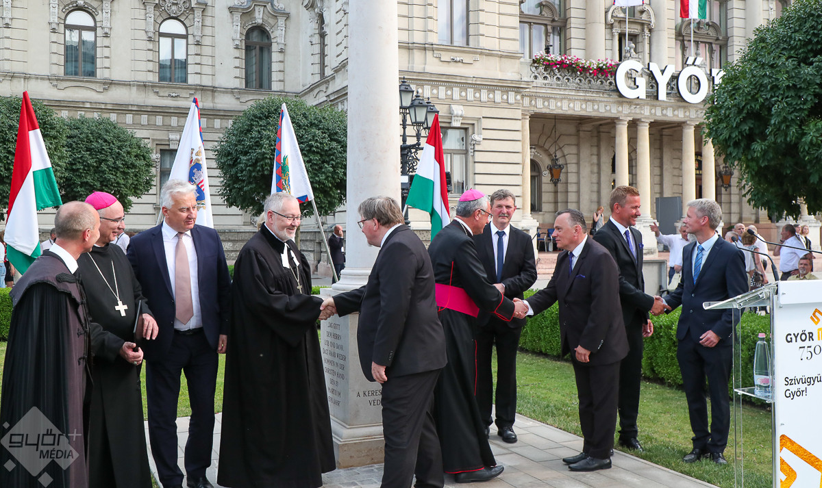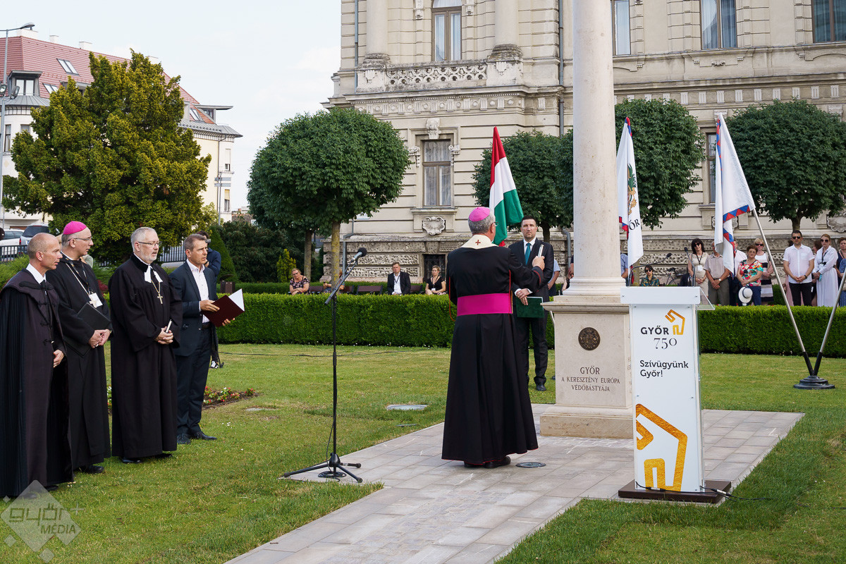A Városháza tornyából felharsanó fanfárokkal kezdődött az avató ünnepség, majd Bede Fazekas Csaba Kossuth-díjas operaénekes és színművész énekelte el a Himnuszt. A rendezvény vendége volt dr. Semjén Zsolt miniszterelnök-helyettes, Széles Sándor kormánymegbízott, városunk országgyűlési képviselői és a szobrot felszentelő egyházak elöljárói. Eljött az eseményre Schwarzenberg herceg, a győri várat visszafoglaló egyik hadvezér leszármazottja is.