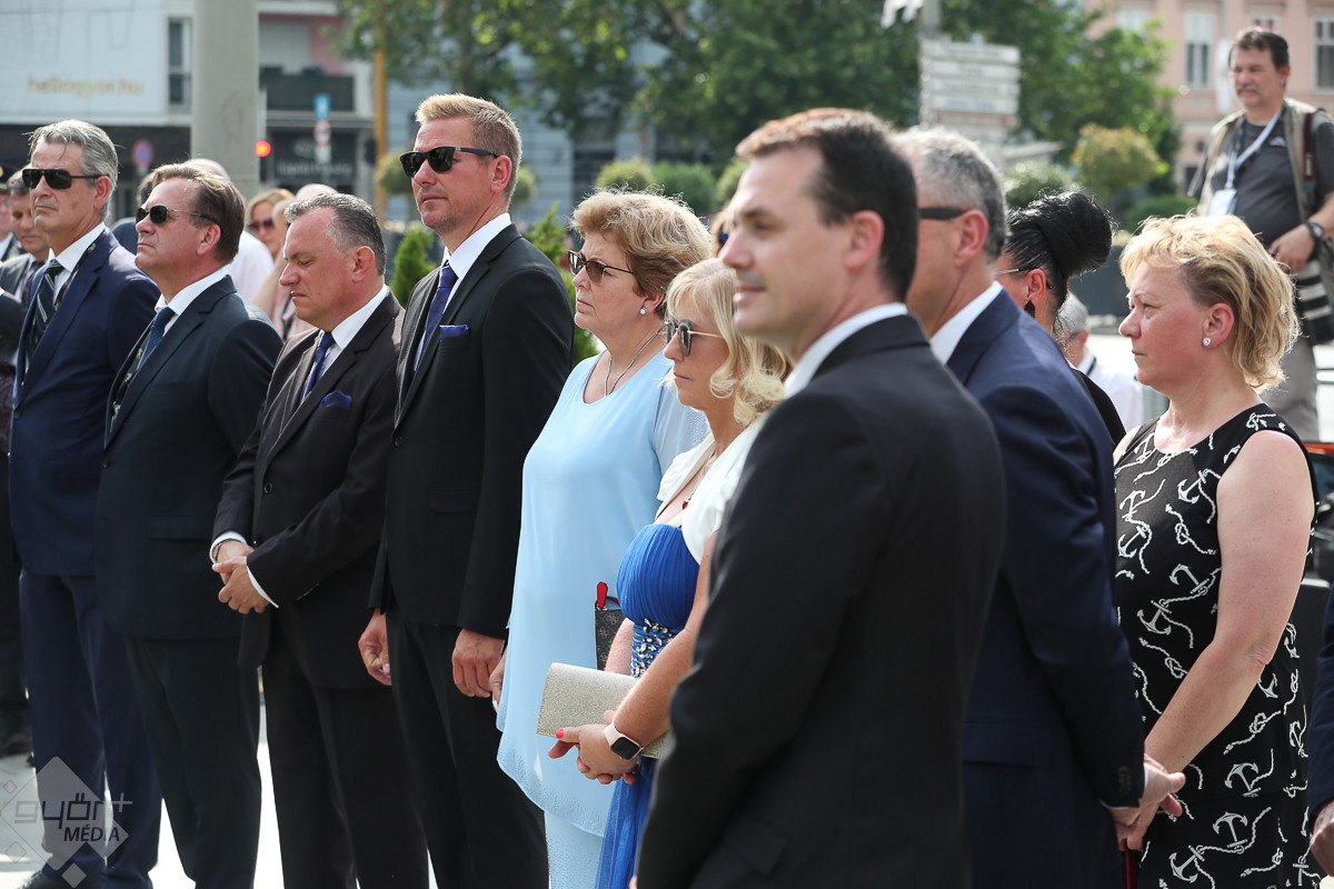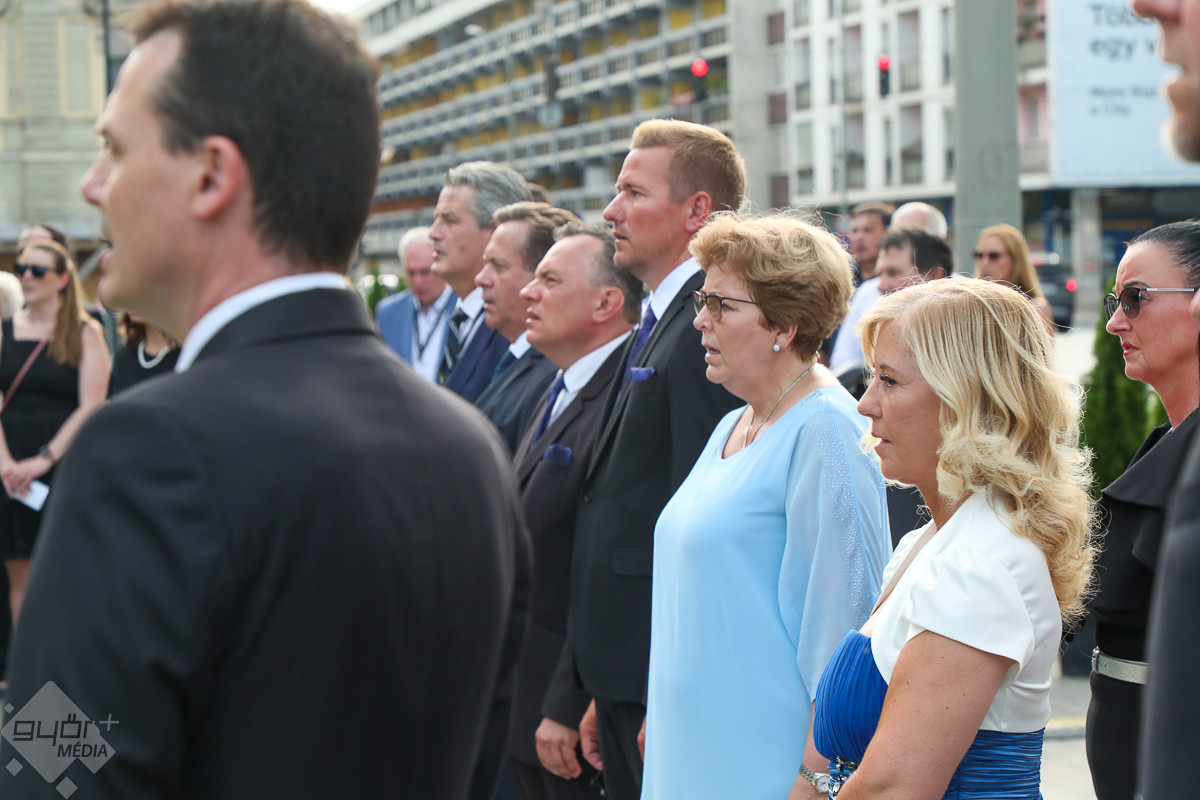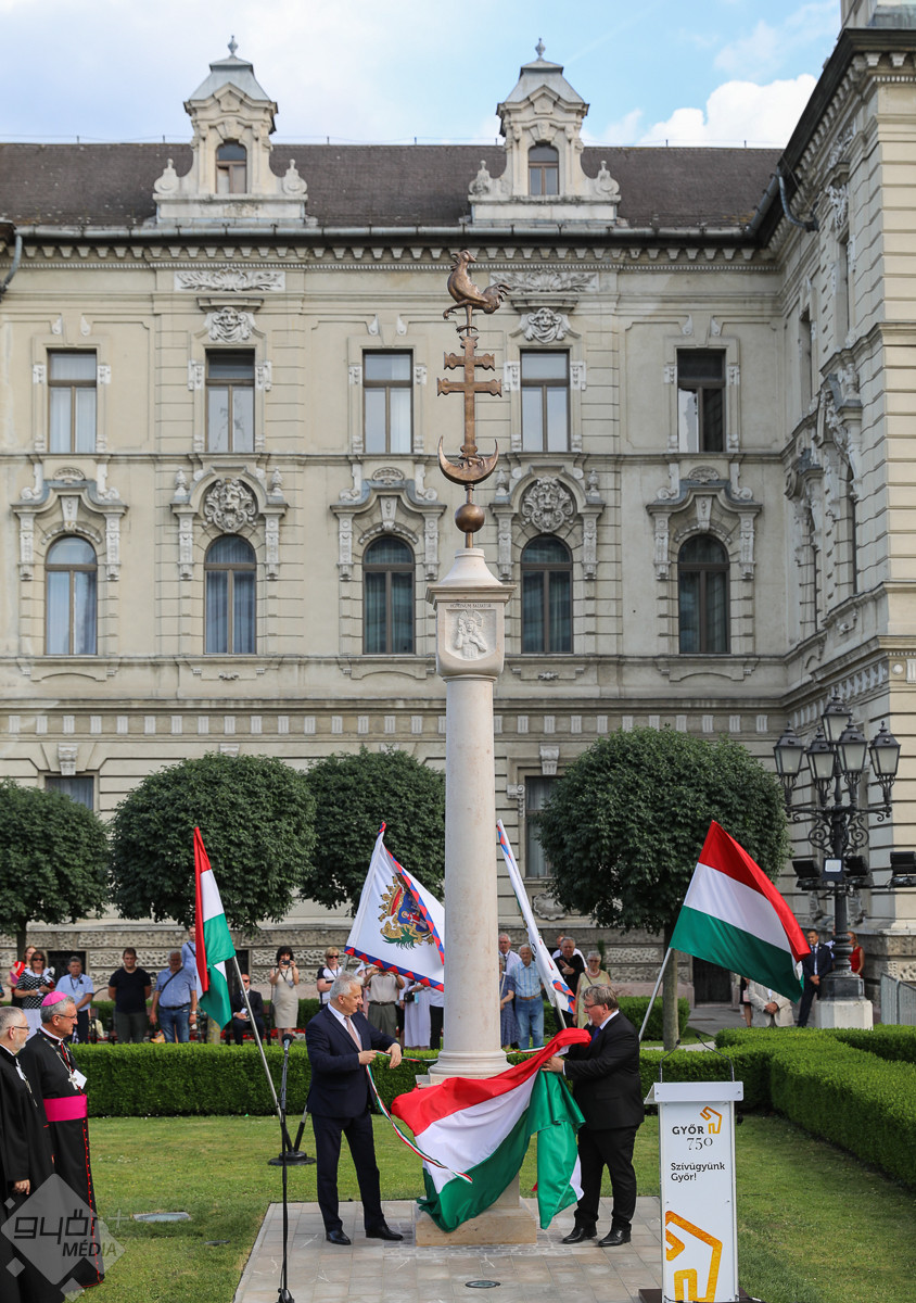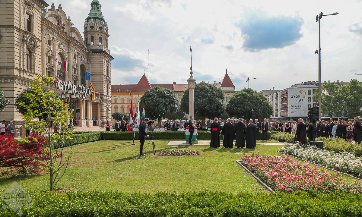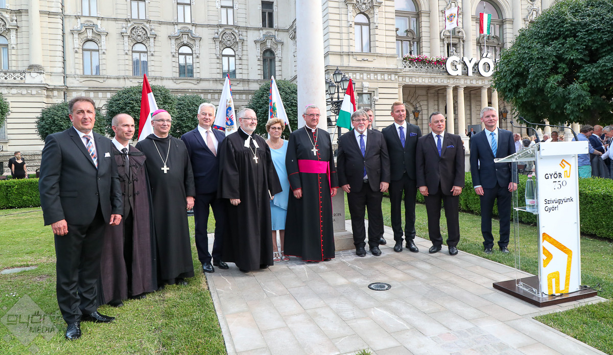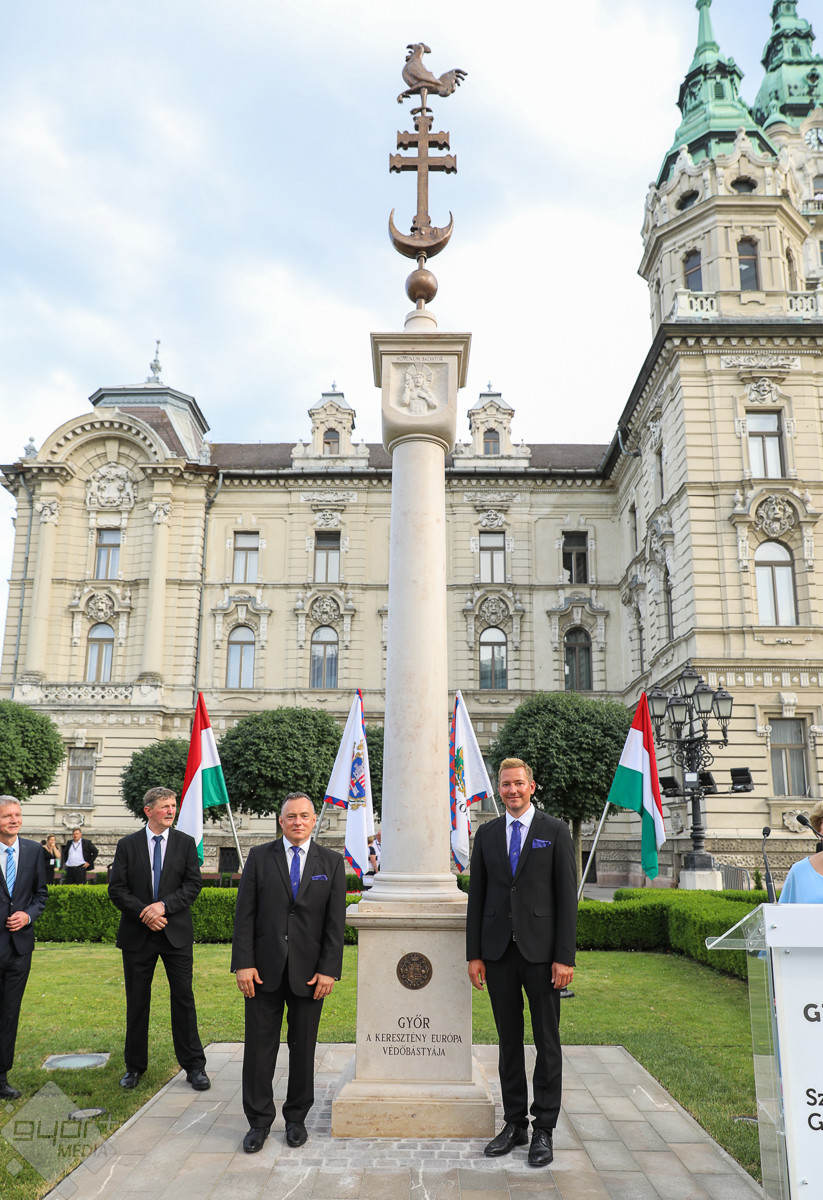 A Városháza tornyából felharsanó fanfárokkal kezdődött az avató ünnepség, majd Bede Fazekas Csaba Kossuth-díjas operaénekes és színművész énekelte el a Himnuszt. A rendezvény vendége volt dr. Semjén Zsolt miniszterelnök-helyettes, Széles Sándor kormánymegbízott, városunk országgyűlési képviselői és a szobrot felszentelő egyházak elöljárói. Eljött az eseményre Schwarzenberg herceg, a győri várat visszafoglaló egyik hadvezér leszármazottja is.