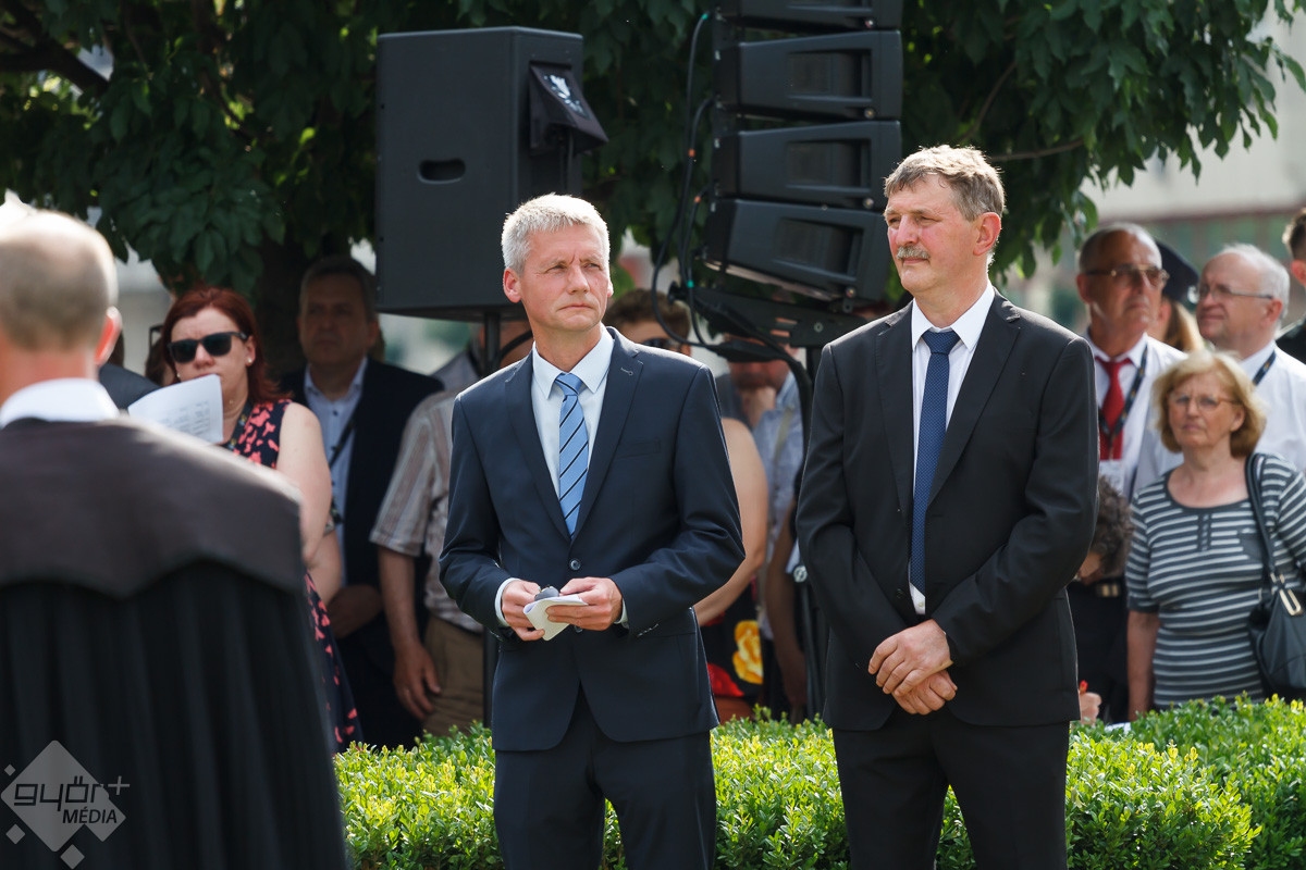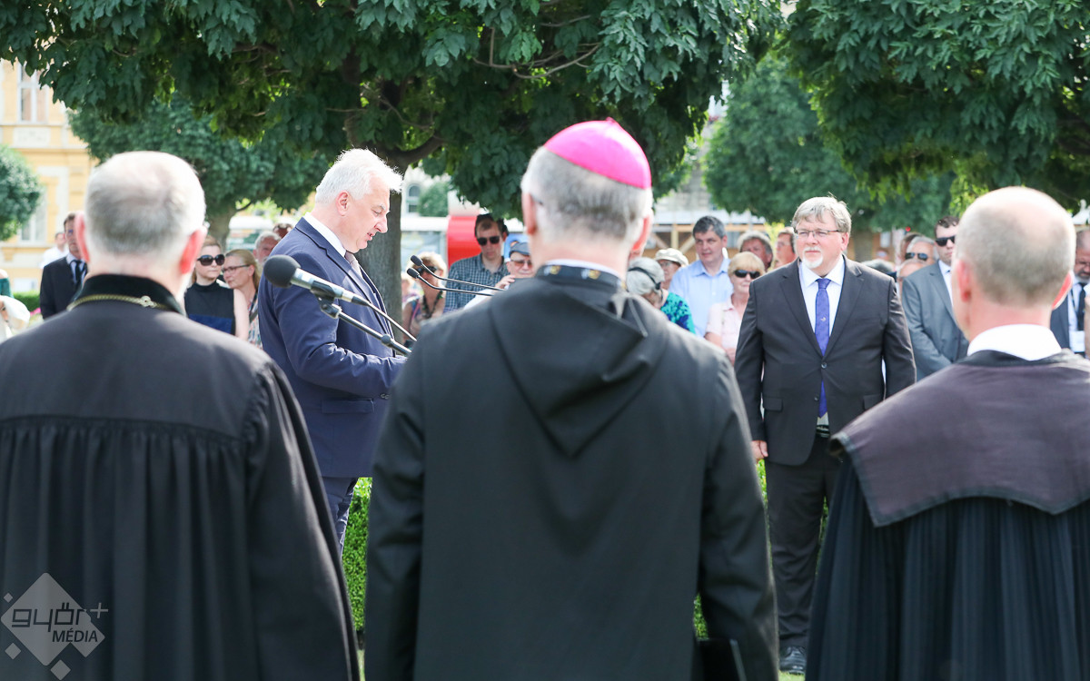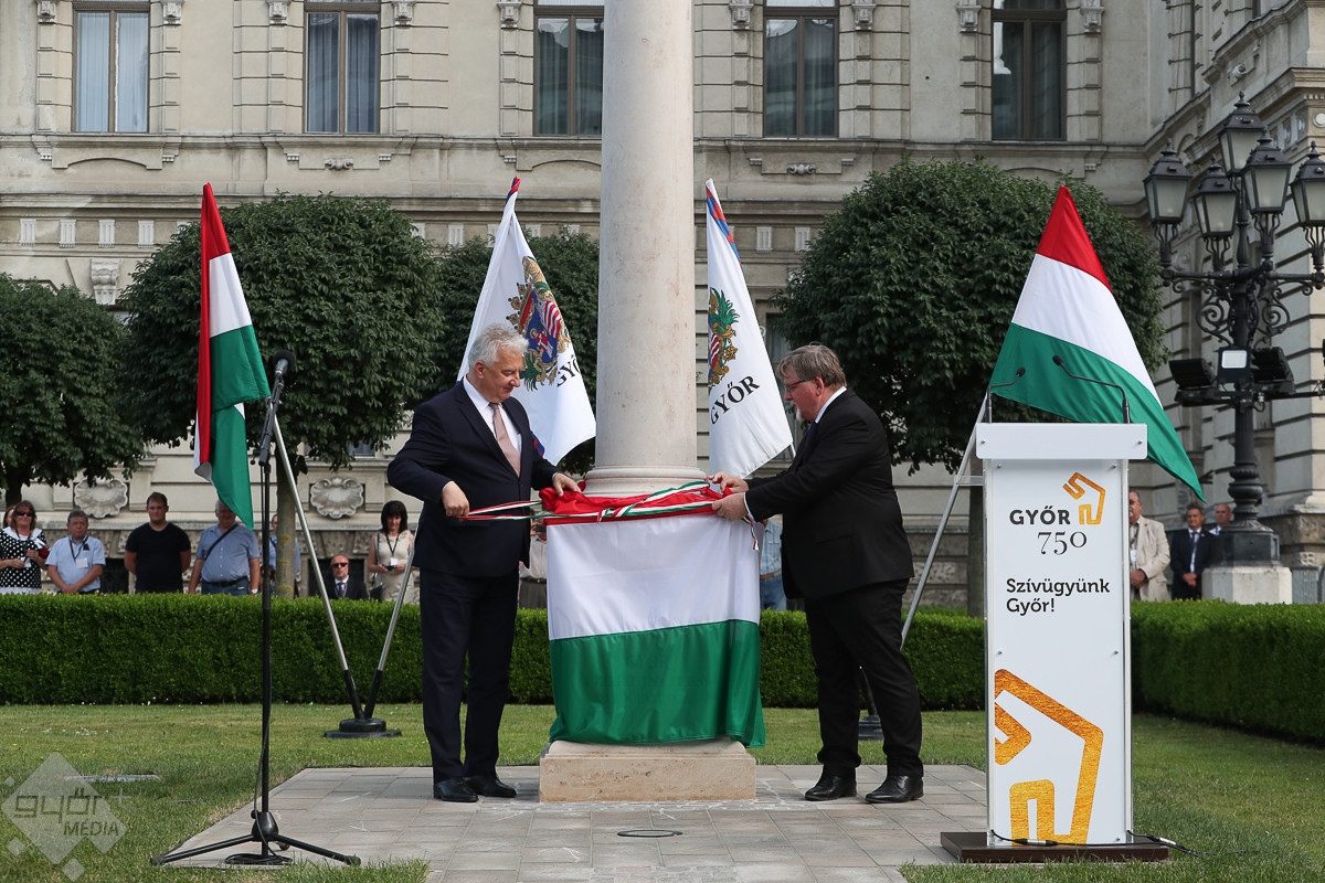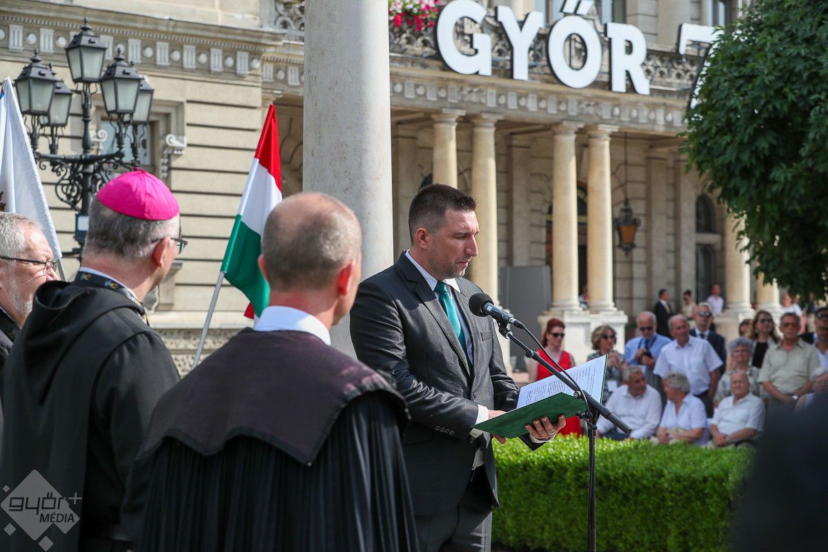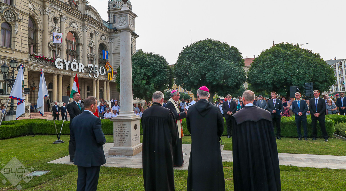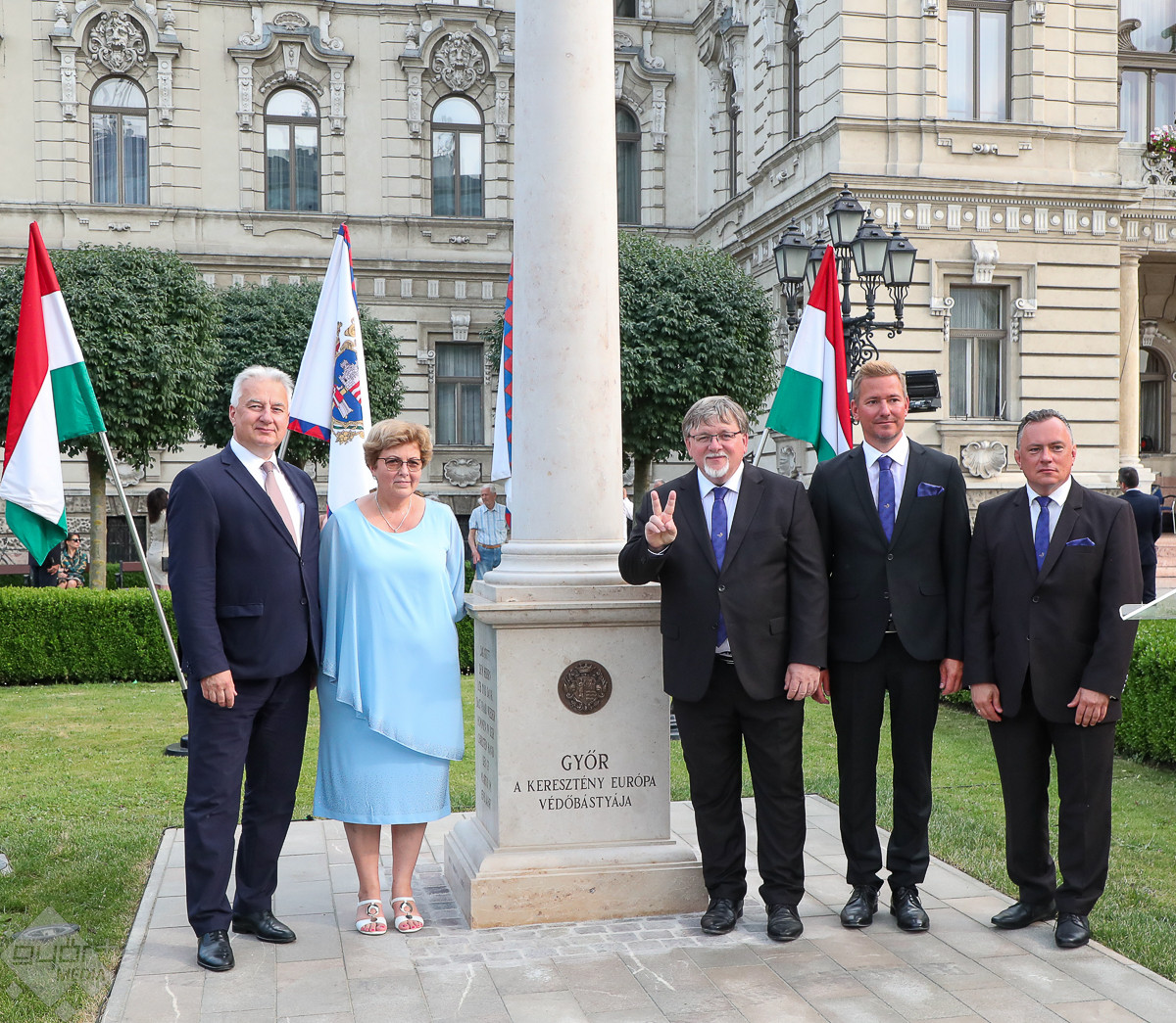 A Városháza tornyából felharsanó fanfárokkal kezdődött az avató ünnepség, majd Bede Fazekas Csaba Kossuth-díjas operaénekes és színművész énekelte el a Himnuszt. A rendezvény vendége volt dr. Semjén Zsolt miniszterelnök-helyettes, Széles Sándor kormánymegbízott, városunk országgyűlési képviselői és a szobrot felszentelő egyházak elöljárói. Eljött az eseményre Schwarzenberg herceg, a győri várat visszafoglaló egyik hadvezér leszármazottja is.