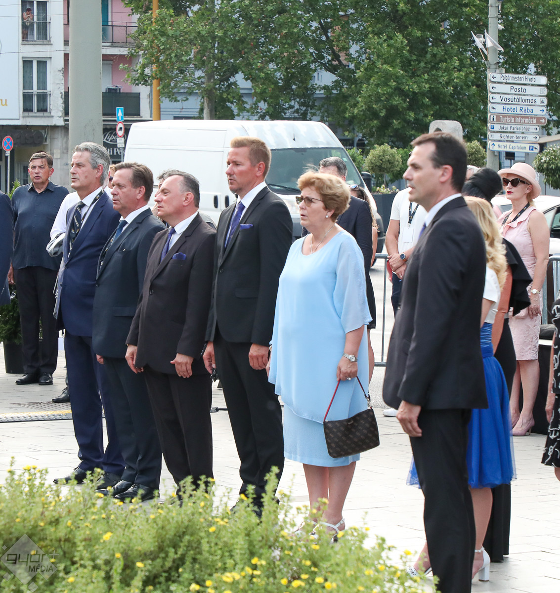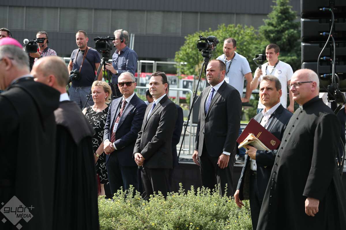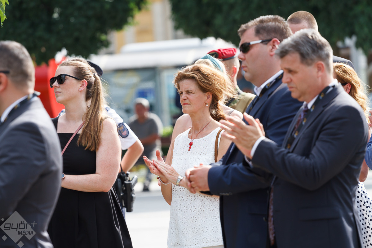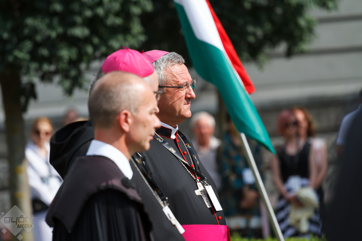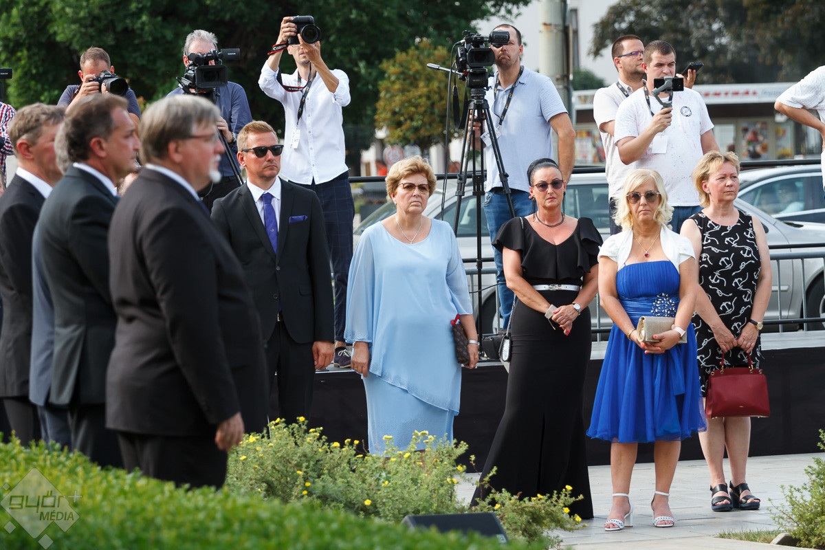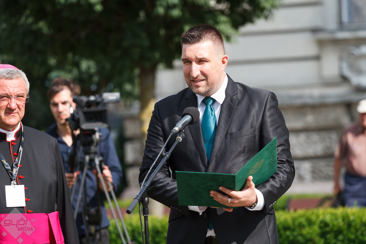 A Városháza tornyából felharsanó fanfárokkal kezdődött az avató ünnepség, majd Bede Fazekas Csaba Kossuth-díjas operaénekes és színművész énekelte el a Himnuszt. A rendezvény vendége volt dr. Semjén Zsolt miniszterelnök-helyettes, Széles Sándor kormánymegbízott, városunk országgyűlési képviselői és a szobrot felszentelő egyházak elöljárói. Eljött az eseményre Schwarzenberg herceg, a győri várat visszafoglaló egyik hadvezér leszármazottja is.