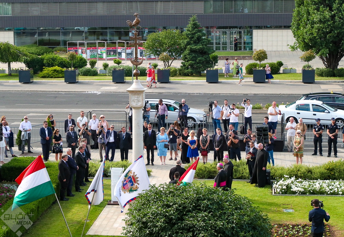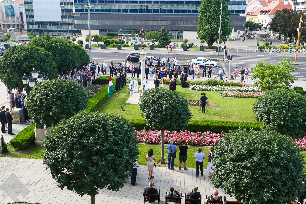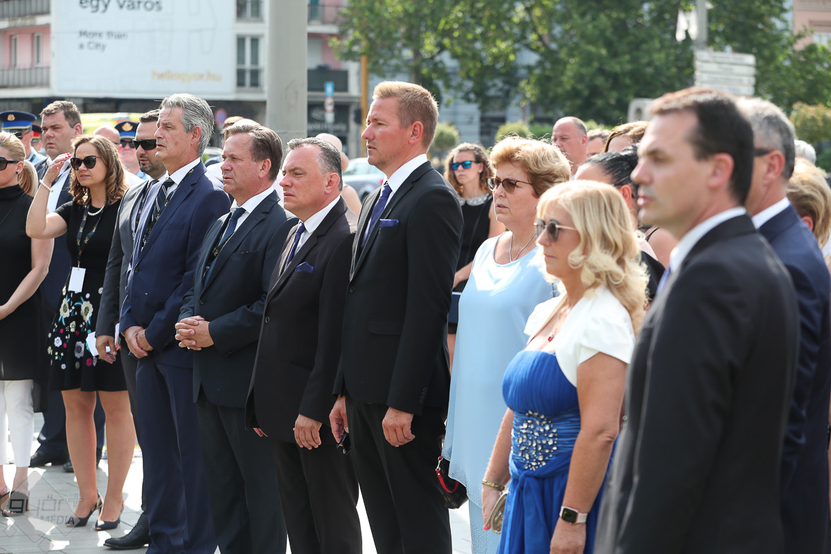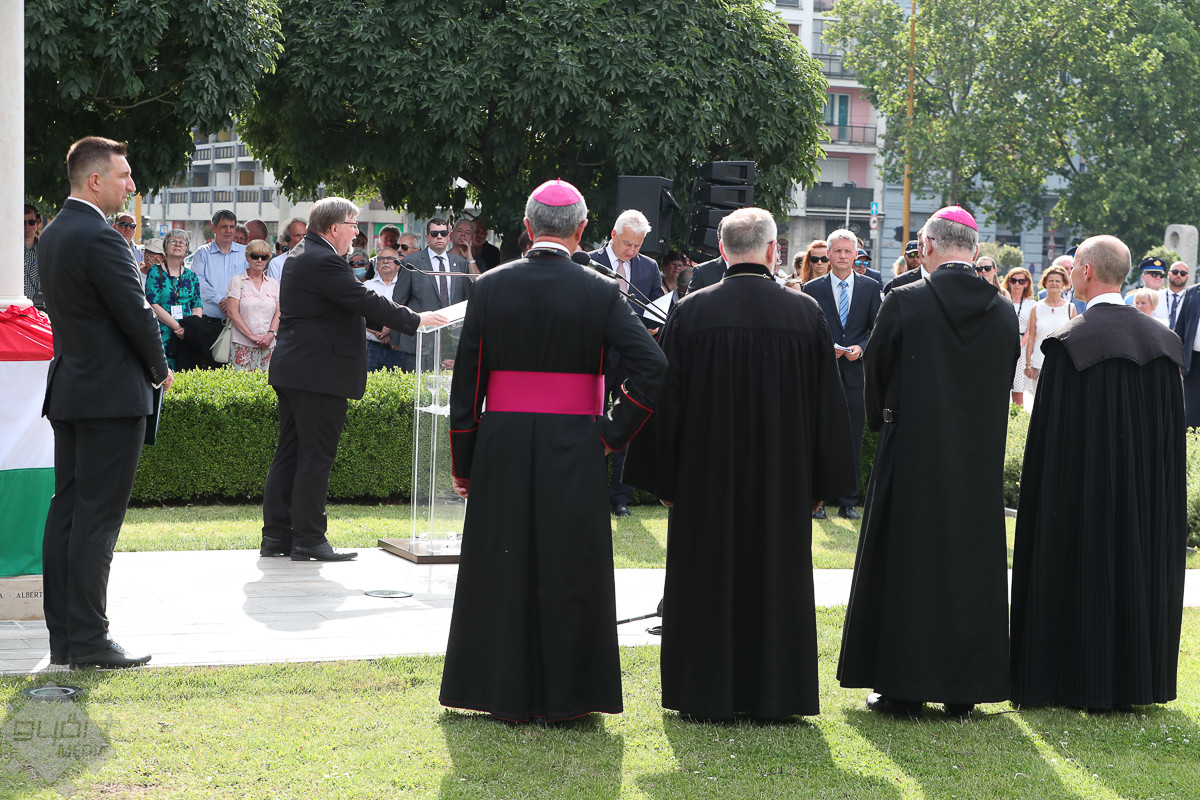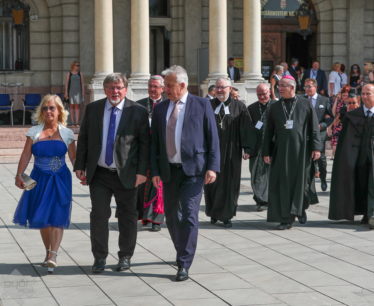 A Városháza tornyából felharsanó fanfárokkal kezdődött az avató ünnepség, majd Bede Fazekas Csaba Kossuth-díjas operaénekes és színművész énekelte el a Himnuszt. A rendezvény vendége volt dr. Semjén Zsolt miniszterelnök-helyettes, Széles Sándor kormánymegbízott, városunk országgyűlési képviselői és a szobrot felszentelő egyházak elöljárói. Eljött az eseményre Schwarzenberg herceg, a győri várat visszafoglaló egyik hadvezér leszármazottja is.