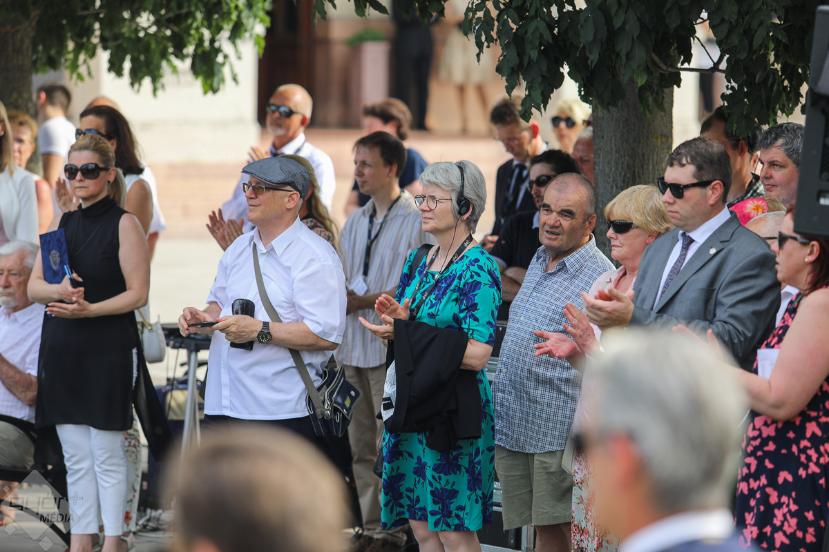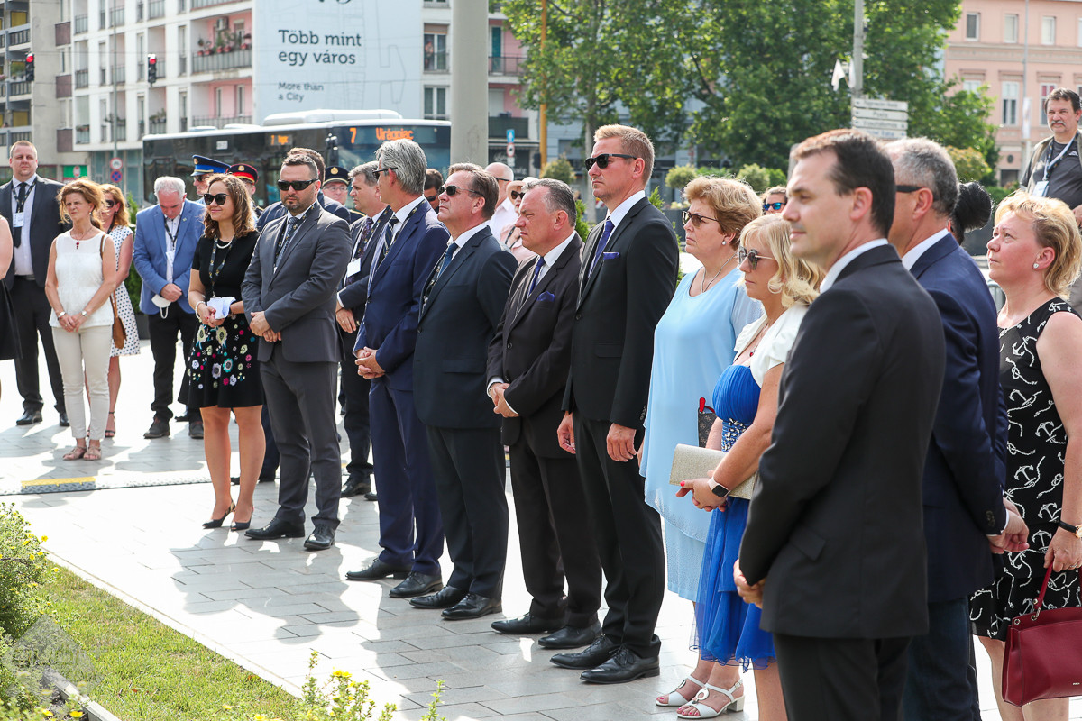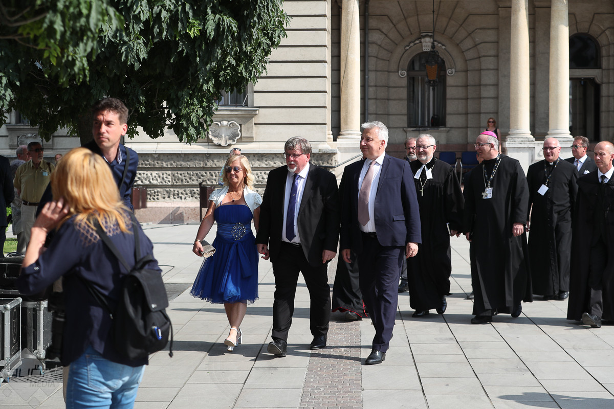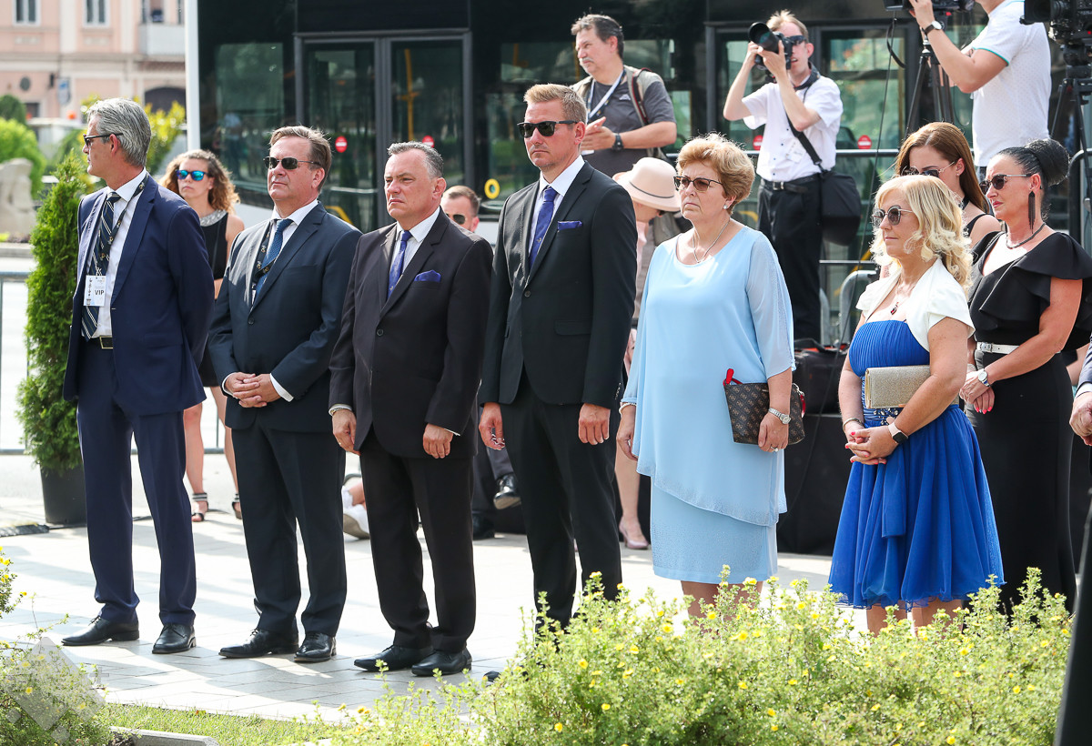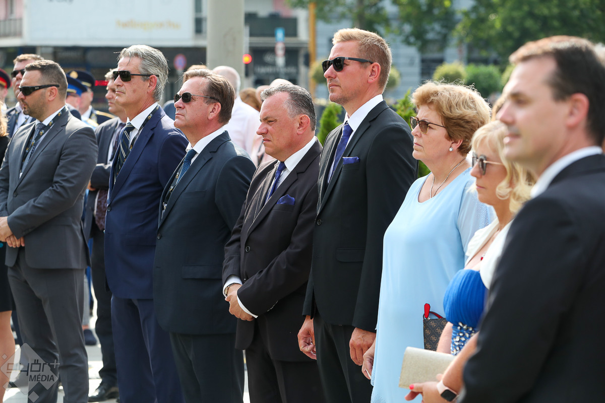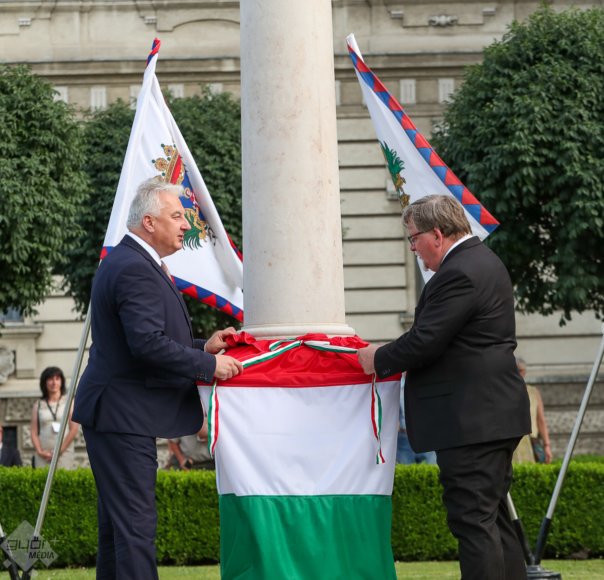 A Városháza tornyából felharsanó fanfárokkal kezdődött az avató ünnepség, majd Bede Fazekas Csaba Kossuth-díjas operaénekes és színművész énekelte el a Himnuszt. A rendezvény vendége volt dr. Semjén Zsolt miniszterelnök-helyettes, Széles Sándor kormánymegbízott, városunk országgyűlési képviselői és a szobrot felszentelő egyházak elöljárói. Eljött az eseményre Schwarzenberg herceg, a győri várat visszafoglaló egyik hadvezér leszármazottja is.
