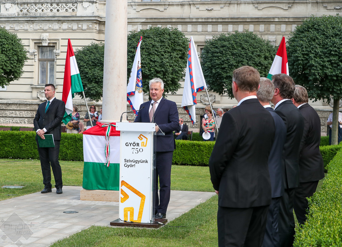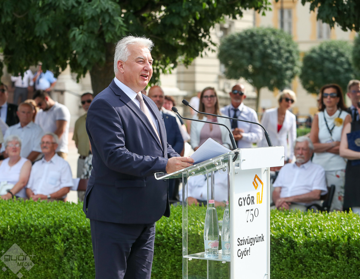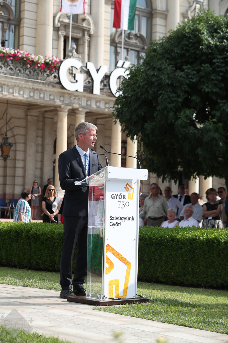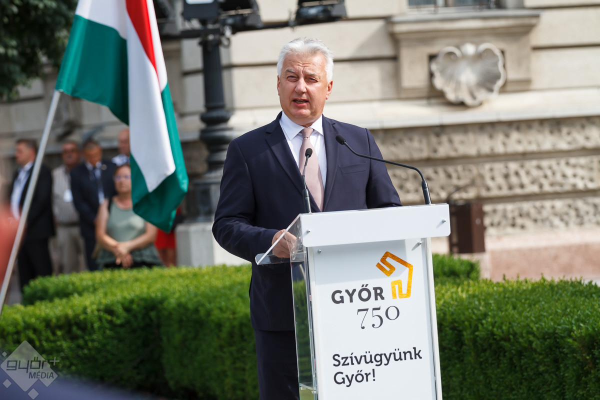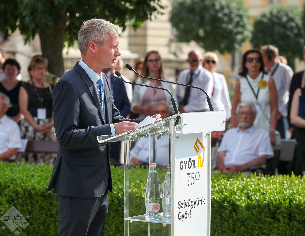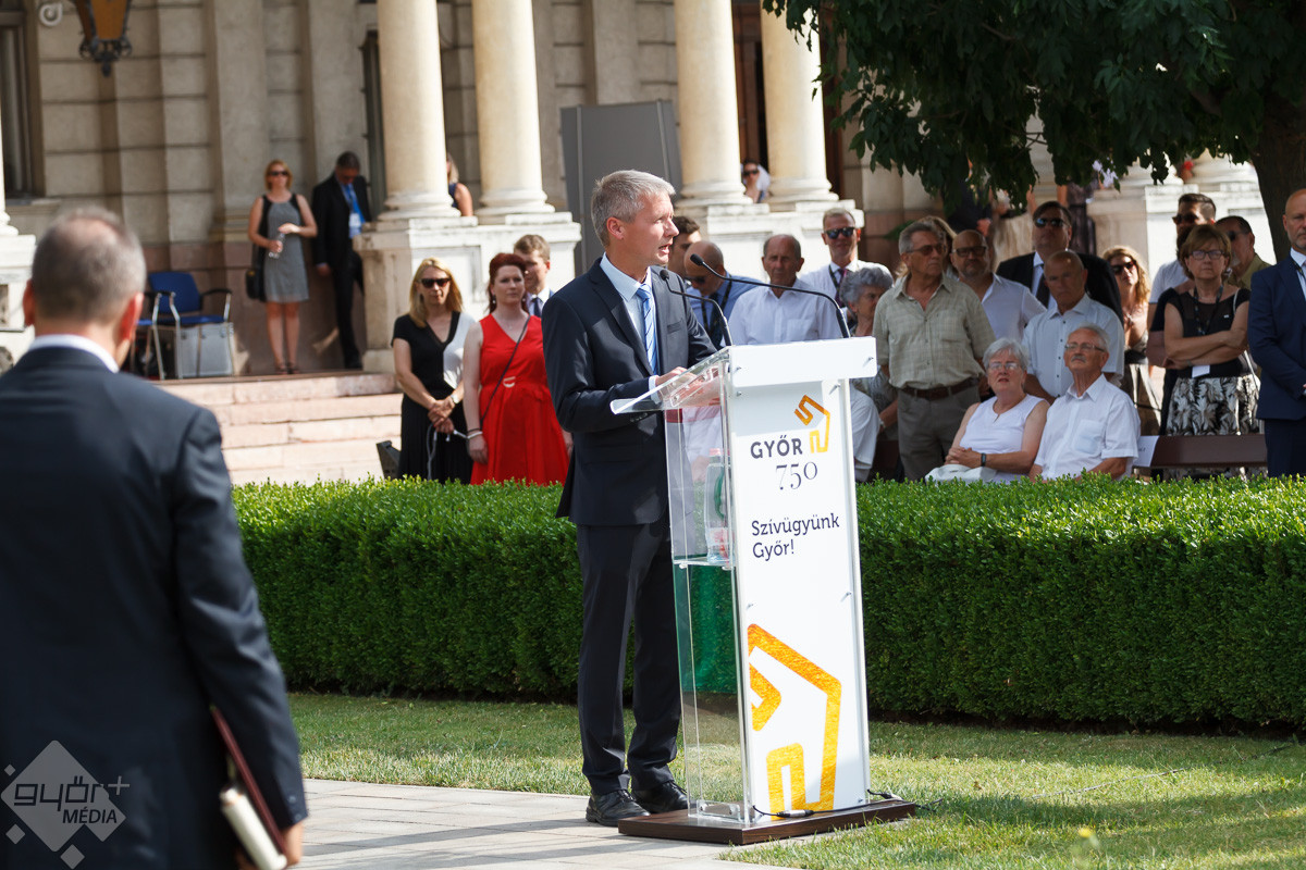 Ezt követően azt fejtette ki, hogy háromnegyed év milyen hosszú idő a történelemben: 750 évvel ezelőtt nem volt még reneszánsz, de Győr város lett. – hangoztatta. – Nem létezett még az Amerikai Egyesült Államok, de Győr már város lett. A trónon Árpádházi király ült, amikor Győr város lett. Ilyen dimenzióban gondolkodva kiderül, hogy a győriek micsoda örökség birtokában vannak.