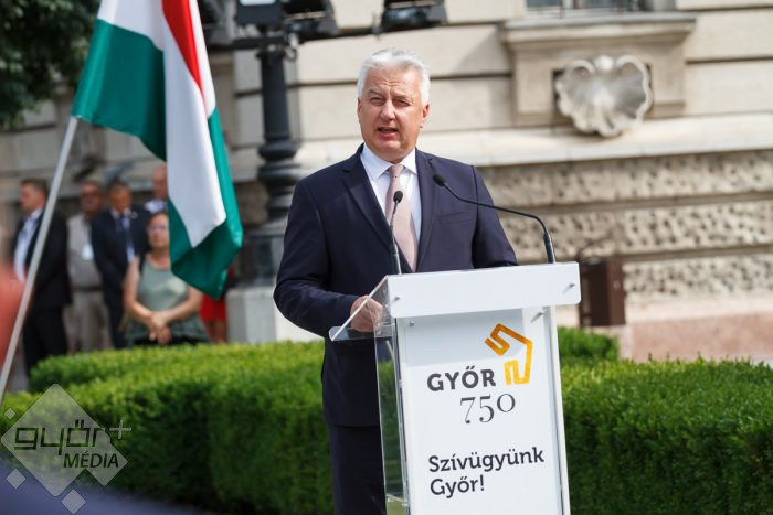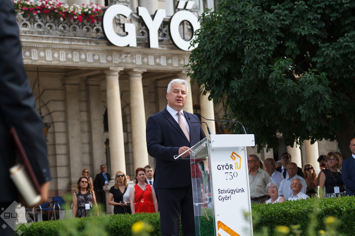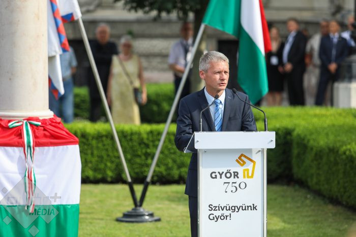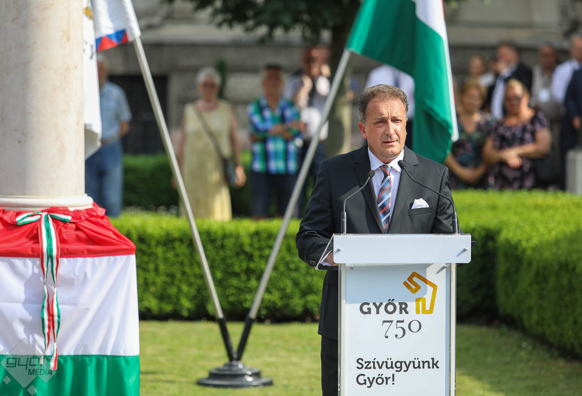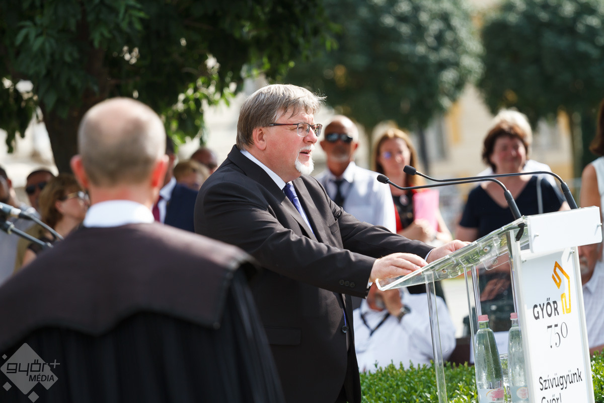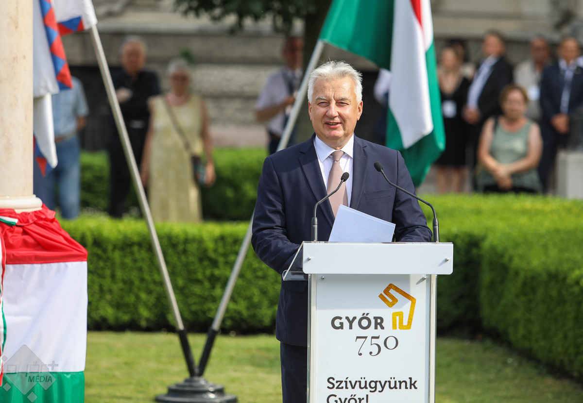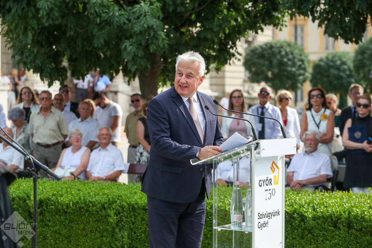 Ezt követően azt fejtette ki, hogy háromnegyed év milyen hosszú idő a történelemben: 750 évvel ezelőtt nem volt még reneszánsz, de Győr város lett. – hangoztatta. – Nem létezett még az Amerikai Egyesült Államok, de Győr már város lett. A trónon Árpádházi király ült, amikor Győr város lett. Ilyen dimenzióban gondolkodva kiderül, hogy a győriek micsoda örökség birtokában vannak.