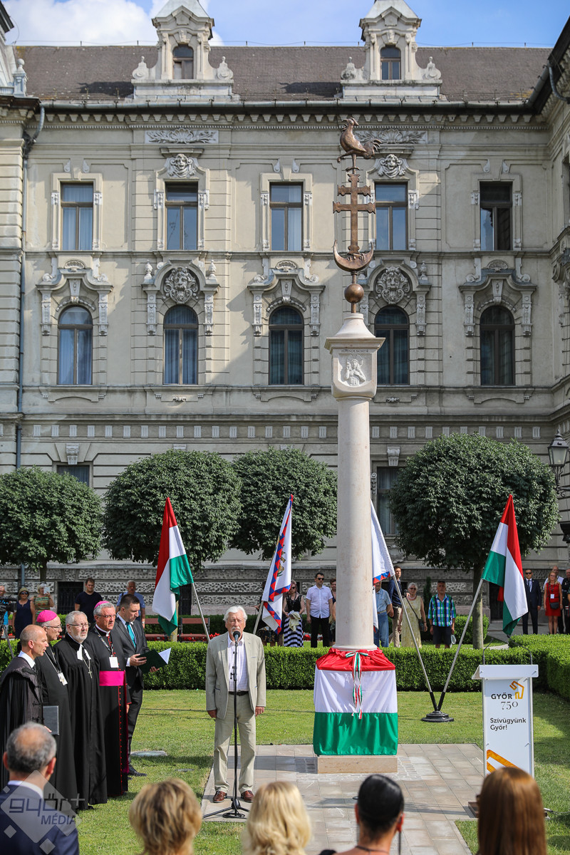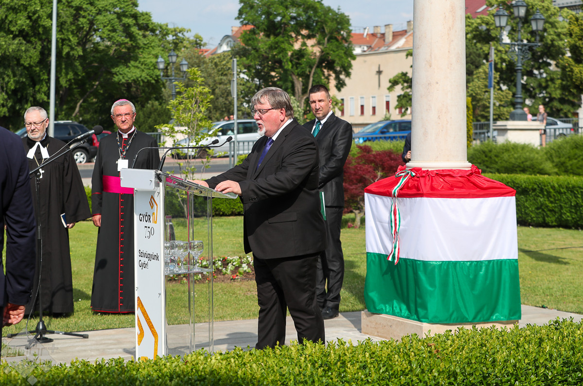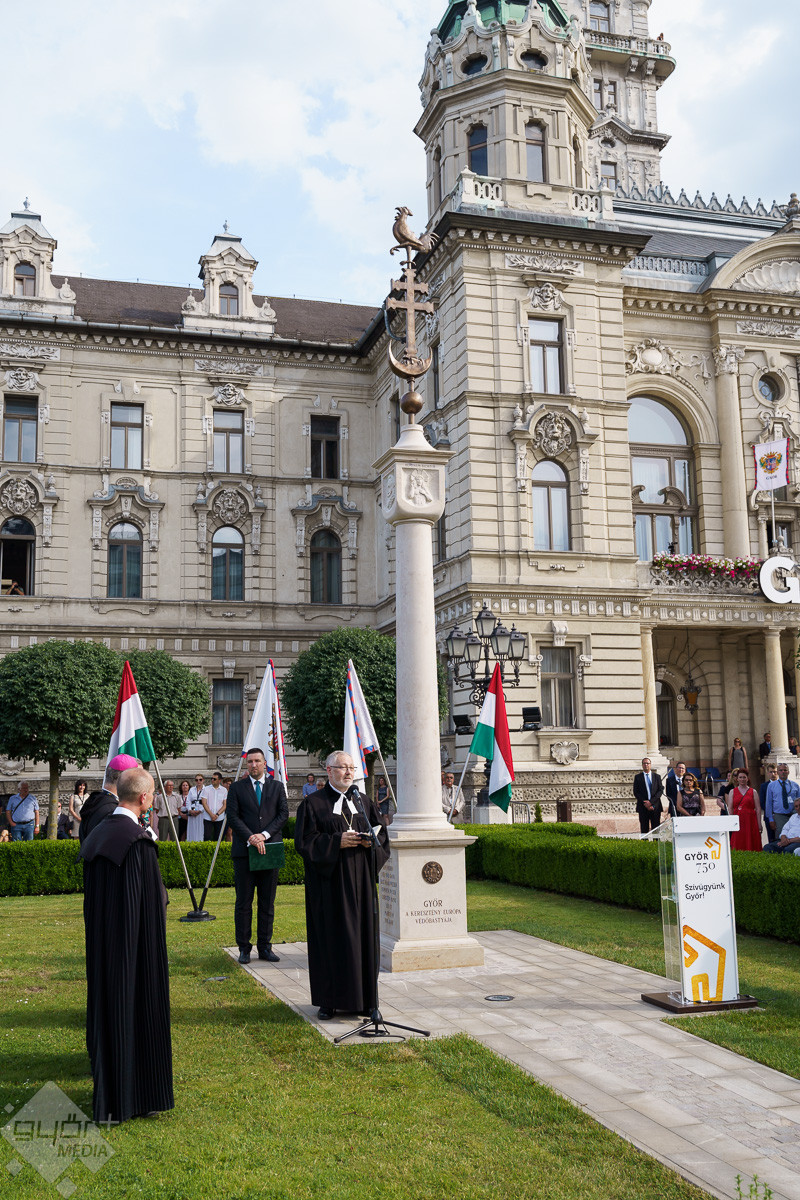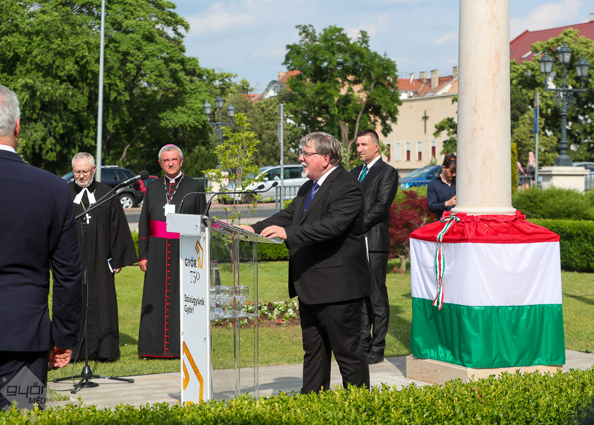 Legyünk büszkék arra, hogy győriek vagyunk, mert ide születtünk, mert munkánk, egzisztenciánk ide köt, mert ez a város, azon kívül, hogy műemlékekben Magyarország harmadik leggazdagabb városa, a mindenünk! – így fogalmazott a hálaadó emlékoszlop, a Győr Kereszt ünnepélyes felavatásán Prof. dr. Dézsi Csaba András, a város polgármestere.