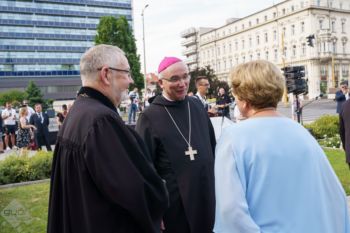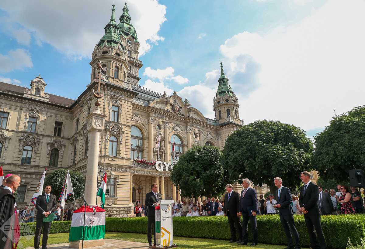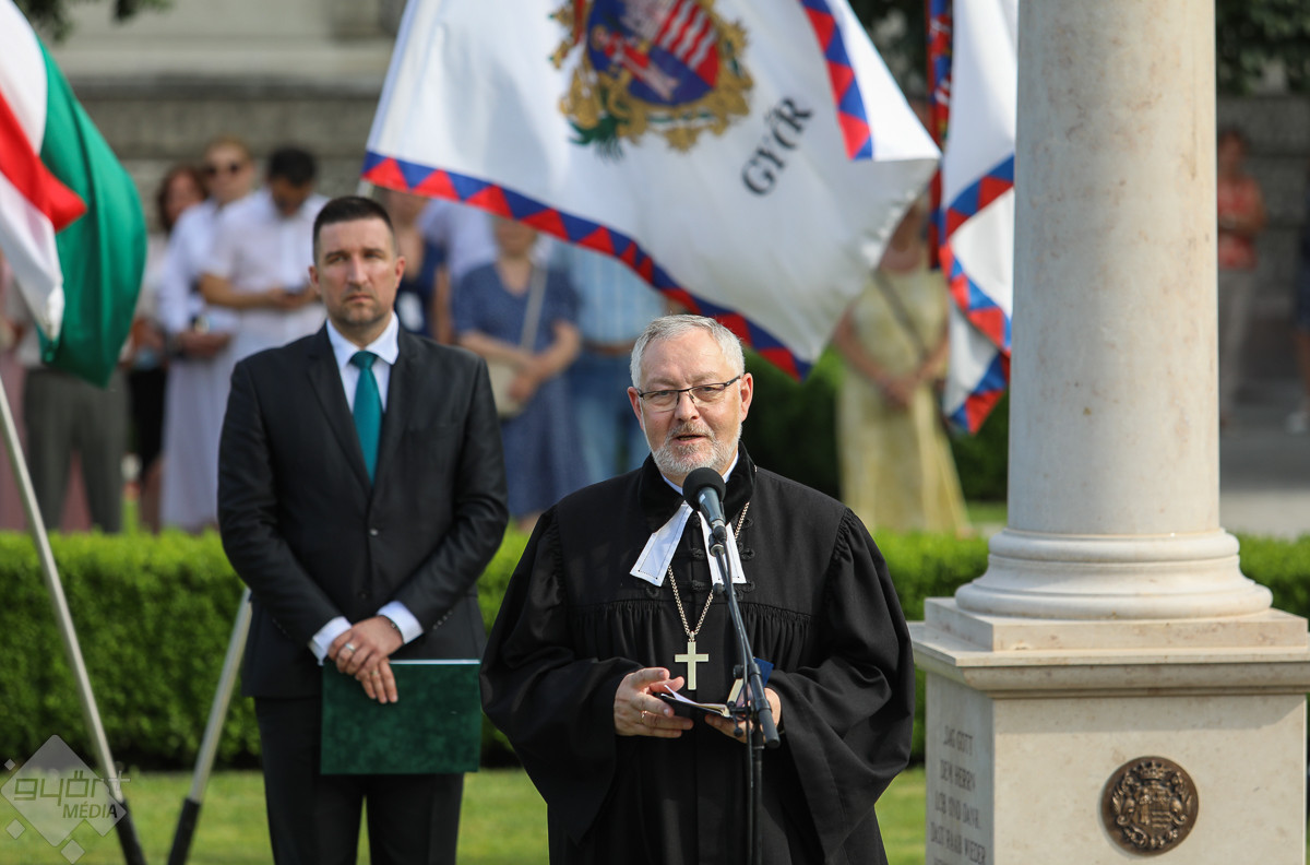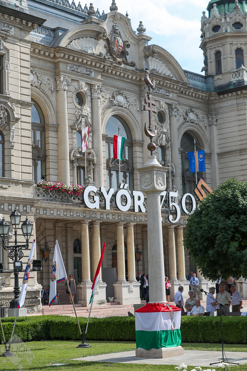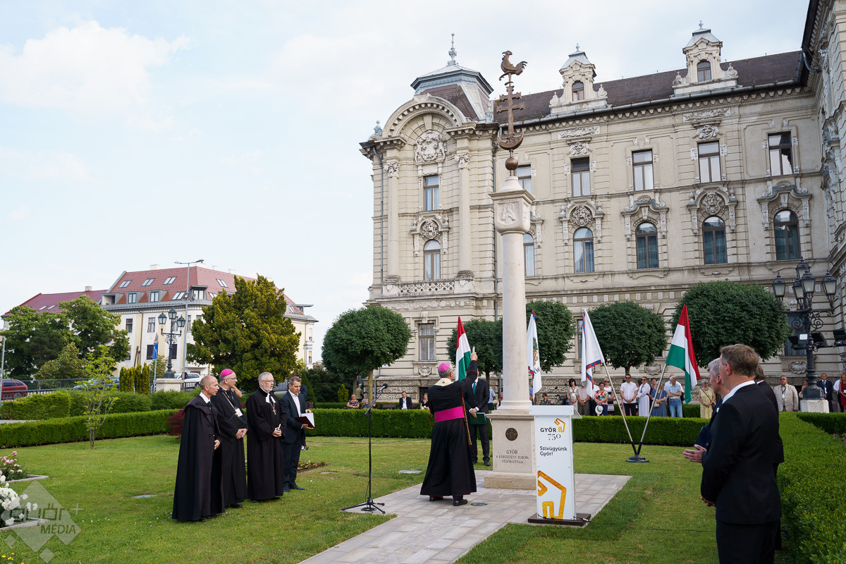 Legyünk büszkék arra, hogy győriek vagyunk, mert ide születtünk, mert munkánk, egzisztenciánk ide köt, mert ez a város, azon kívül, hogy műemlékekben Magyarország harmadik leggazdagabb városa, a mindenünk! – így fogalmazott a hálaadó emlékoszlop, a Győr Kereszt ünnepélyes felavatásán Prof. dr. Dézsi Csaba András, a város polgármestere.