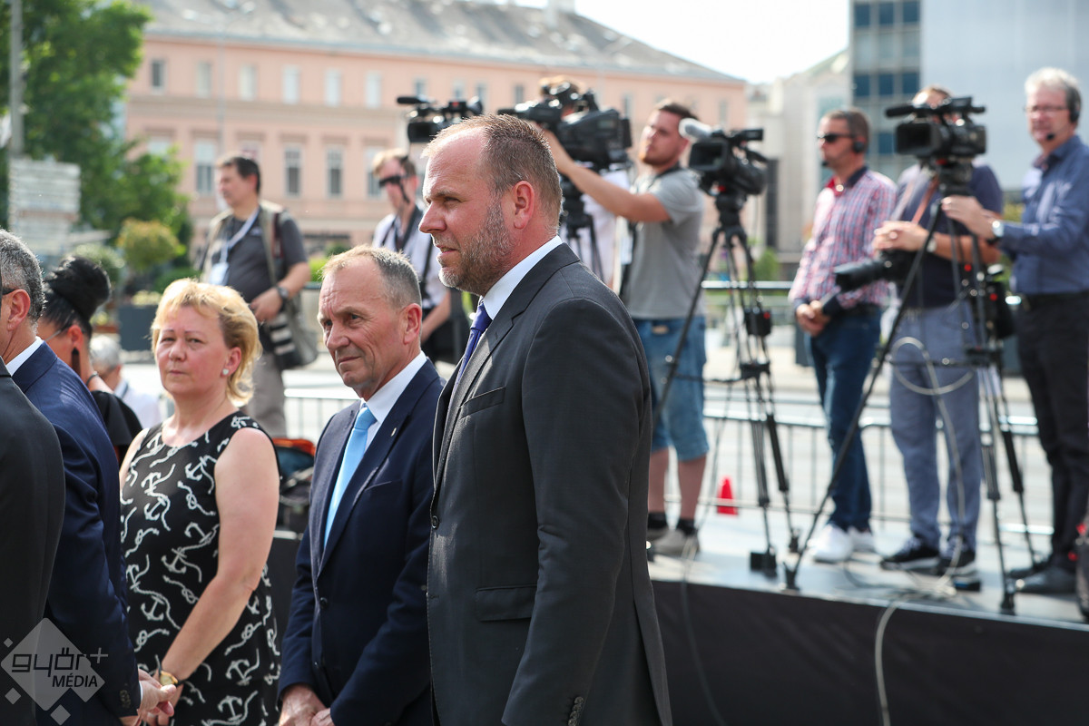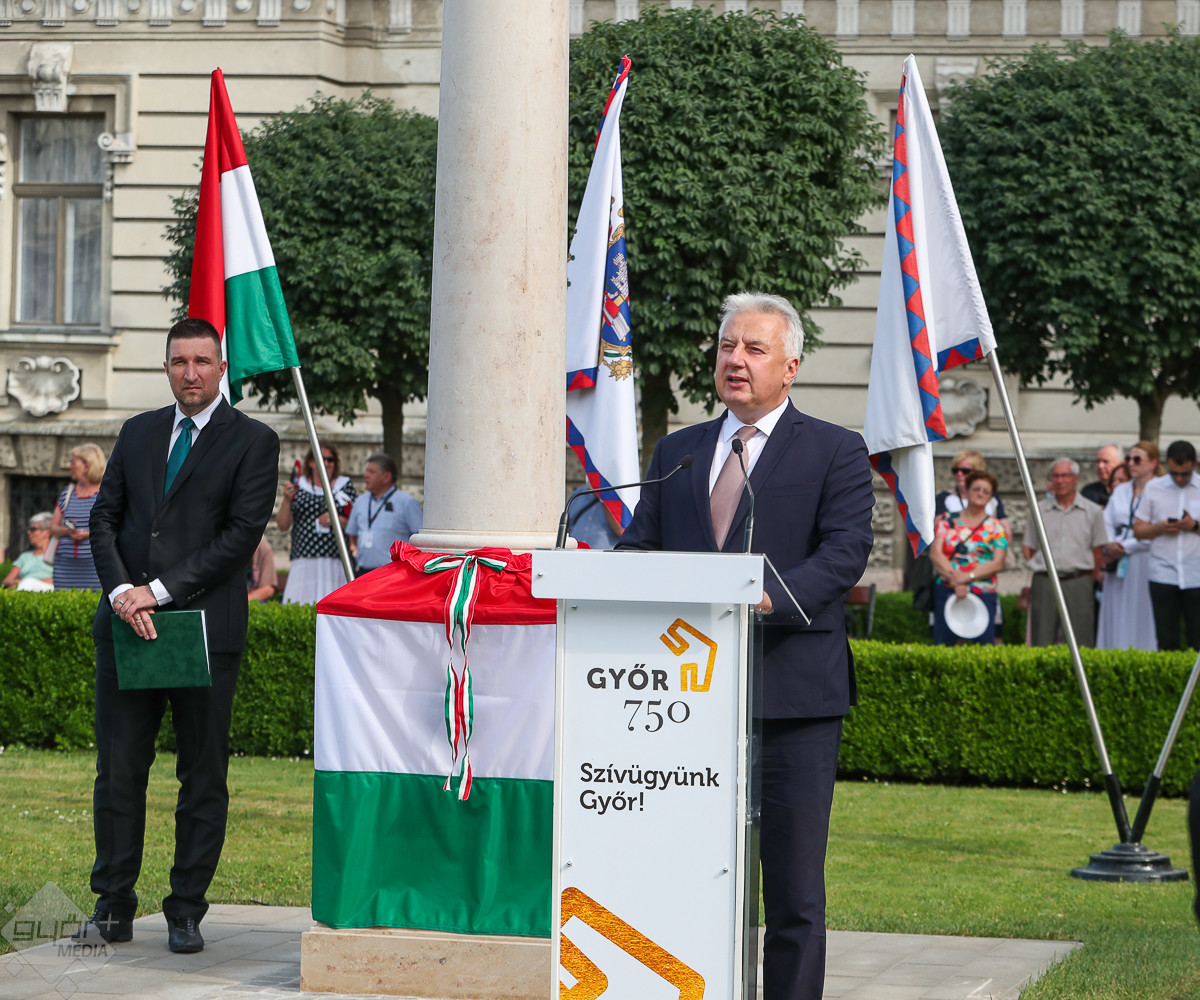 Kara Ákos országgyűlési képviselő megköszönte Győr polgármesterének, hogy a jövőnek szóló emlékművet állított, polgármesterként összekötötte Győr 750 éves múltját és városunk jövőjét.