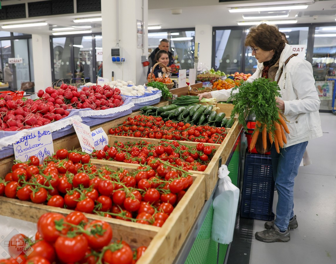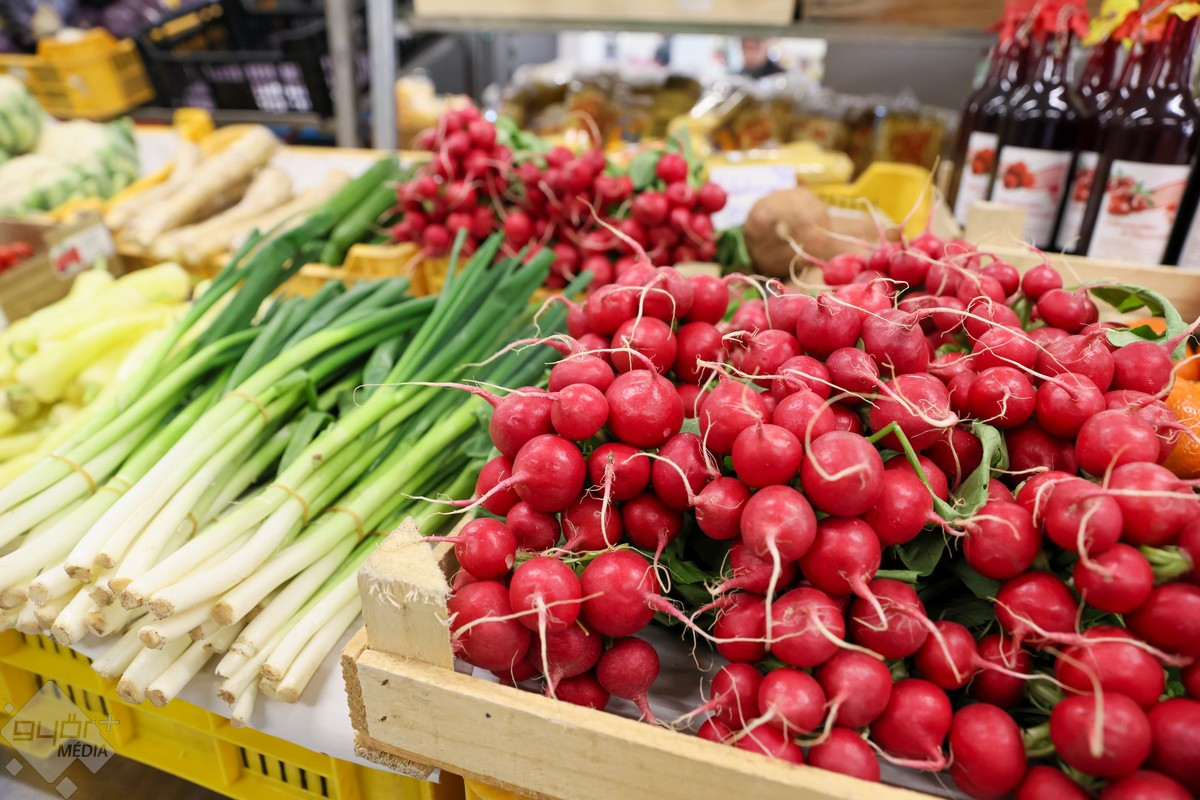 A vásárcsarnokban érezhetően egyre nagyobb a forgalom az ünnep közeledtével. Természetesen bőséges a kínálat a sonkaféleségekből, mindenki megtalálhatja az ízlésének és a pénztárcájának megfelelő húsvéti asztalra valót. Bőven van már újhagyma, retek, torma, paprika és paradicsom is, és friss tojásból is nagy a választék.