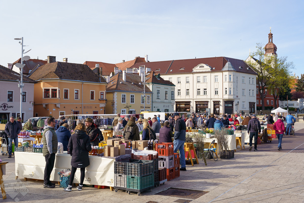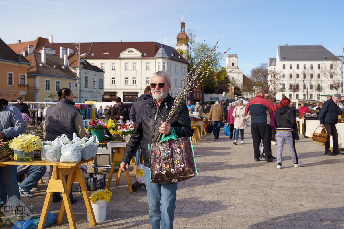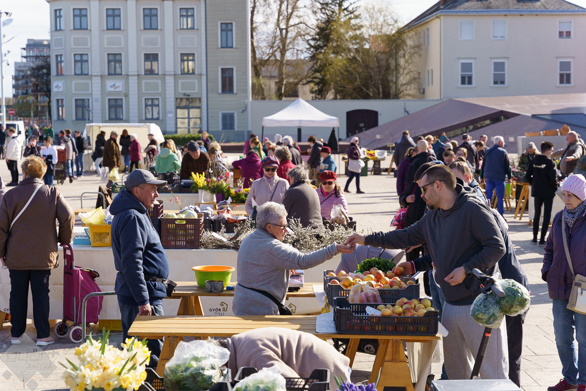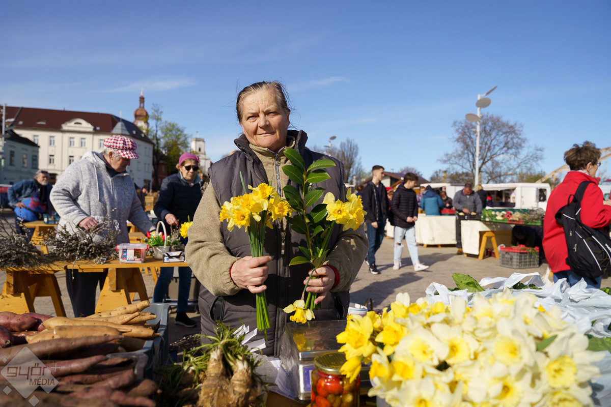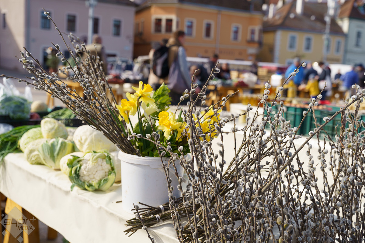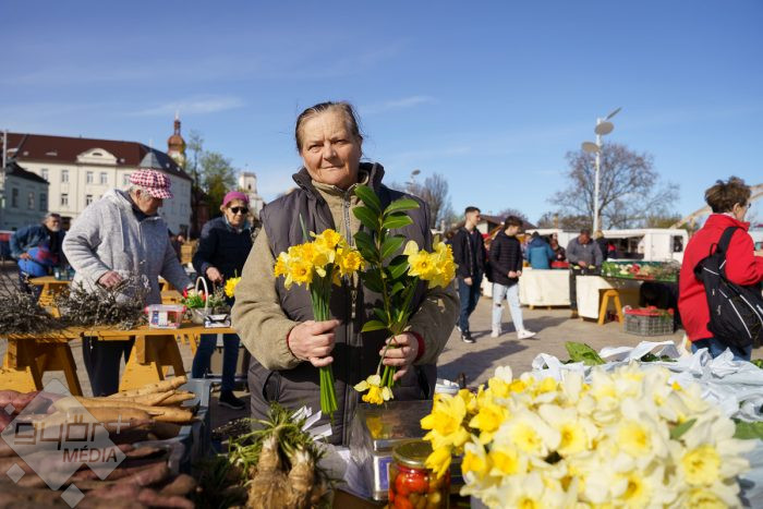 Kicsit hűvös, de napsütéses idő várta szombaton reggel a belvárosi piac látogatóit, árusait. Talán az ünnep közeledtének tudható be, hogy mindenki, mosolygós, kedves volt, elbeszélgettek vevők és termelők. Húsvétra készültek már az árusok, így tojásból nem volt hiány, melynek darabját 80-100 forintért kínálták. A tavaszi friss zöldségek, a retek (300-400 forint csomója) az újhagyma (300-400 forint csomója), a medvehagyma (350-550 forint csomója), a spenót, a sóska (700-800 forint) mellett kínáltak gombát, tavalyi krumplit, vöröshagymát, leveszöldséget. Almából is bőséges volt a felhozatal 300-600 közötti áron mérték kilóját. Mint minden szombaton ezúttal is vásárolhattunk mézet, szörpöt, sőt még bort is. Házias ízű füstölt áruk – sonka, kolbász, szalonna, – valamint sajtféleségek közül is válogathatott az, aki kilátogatott a piacra.