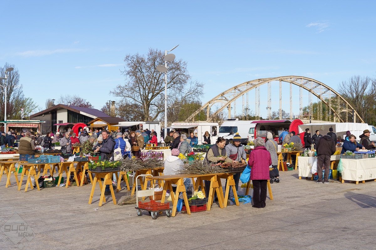 Harsogó színű piros retek, medvehagyma, spenót, pompás sárga, lila, kék virágok, beszélgető, kedves emberek - ez jellemezte szombaton reggel a Dunakapu téri piacot, ahol természetesen már a húsvétra készültek.