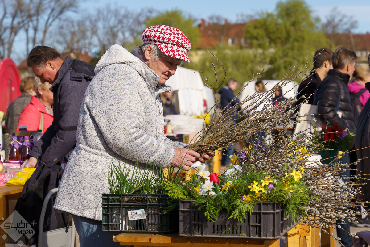 A kert tavaszi virágait is kínálták az árusok, nárciszt, tulipánt, jácintot és virágzó ágakat. Aki pedig kiültetni szeretné őket, az is keresgélhetett kedvére a színes árvácskák, gombvirágok, százszorszépek, muskátlik és megannyi más növény között. Húsvéti kézműves díszeket is kínáltak, tojásfát, festett tojásokat, horgolt nyuszit, báránykát, ünnepi motívumos terítőt.