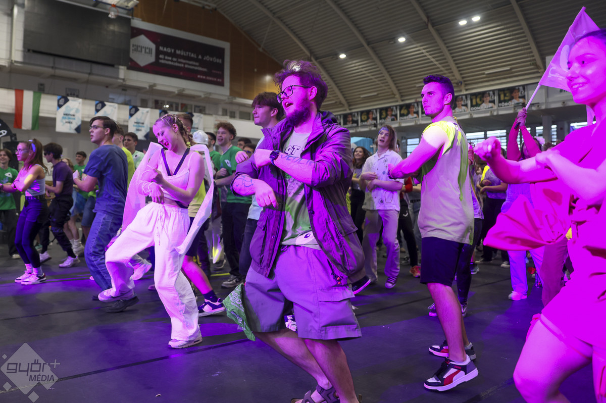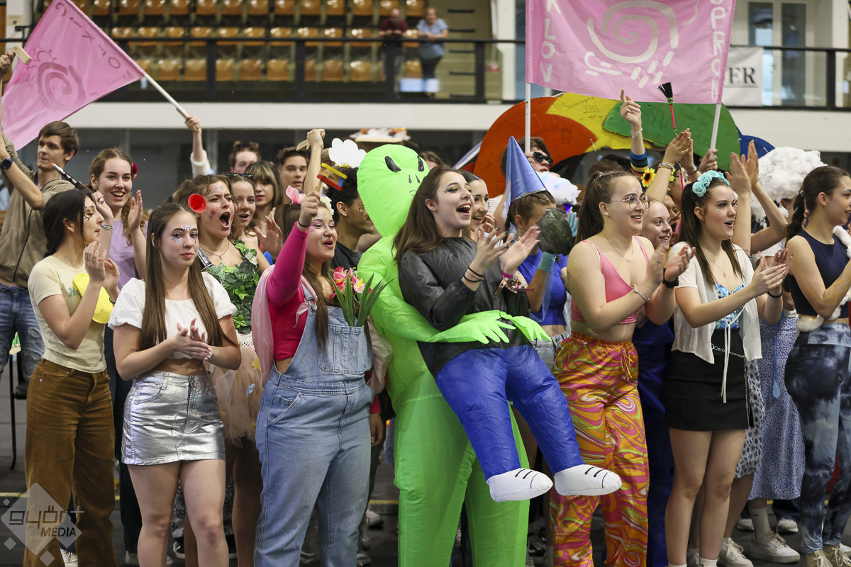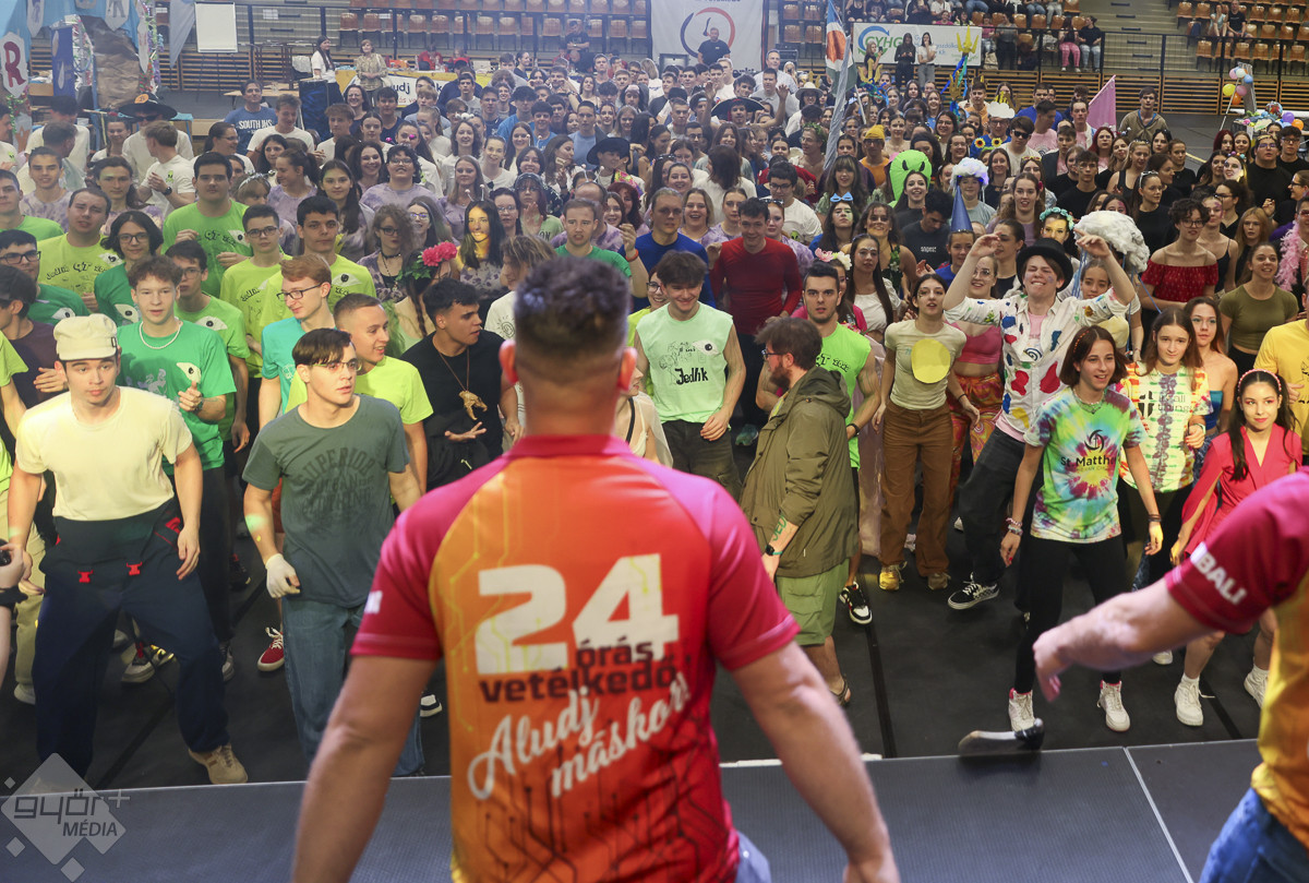 Új helyszínen, az Egyetemi Csarnokban zajlik a rendezvény. Örömteli meglepetés volt számomra, hogy több év kihagyás után annyian eljöttek, hogy megtelt a csarnok. Tíz csapat van jelen, kilenc győri és vendégként egy soproni. Köszönhetően a remek szervezői munkának, a hangulat már most fantasztikus. Bízom benne, hogy jövőre is meg tudjuk szervezni a vetélkedőt” – mondta Boncsarovszky Péter.