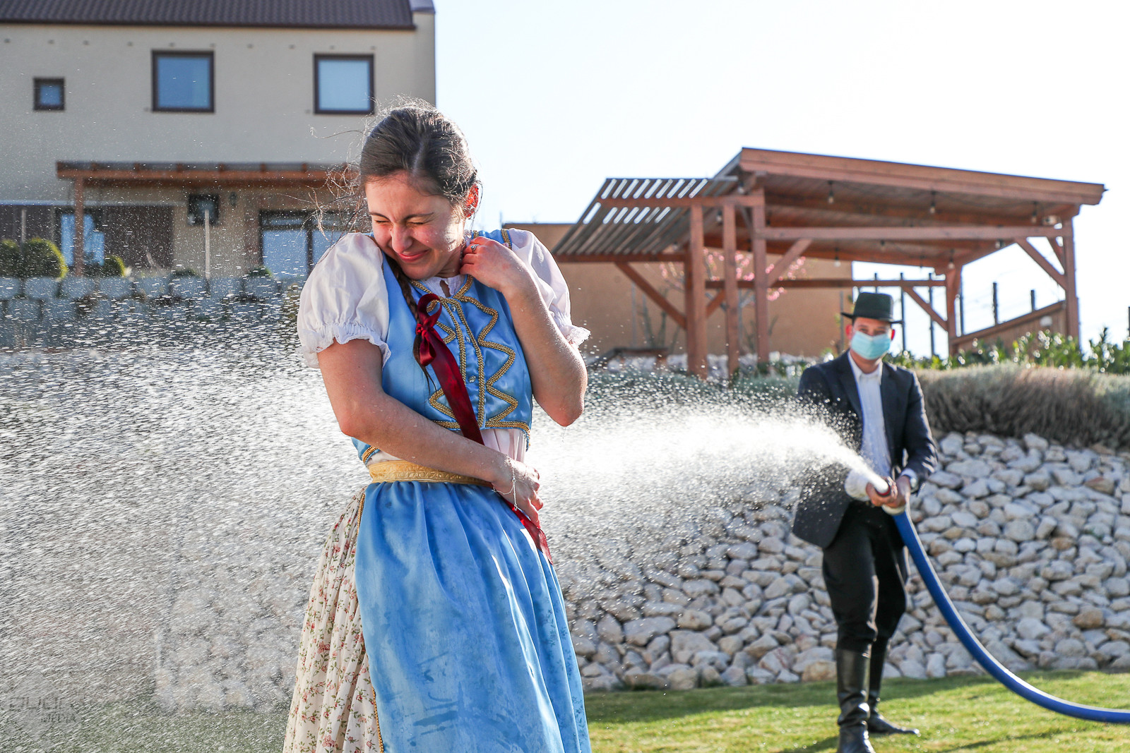 A 2021-es húsvéthétfőn az idő annak ellenére is hűvös, hogy a Nap szépen süt, s bizony a szél is kellemetlenül fúj. Na persze ez nem szegte kedvét a legényeknek, akik ráadásul a Covid-19 járvány miatt elrendelt szabályokat is betartották, csakúgy ahogy a lányok. Különös húsvéthétfő ez az idei, az egyszer biztos.