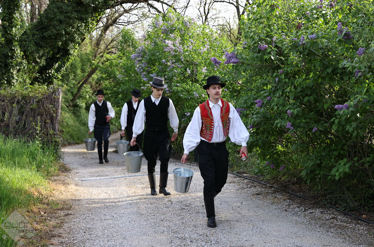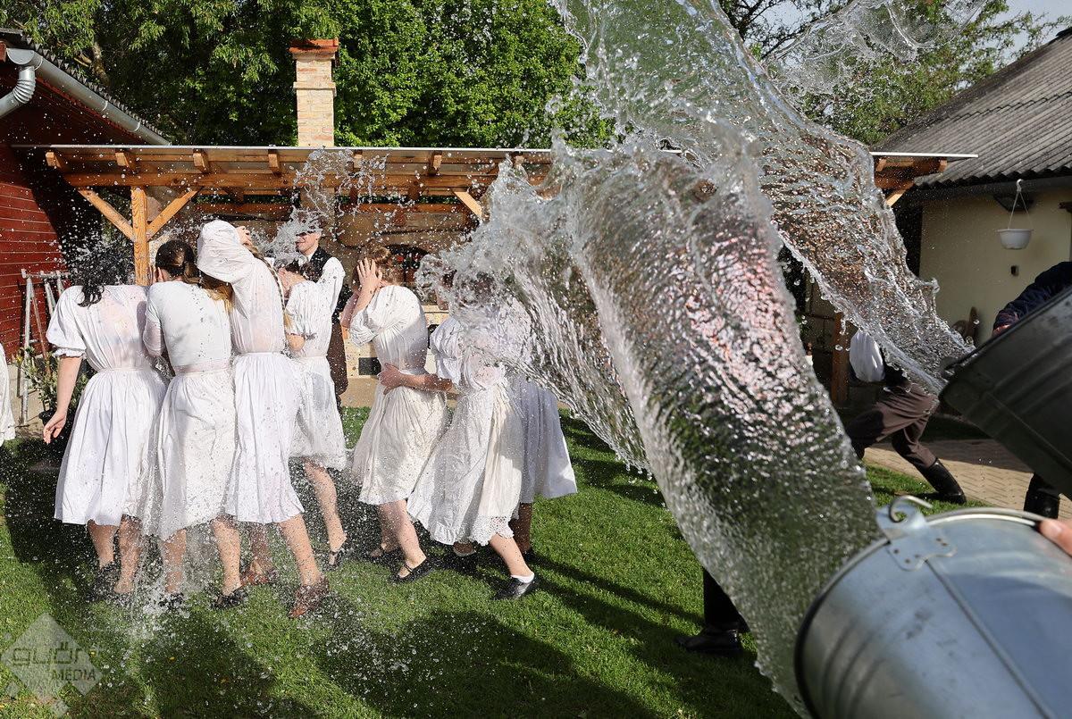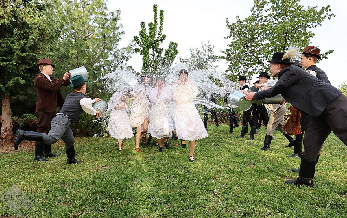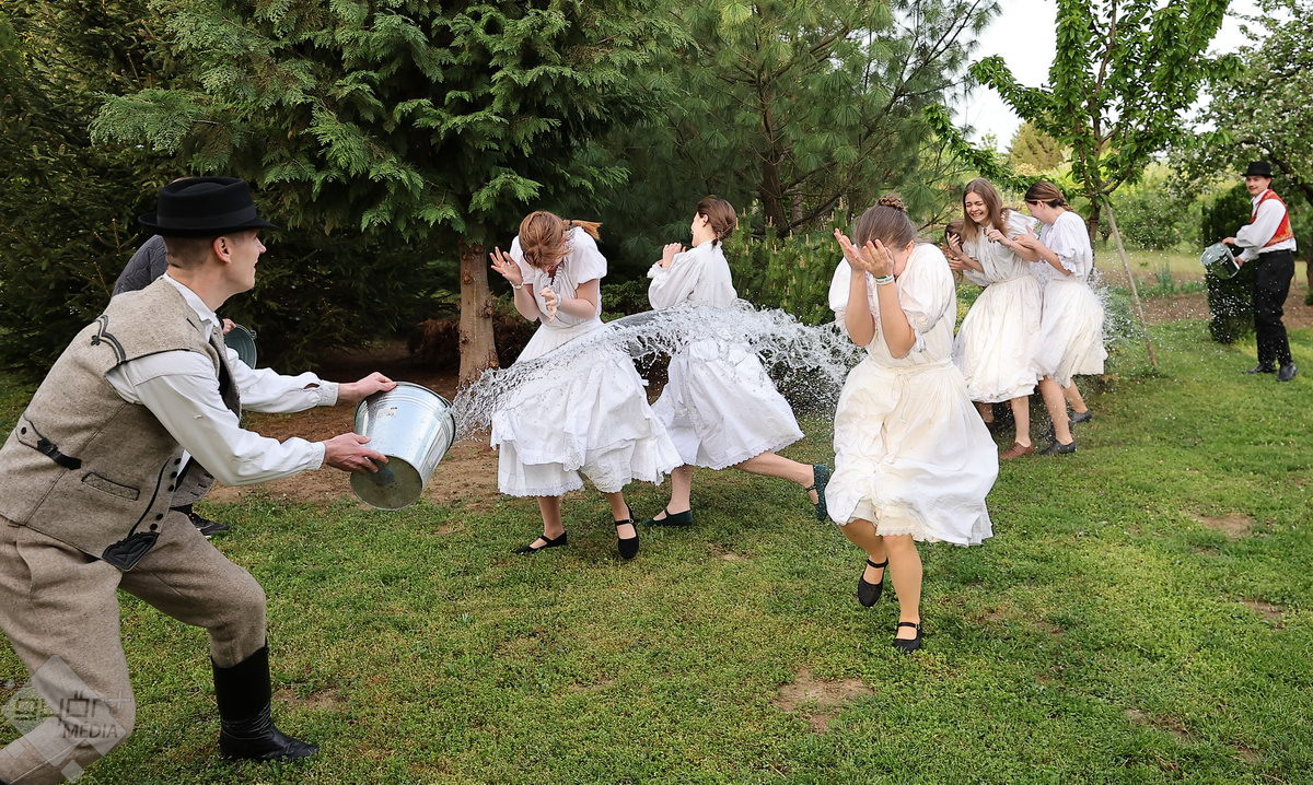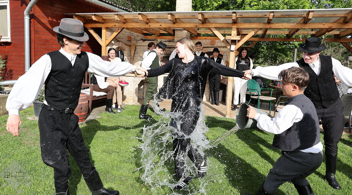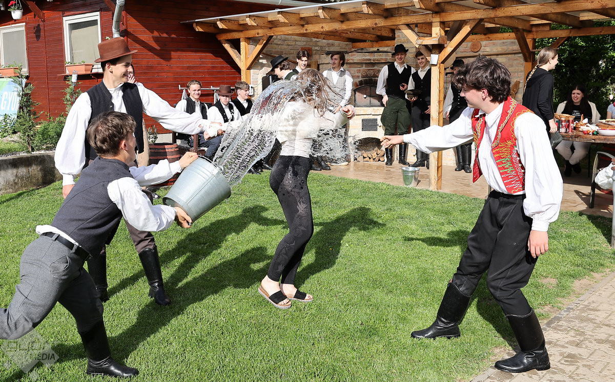 Ahogyan azt illik, húsvéthétfő reggelén először a lányos házhoz mentek a Csobolyó Néptáncegyüttes legényei, majd egy vödör vízzel gondoskodtak arról, hogy az eladósorban lévők ne hervadjanak el.