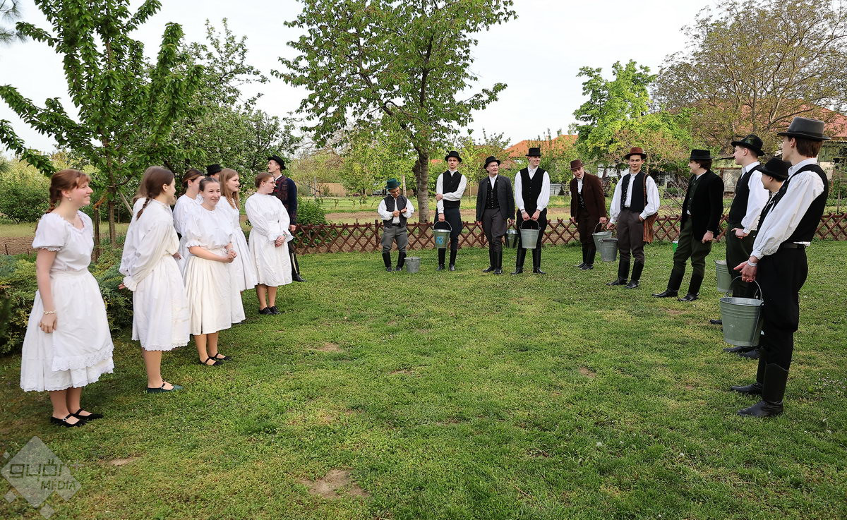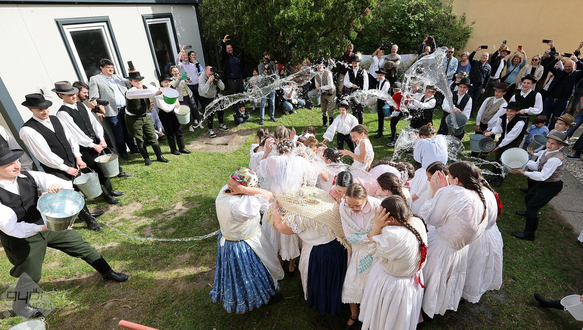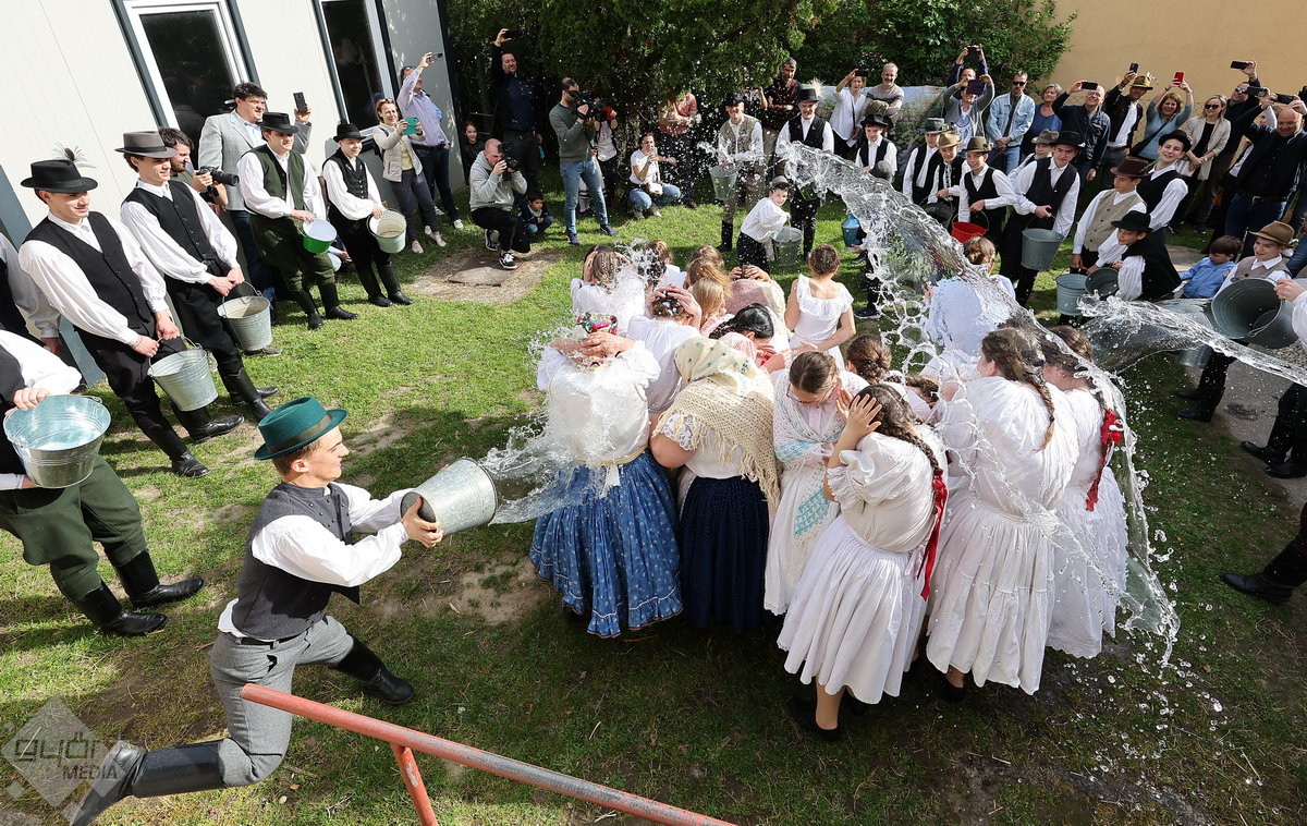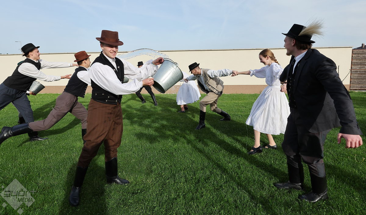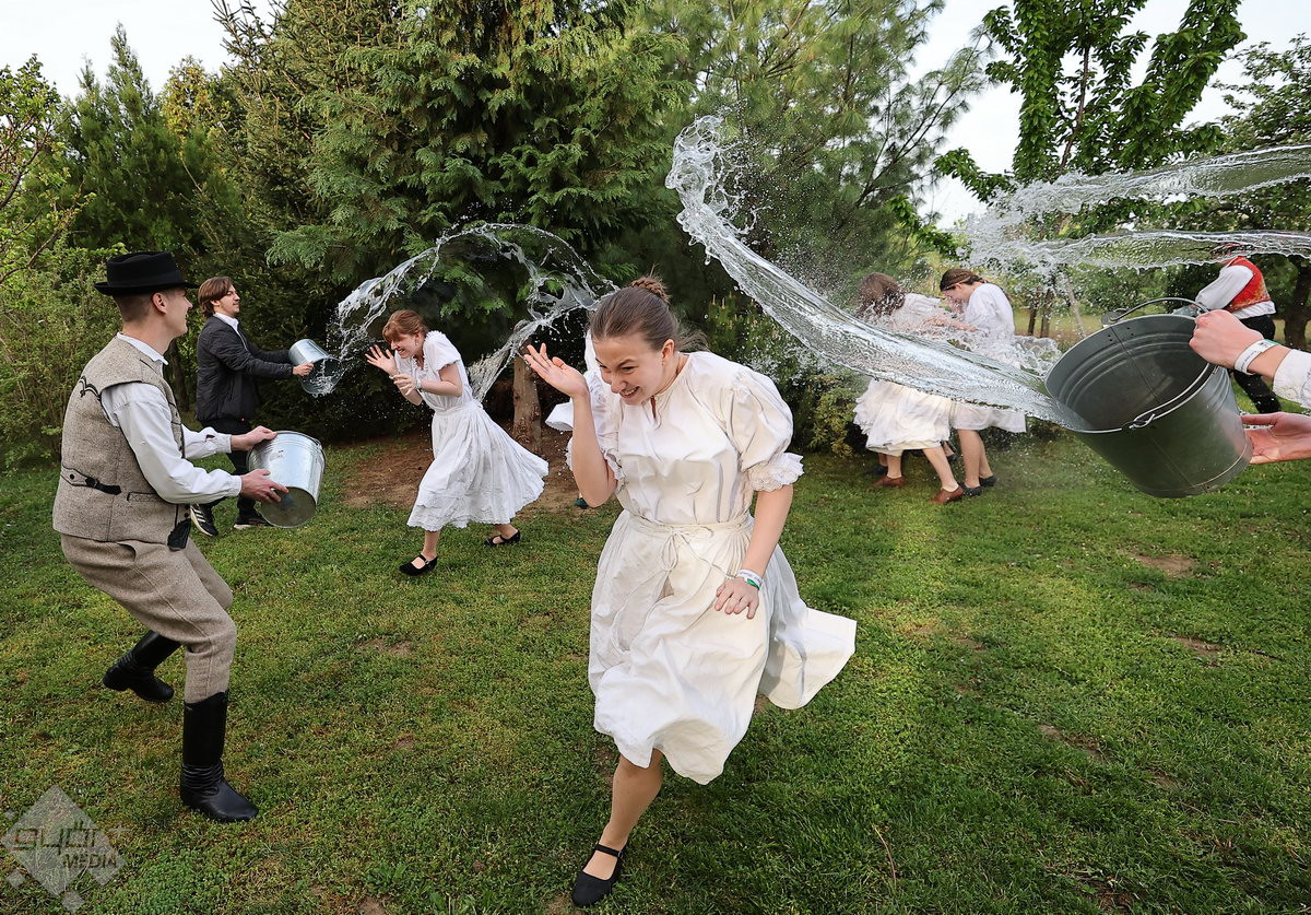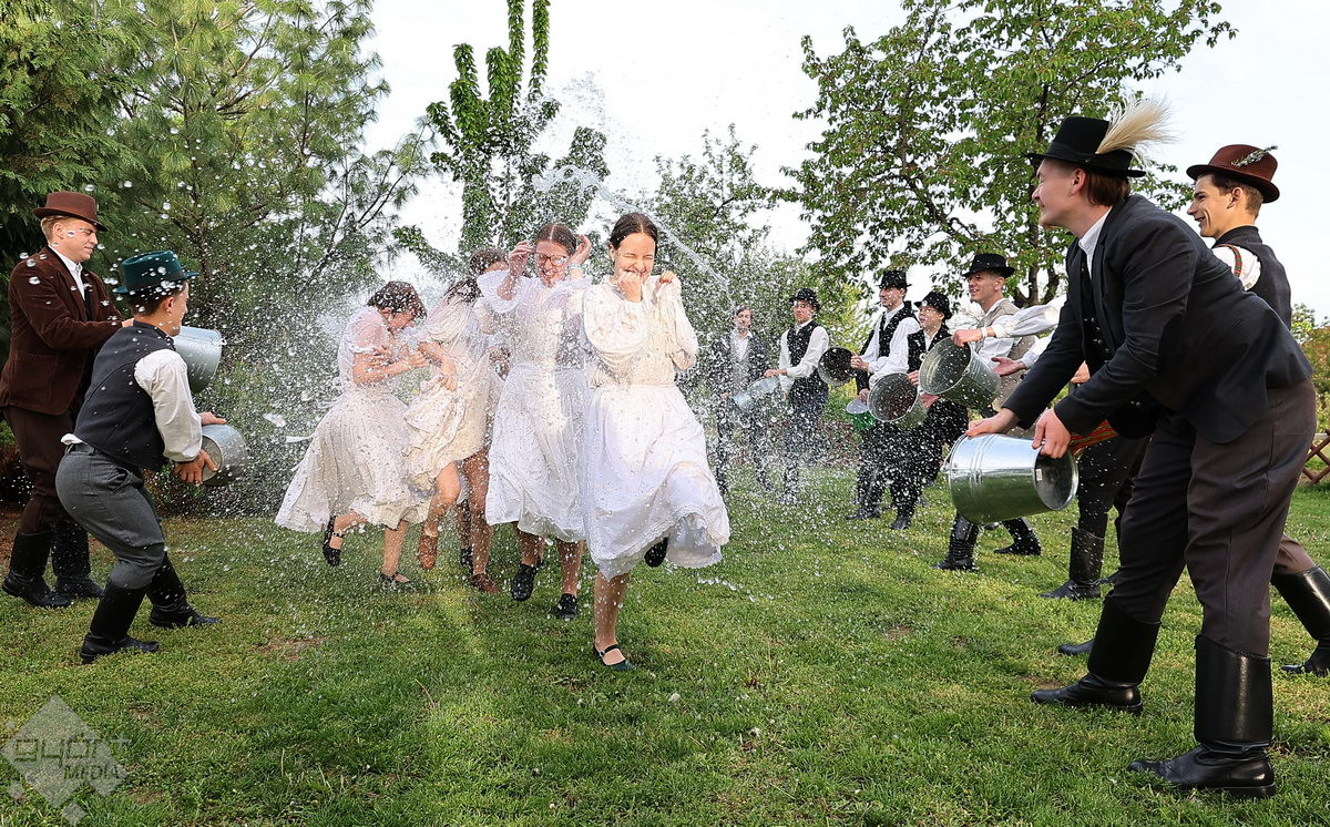Ahogyan azt illik, húsvéthétfő reggelén először a lányos házhoz mentek a Csobolyó Néptáncegyüttes legényei, majd egy vödör vízzel gondoskodtak arról, hogy az eladósorban lévők ne hervadjanak el.