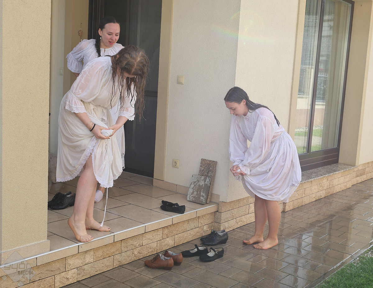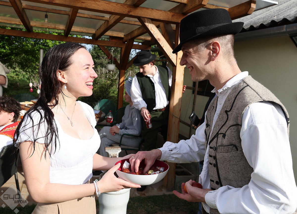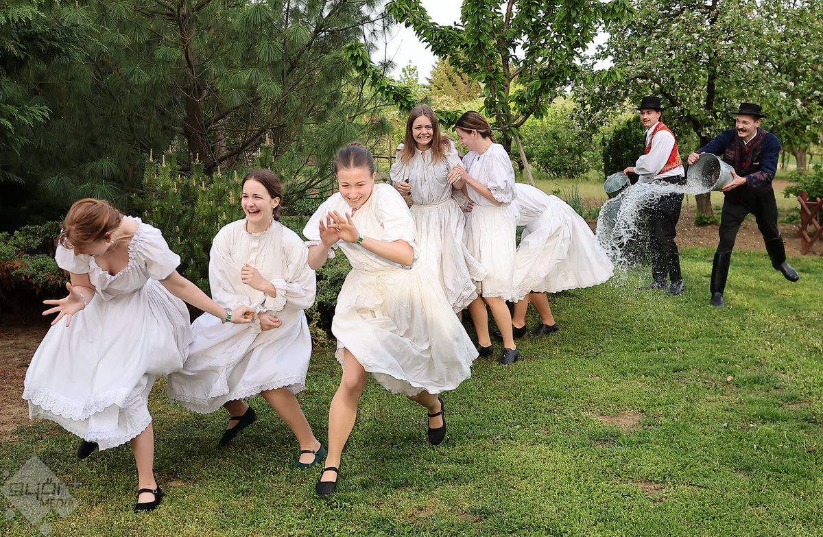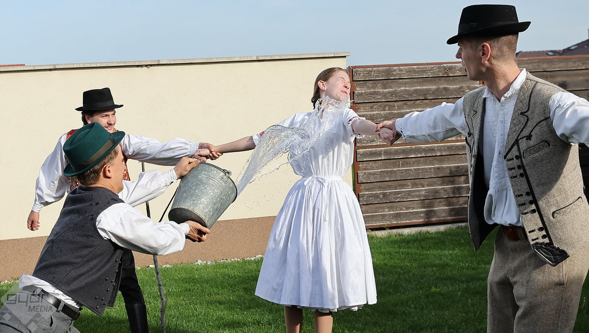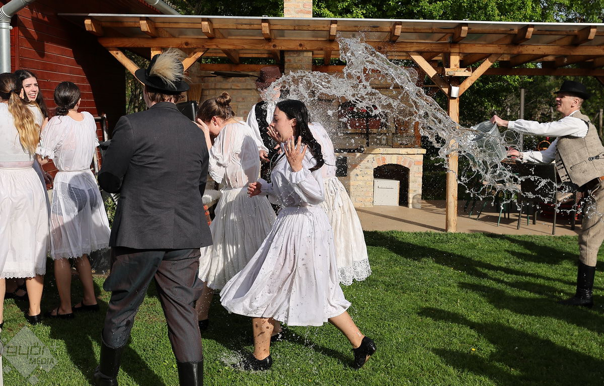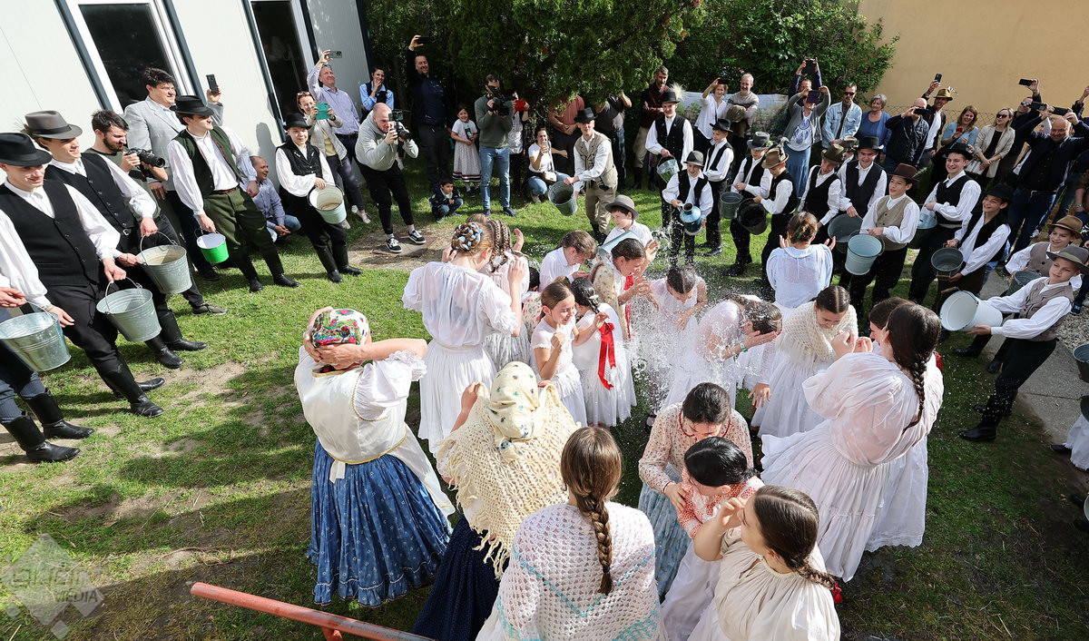 Ahogyan azt illik, húsvéthétfő reggelén először a lányos házhoz mentek a Csobolyó Néptáncegyüttes legényei, majd egy vödör vízzel gondoskodtak arról, hogy az eladósorban lévők ne hervadjanak el.
