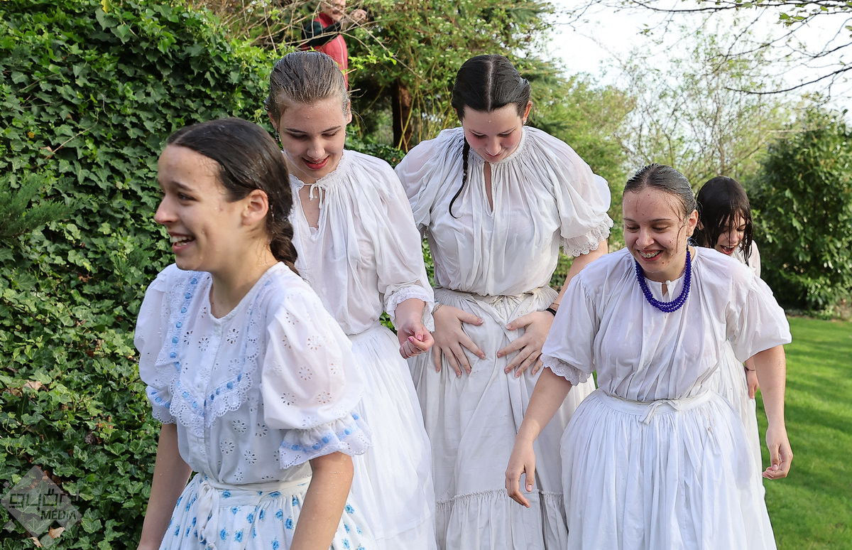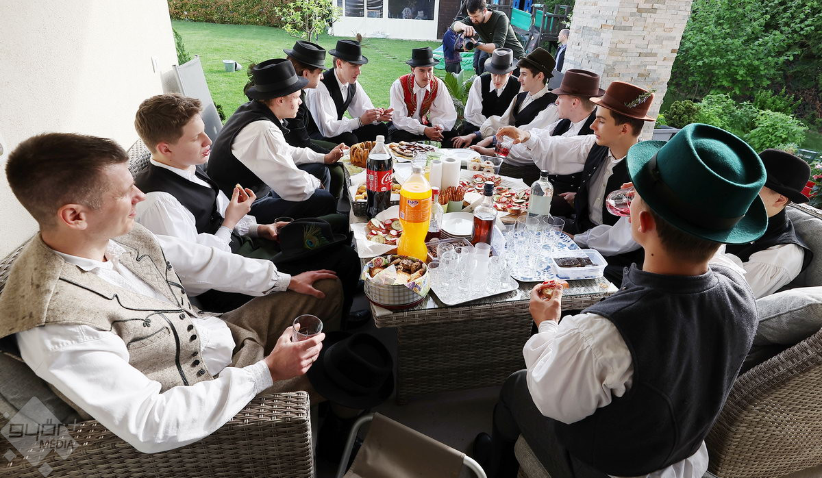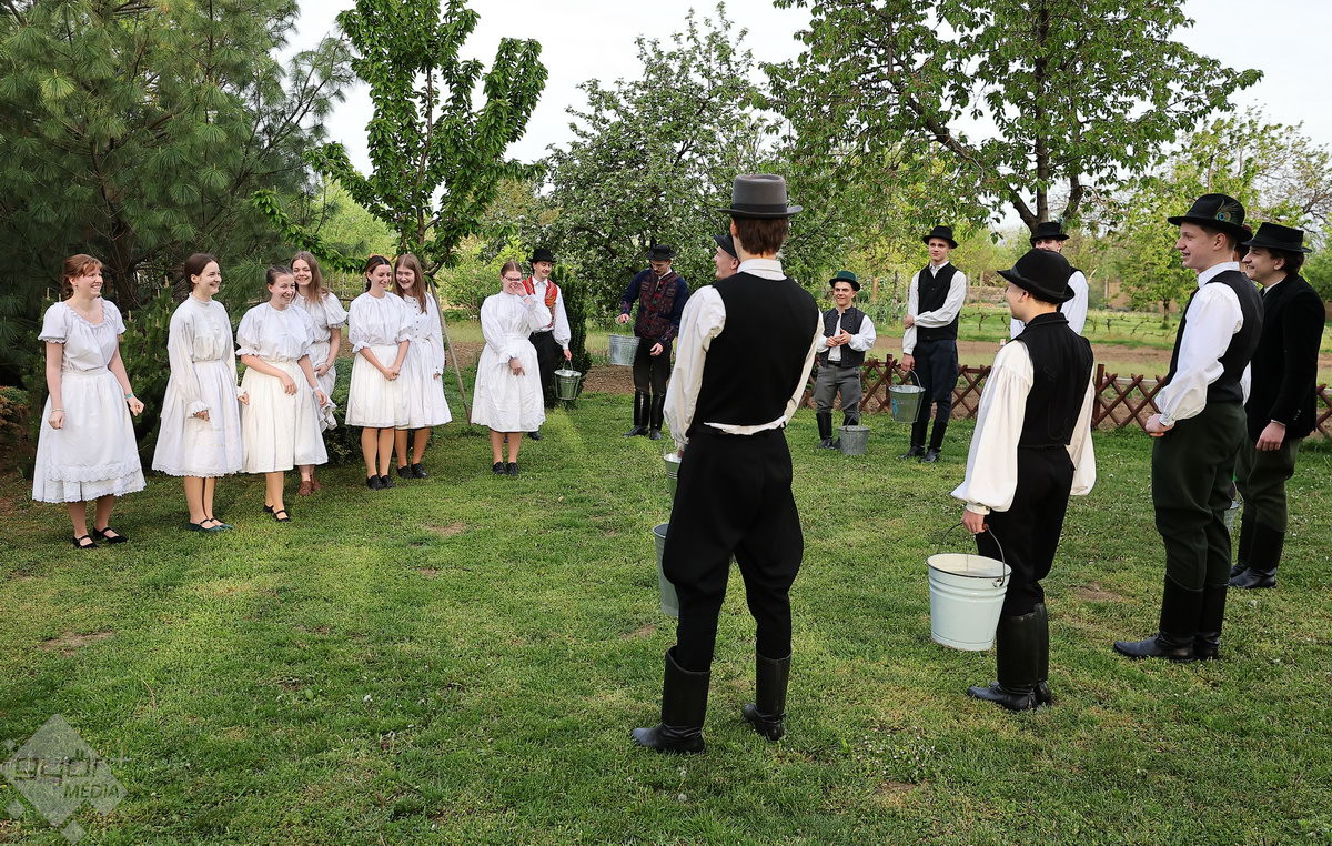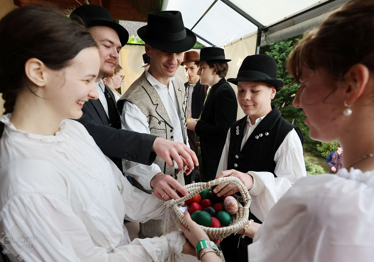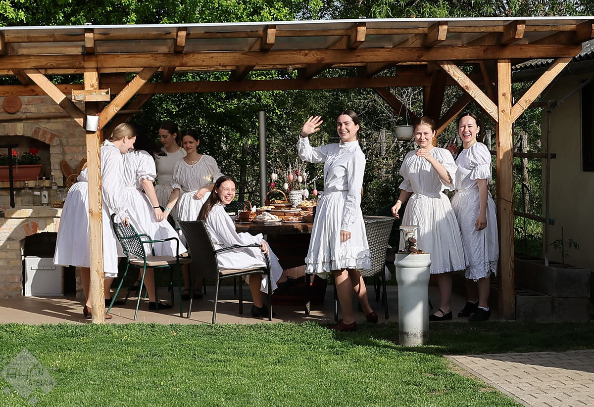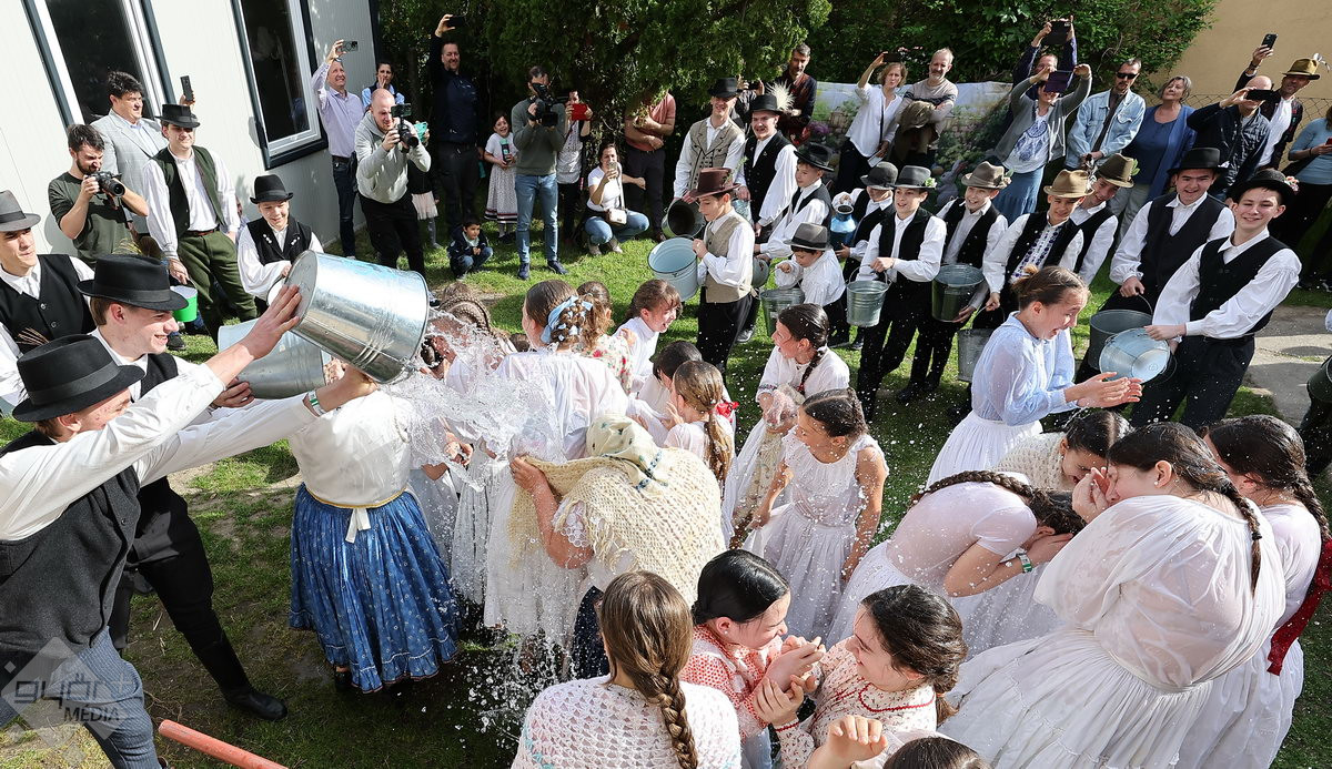 Ahogyan azt illik, húsvéthétfő reggelén először a lányos házhoz mentek a Csobolyó Néptáncegyüttes legényei, majd egy vödör vízzel gondoskodtak arról, hogy az eladósorban lévők ne hervadjanak el.