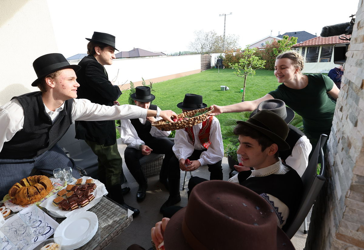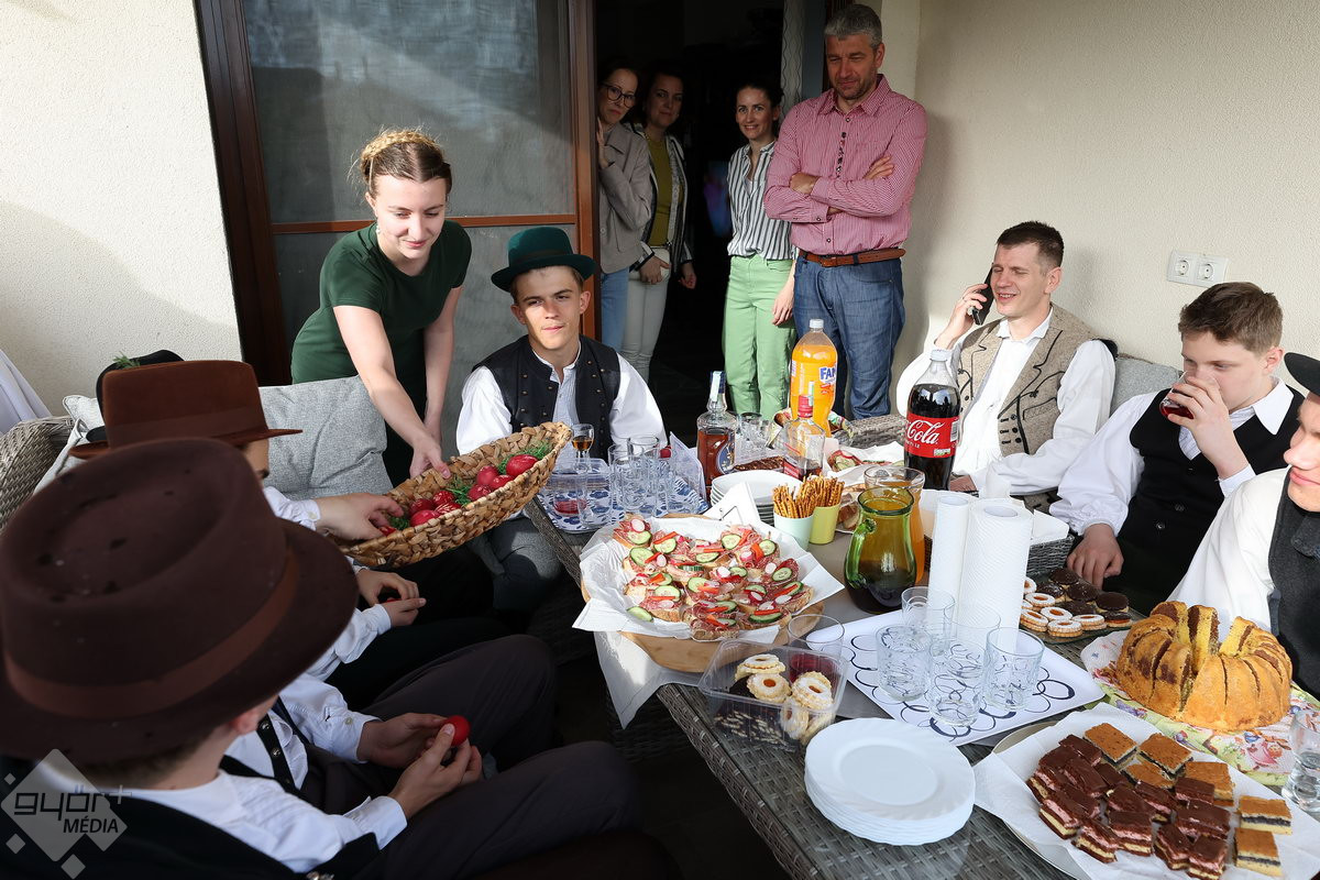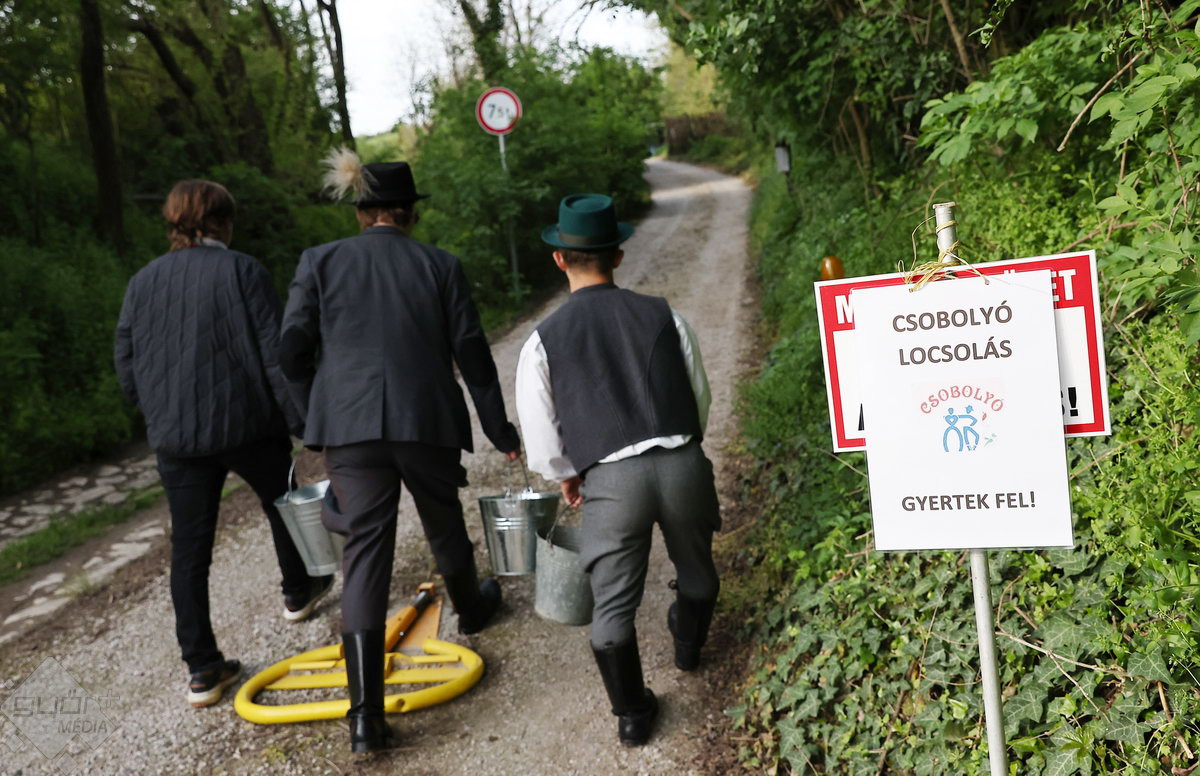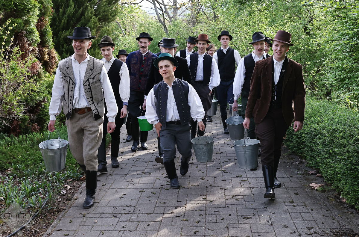 Nem úgy, mint a Csobolyó Néptáncegyüttesnél: az 1991-ben alapított egyesületnél a mai napig hűen őrzik a hagyományt. Hideg vízzel töltött vödrökkel felszerelkezve indultak a legények a lányos házhoz, ahol kérdeztek ugyan – „Szabad-e locsolni” – de a válasz már nem volt annyira érdekes: aki a közelben volt, bizony kapott az áldásból. Ahogyan azok is, akik a néptáncosok győrújbaráti „főhadiszállásánál” várakoztak.